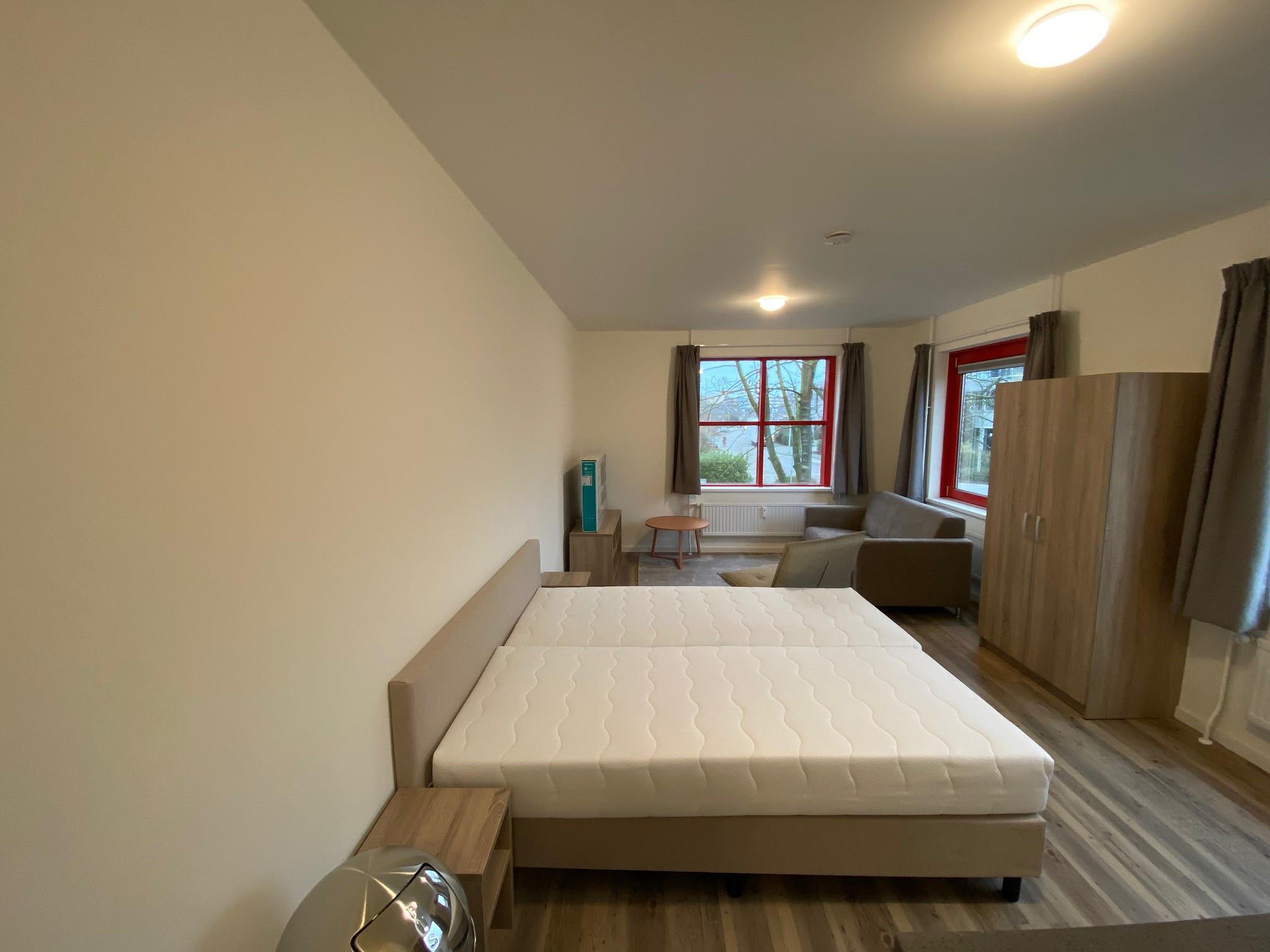 Gemeubileerde studio in Alphen aan den Rijn, in een complex met in totaal 18 studio's. Het betreft een voormalig kantoorgebouw welk in 2020 is getransformeerd tot studio's. In de studio's worden wonen en slapen in één ruimte gecombineerd.