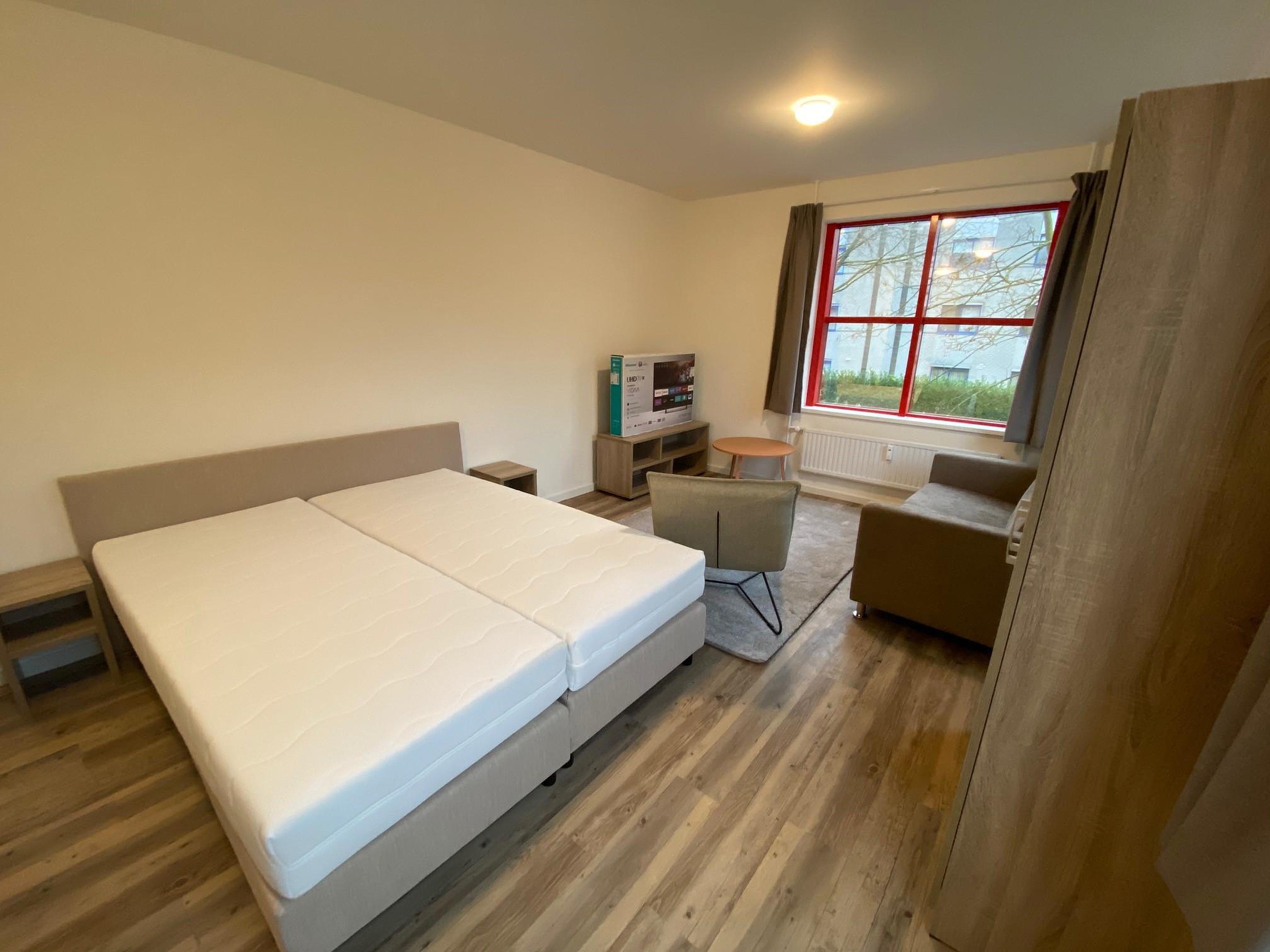 De studio wordt aangeboden inclusief meubilair, witgoed, eigen parkeerplaats en beschikt over een gemeenschappelijk afsluitbare fietsenstalling en een gemeenschappelijke tuin.