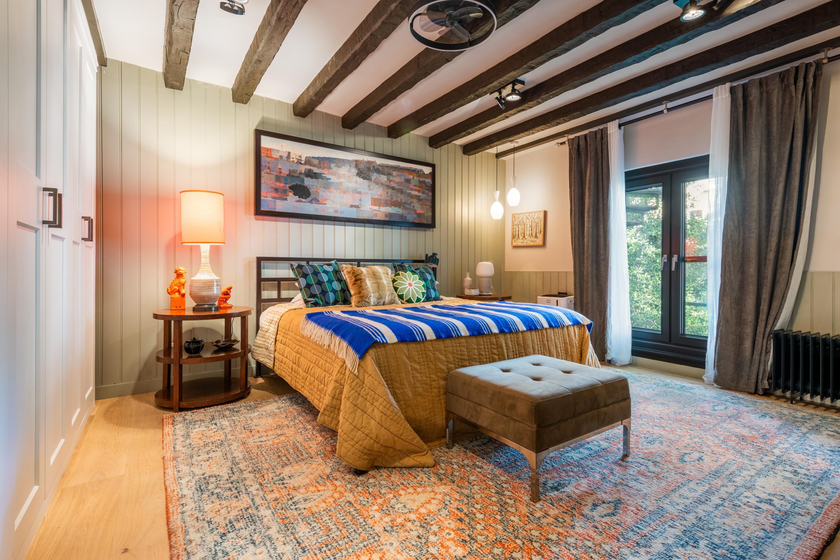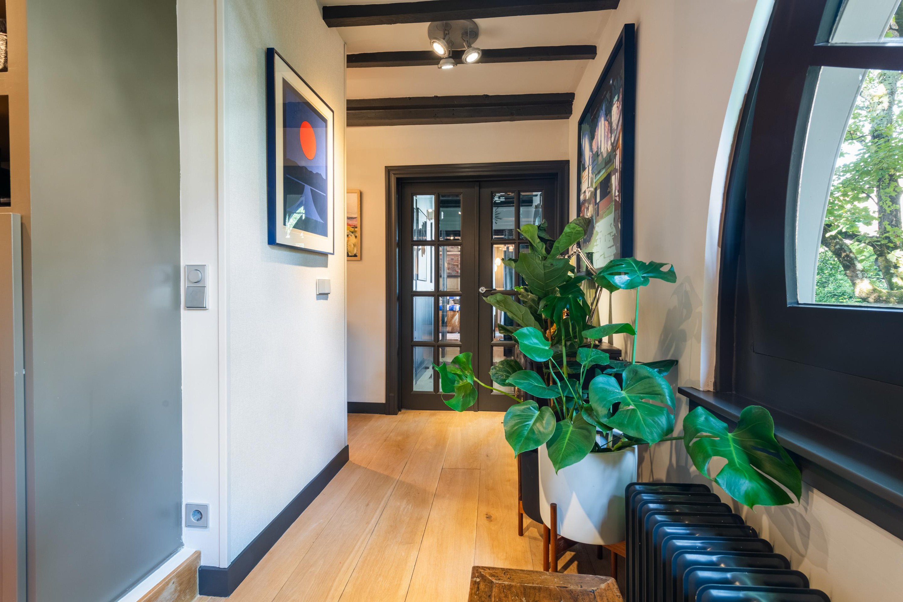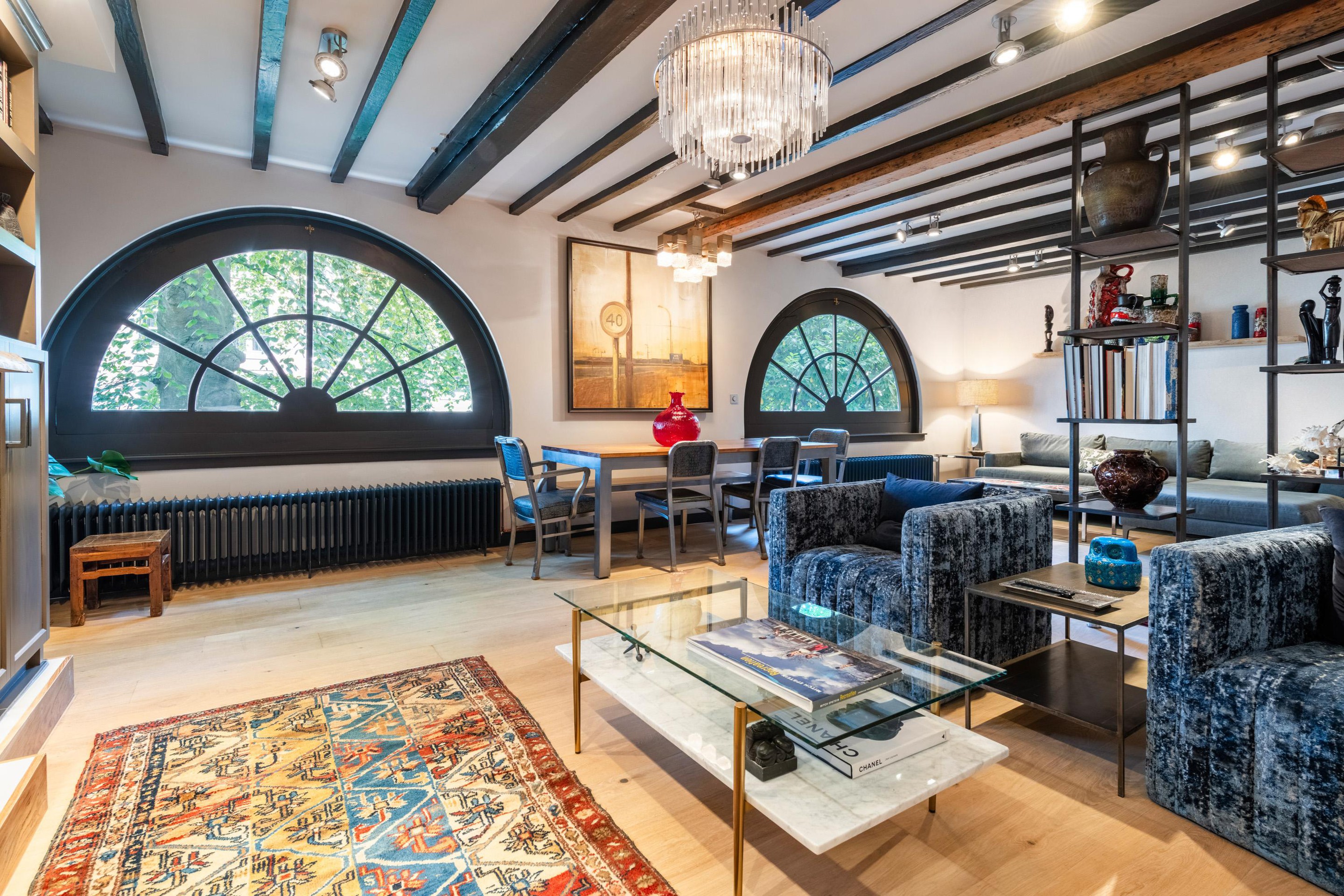 Enjoy 108m2 (approx 1,200 sq feet) of beautifully curated space, featuring all new, high end appliances throughout, including a modern kitchen (w/ dishwasher) and dedicated laundry room with separate Miele washer and dryer. The living room is perfect for entertaining or unwinding, offering two separate media zones with TVs and surround sound, a contemporary bio-ethanol fireplace, and expansive windows overlooking a green belt and extraordinary garden. Originally an 1890’s carriage house, the home features historic large windows combined with a modern interior, accented by stunning mid-century Italian light fixtures and original art work, highlighting the apartment’s high eye for design and attention to detail.