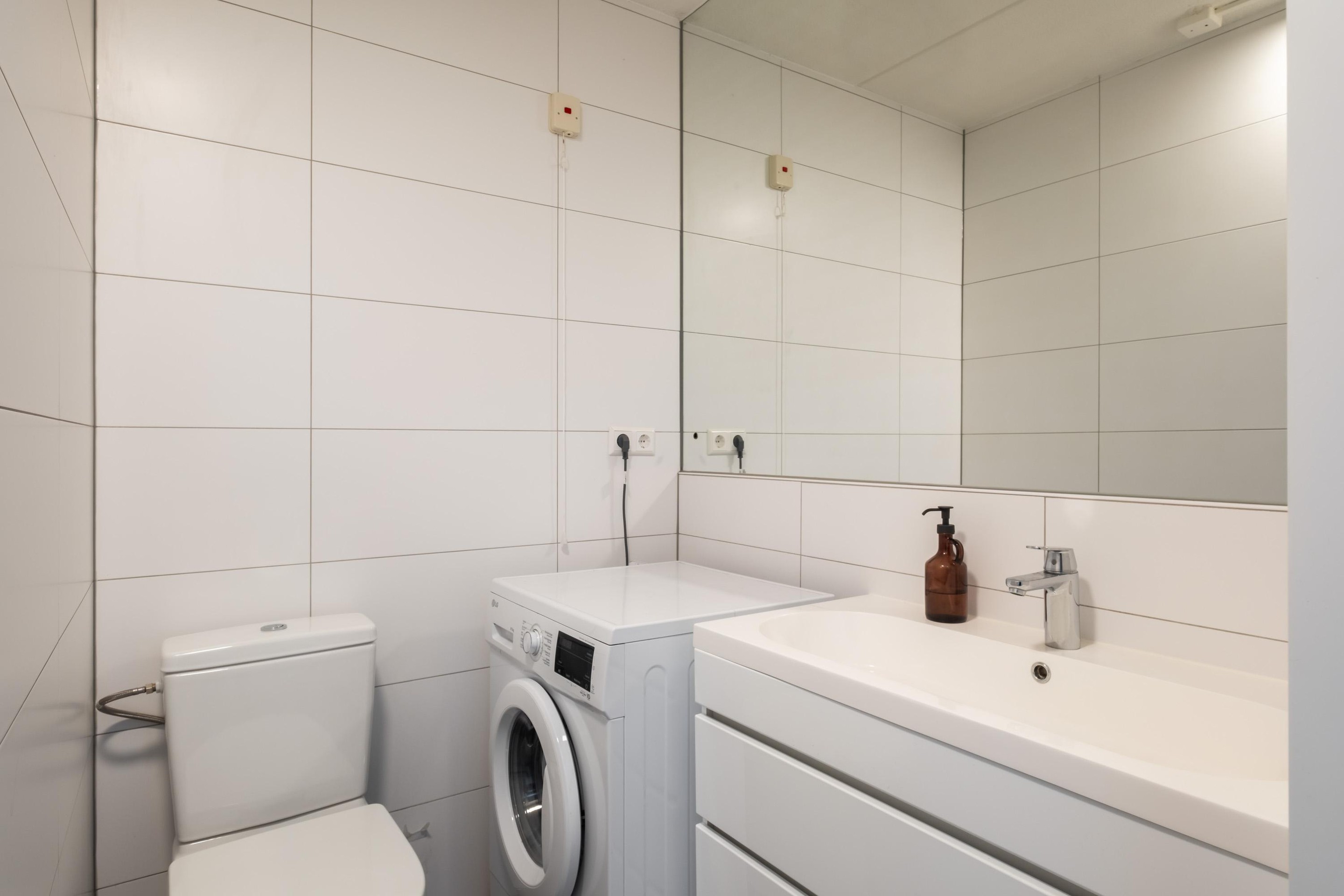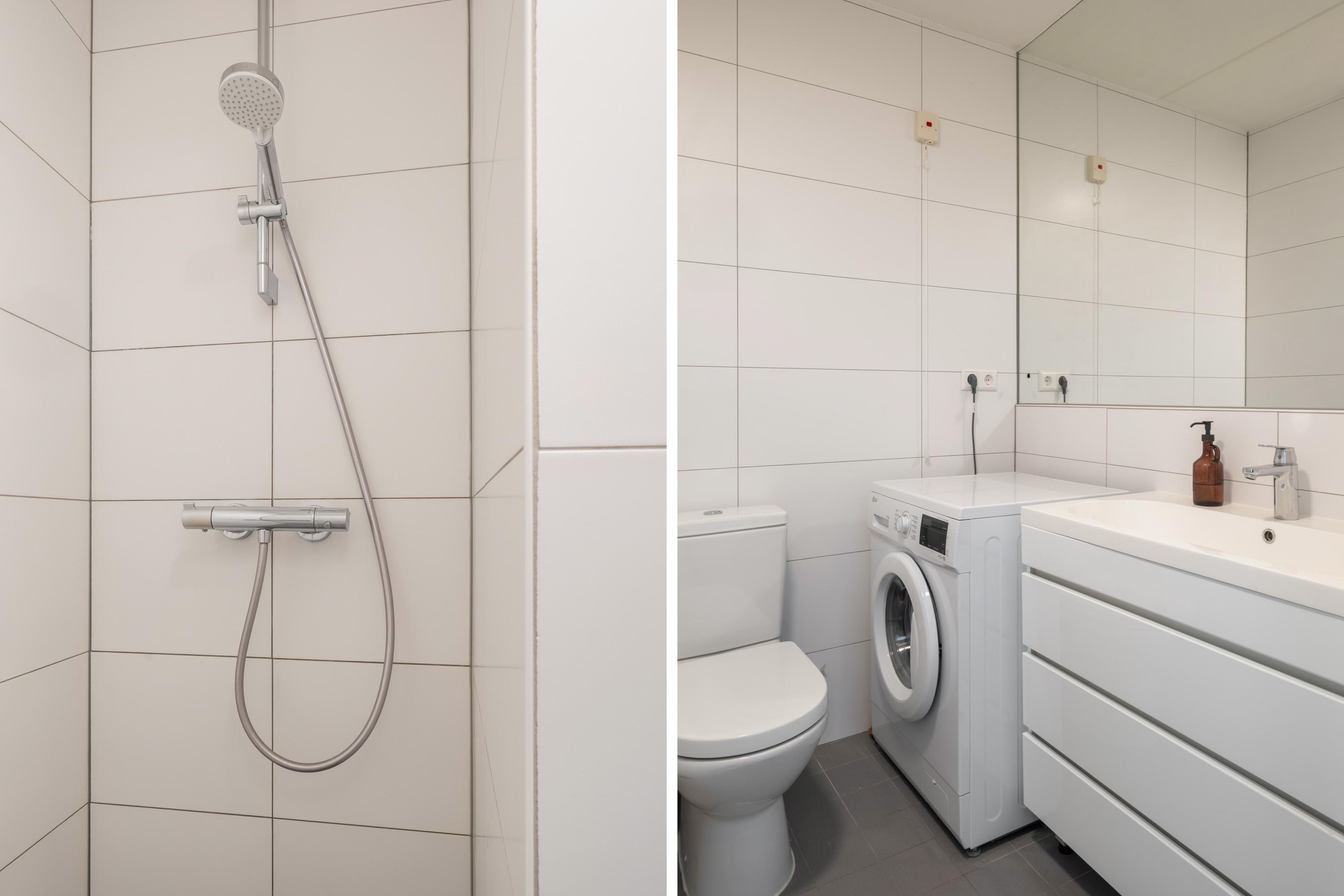 - Bathroom with shower, toilet and sink