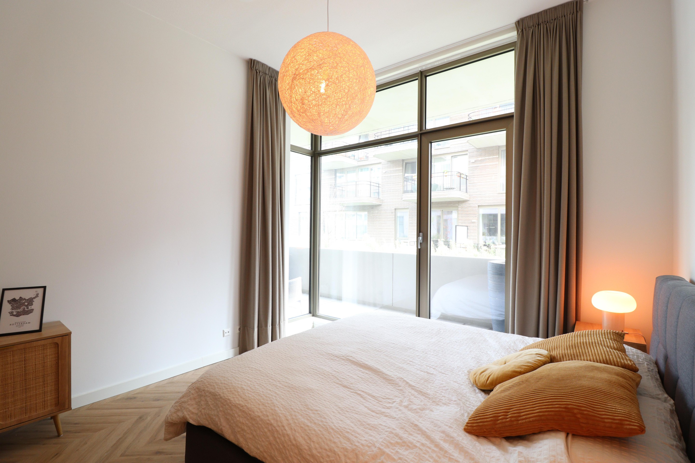 Spacious and luxury newly built apartment of 106m2 with very high ceilings (3.30 meters) and a lot of natural light. The apartment is located on walking distance from shops, supermarket, bars, restaurants and the ferry. The apartment is easy to reach by public transport and by car and you only have to take the ferry or metro to reach the city centre of Amsterdam. At the basement there is a private parking spot available.