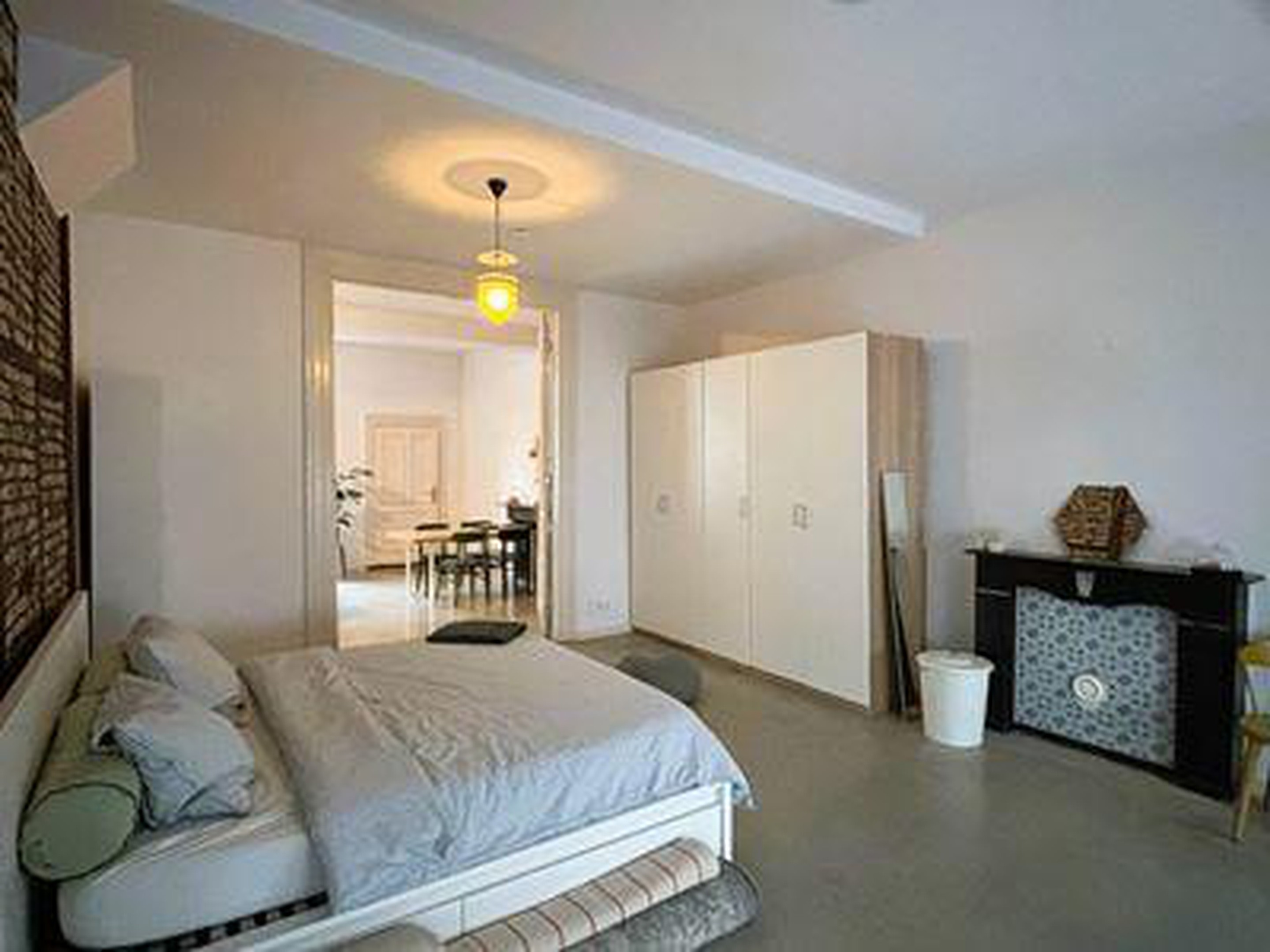 Communal entrance with access to garden (private) and toilet in hall (private). Entrance through the main entrance/stairwell to apartment. Spacious living room with authentic elements -including high ceilings, natural stone floor, chimney and large windows to front with electric shutters. Through large sliding doors access to sleeping area and entrance to the new modern kitchen with appliances such as a dishwasher, four-burner stove, fridge with separate freezer. The kitchen provides access to the private garden with outdoor storage and access to hall with modern toilet and sink. Through the kitchen access to the renovated bathroom with washbasin, shower and separate storeroom with HR combi boiler and washing machine connection.