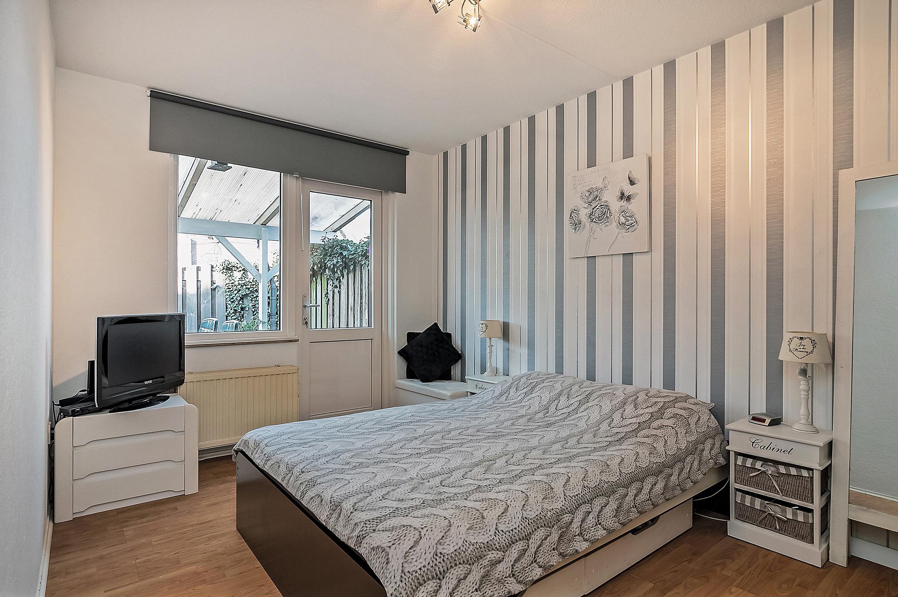 Twee slaapkamers beiden afgewerkt met laminaatvloer. Vanuit de grootste slaapkamer toegang naar de achtertuin.