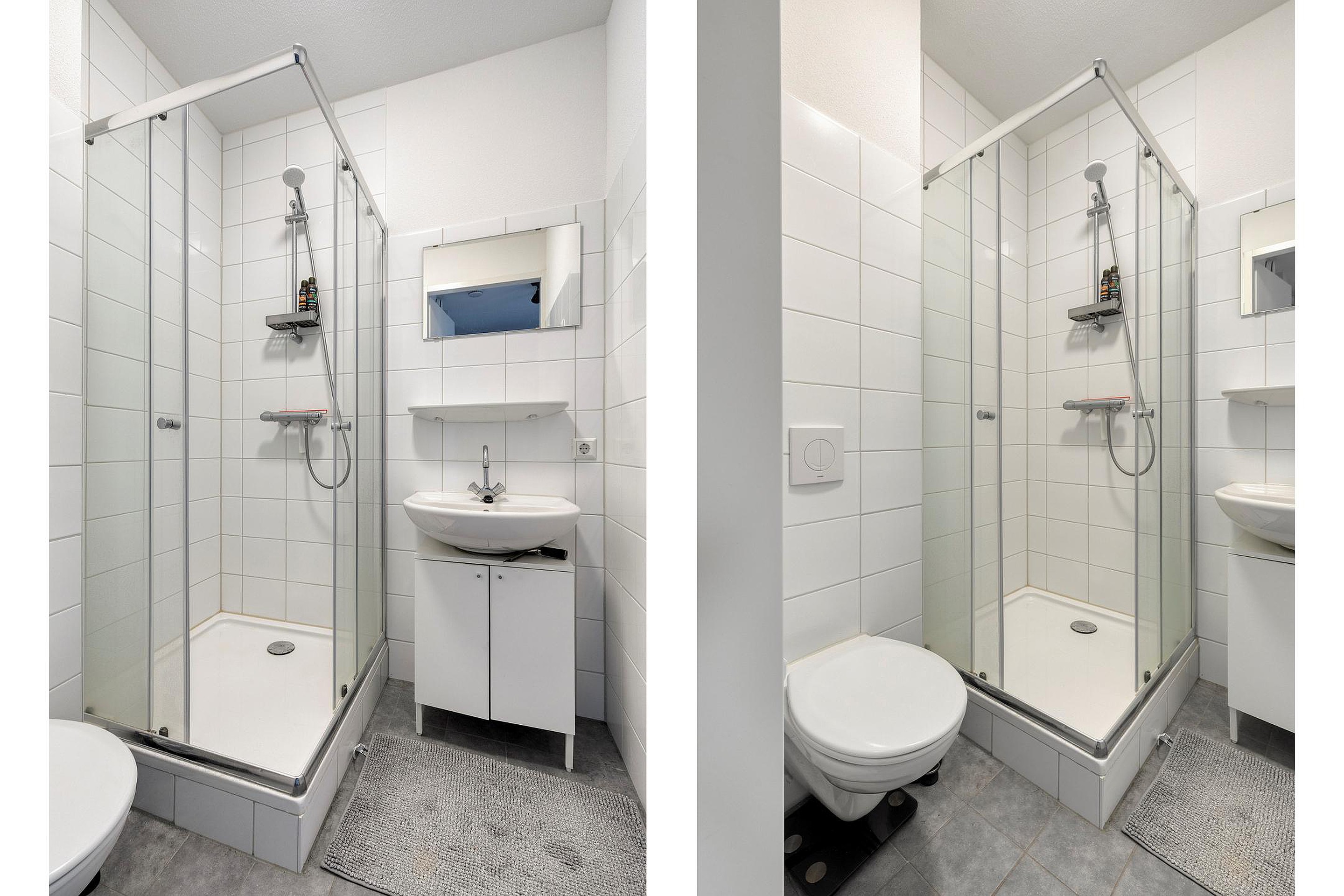 De keuken is luxe, hij is namelijk uitgerust met een elektrische kookplaat, afzuigkap, koelkast, vaatwasser, magnetron en vele opbergkastjes. Je kan dus wel zeggen dat hij alles heeft wat je nodig hebt. In de badkamer bevinden zich de douche, het toilet en wastafel.