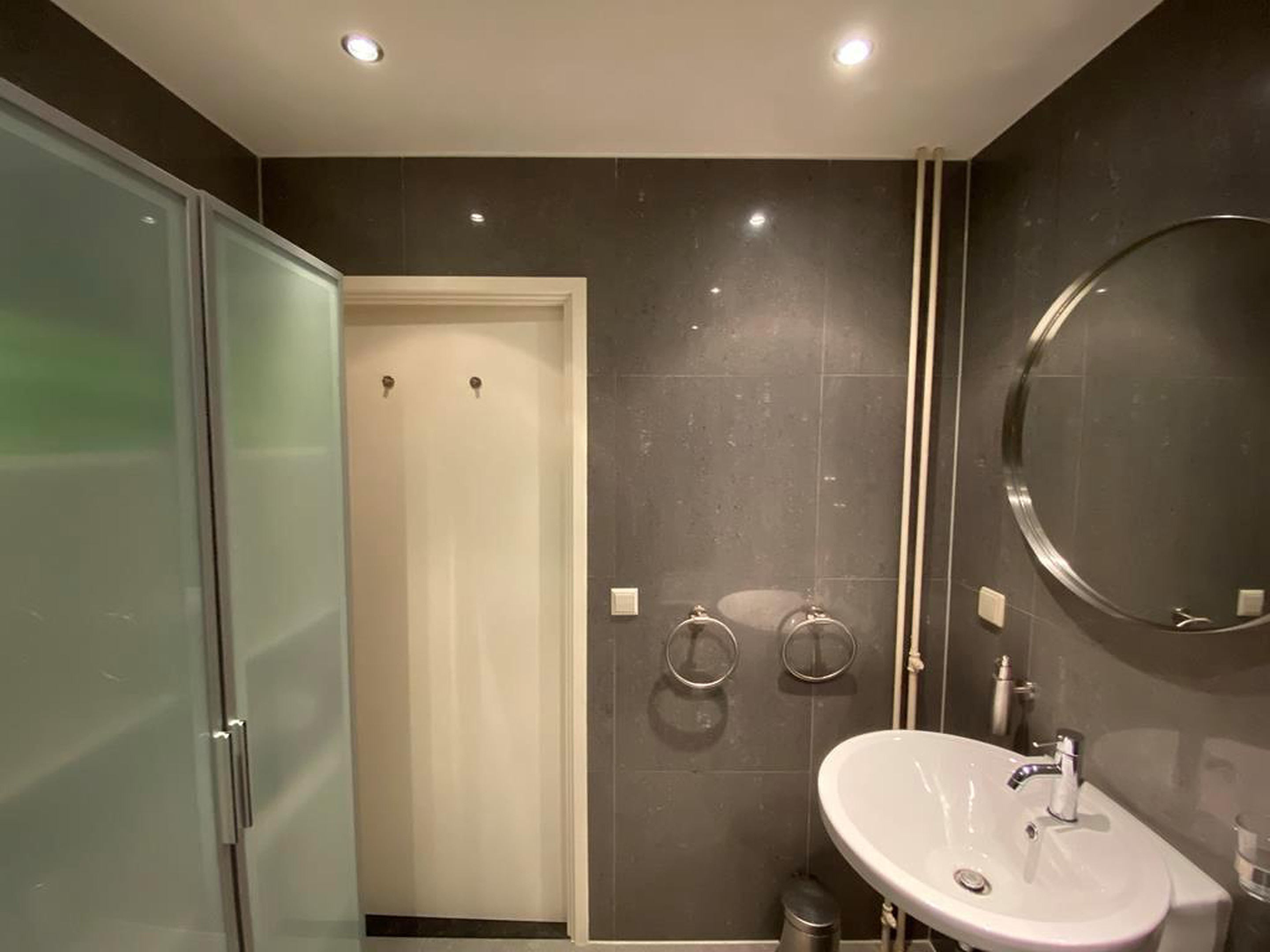 Bathroom: The bathroom is tiled from top to bottom with genuine marble and has a bathtub, shower over the tub, sink . The high quality, atmosphere and style of the rest of the apartment is continued here.