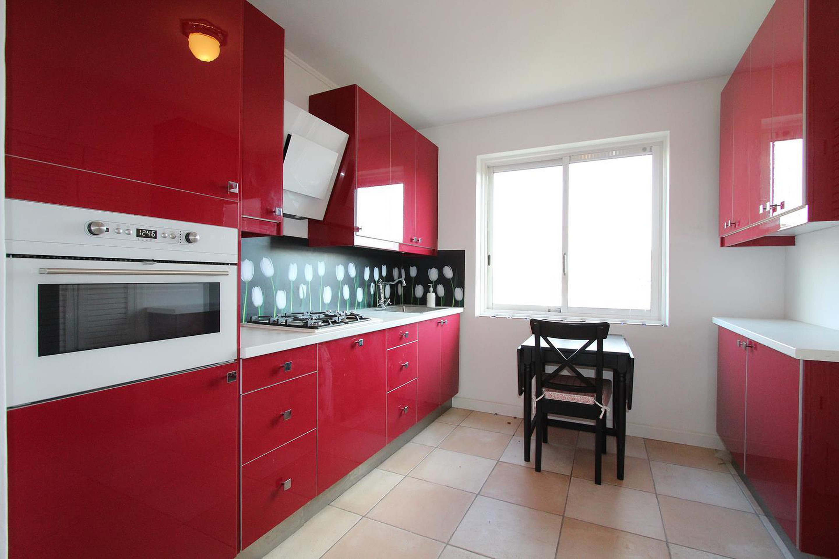 Kitchen: tiny table with 1 chair + cushion
