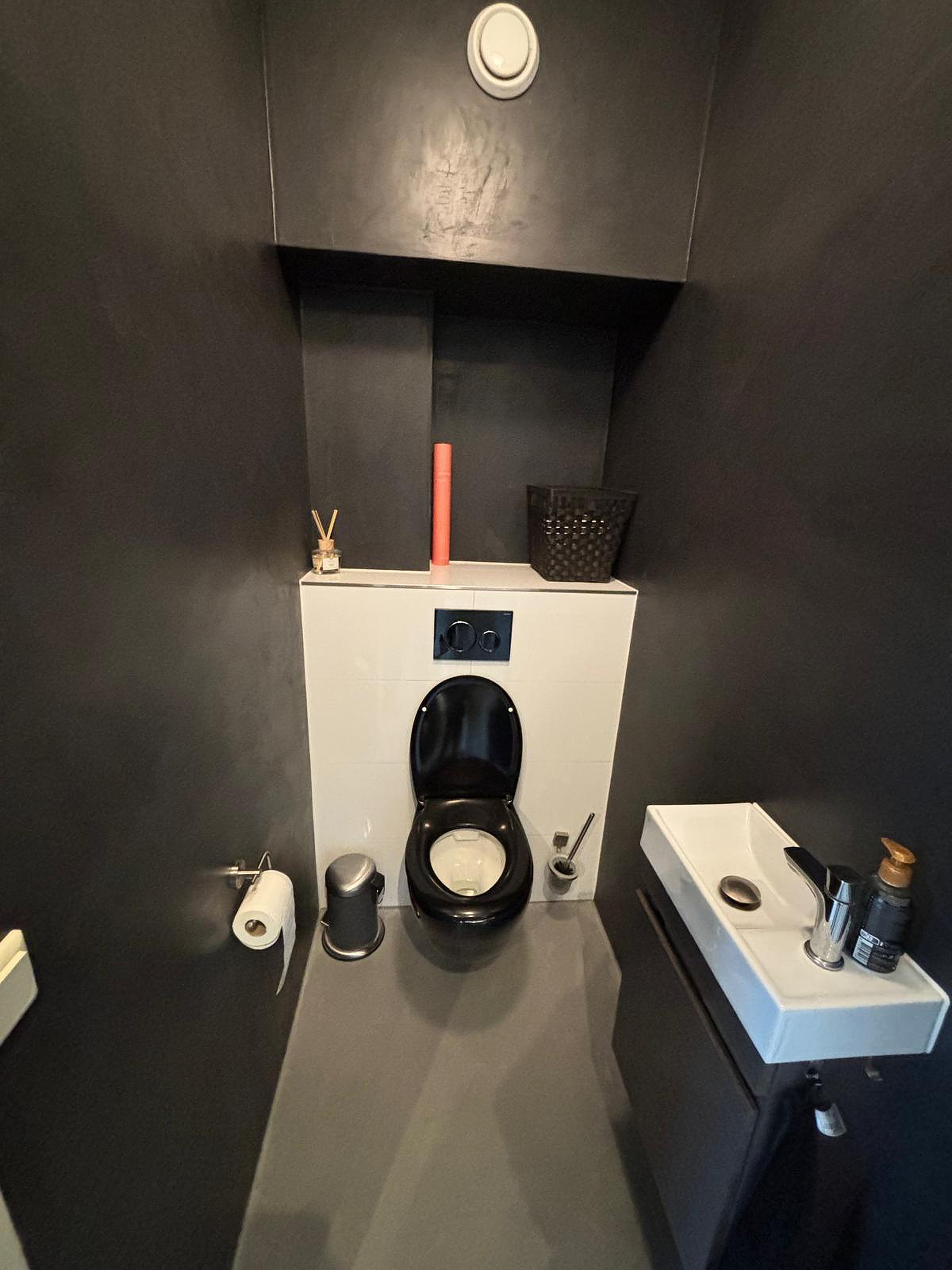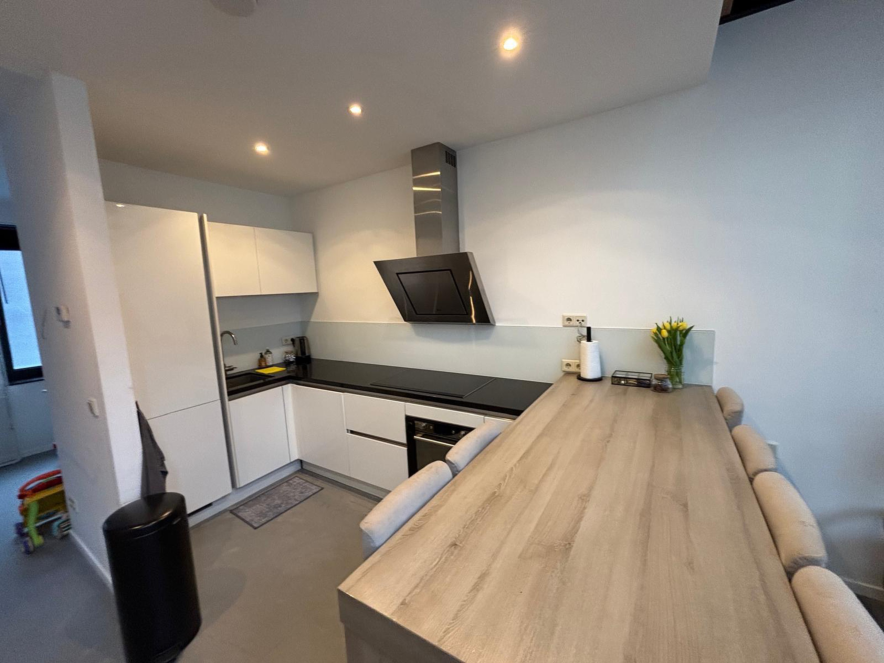 - Eerste verdieping: Aan de voorzijde van de woning bevindt zich een separaat toilet met wastafelmeubel, de woonkamer met luxe open keuken voorzien van inbouwapparatuur waaronder een inbouw koelkast, vriezer met 3 laden, combi oven magnetron, spoelbak, 4 pits inductie kookplaat met ingebouwde afzuiginstallatie en een vaatwasser. Dankzij de grote ramen is er veel lichtinval in de woonkamer.