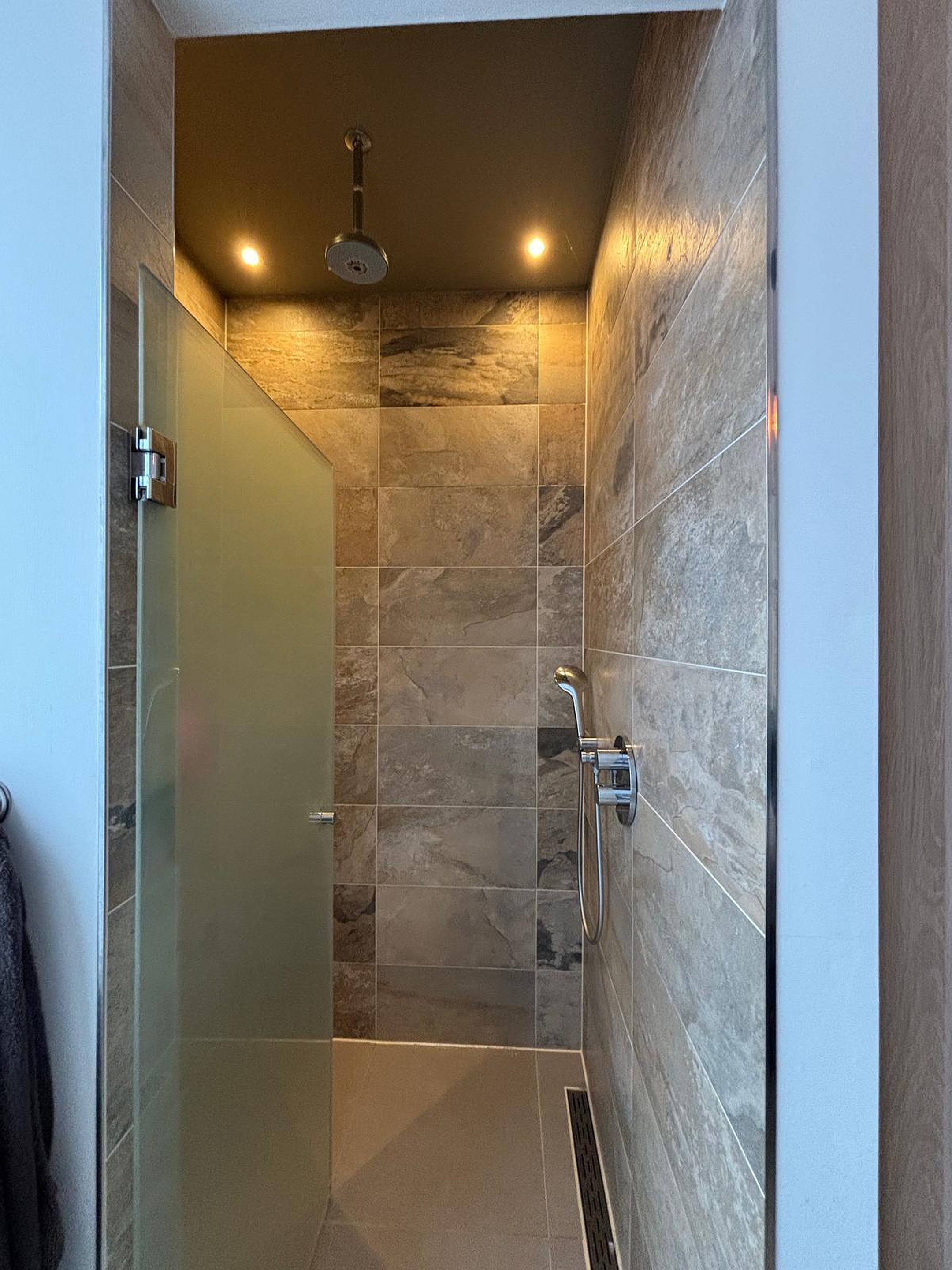 - Tweede verdieping : Ruime slaapkamer voor zien van dubbele wasbak en met een aangrenzend balkon. De moderne badkamer is voorzien van een luxe inloopdouche.