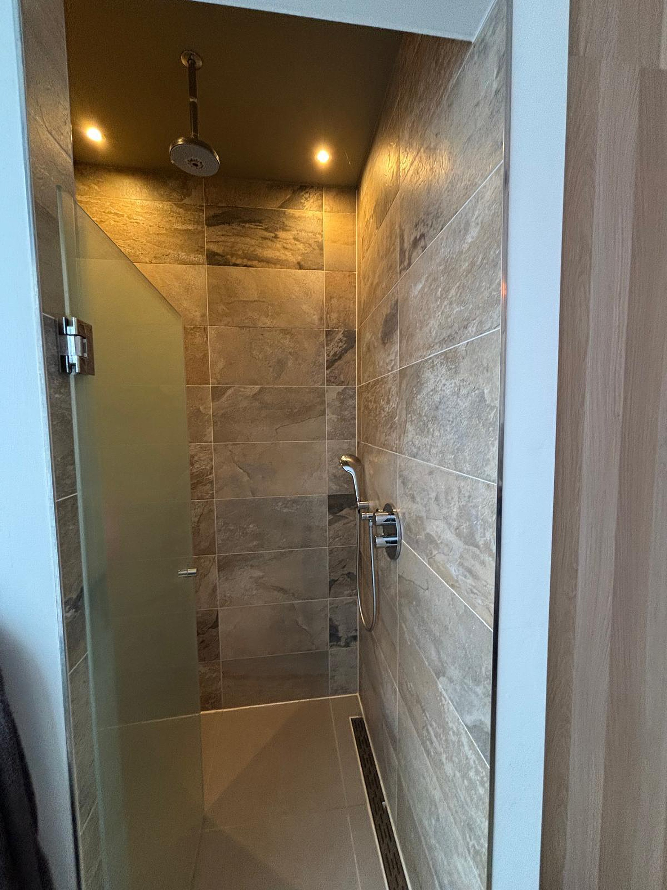 Op de tweede verdieping bevindt zich een ruime slaapkamer en een fraai afgewerkte badkamer met inloopdouche en wastafel. Aan de achterzijde ligt een ruim balkon, ideaal voor ontspannen momenten in de buitenlucht.