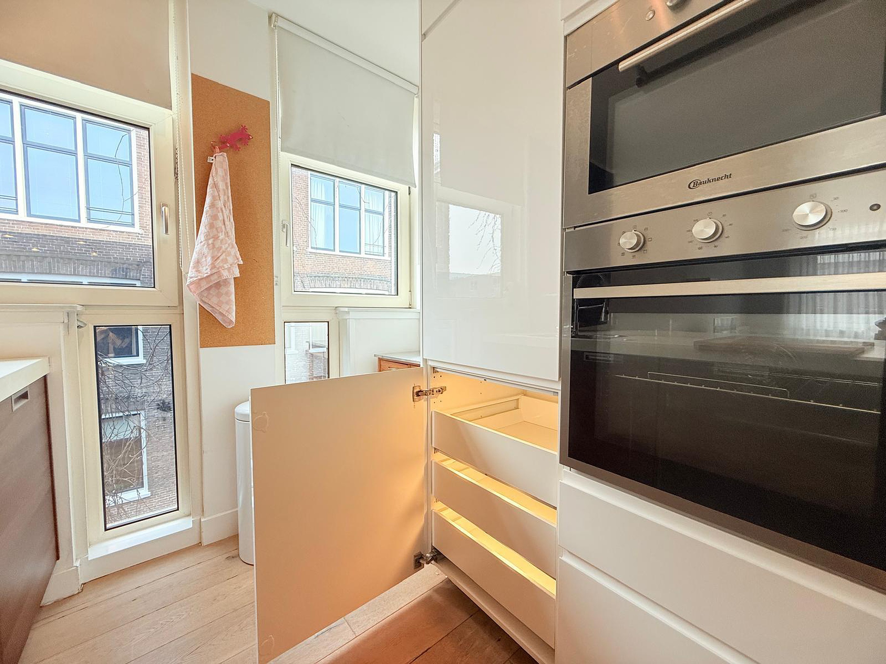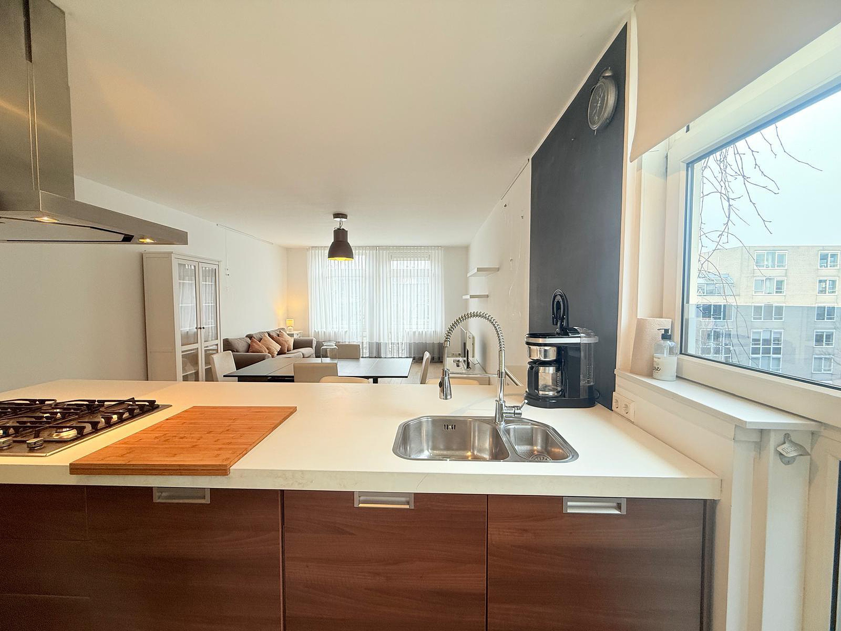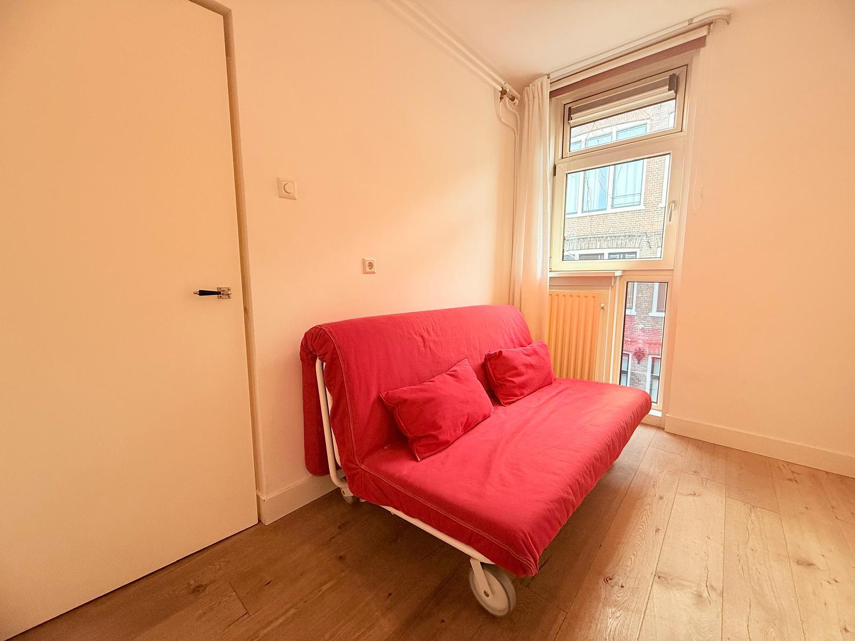 From the apartment, you can enjoy a beautiful open view over the canal, with classic houseboats, historic façades, and the gentle rhythm of Amsterdam life passing by. Large windows bring in plenty of natural light, making the space feel bright, airy, and welcoming.