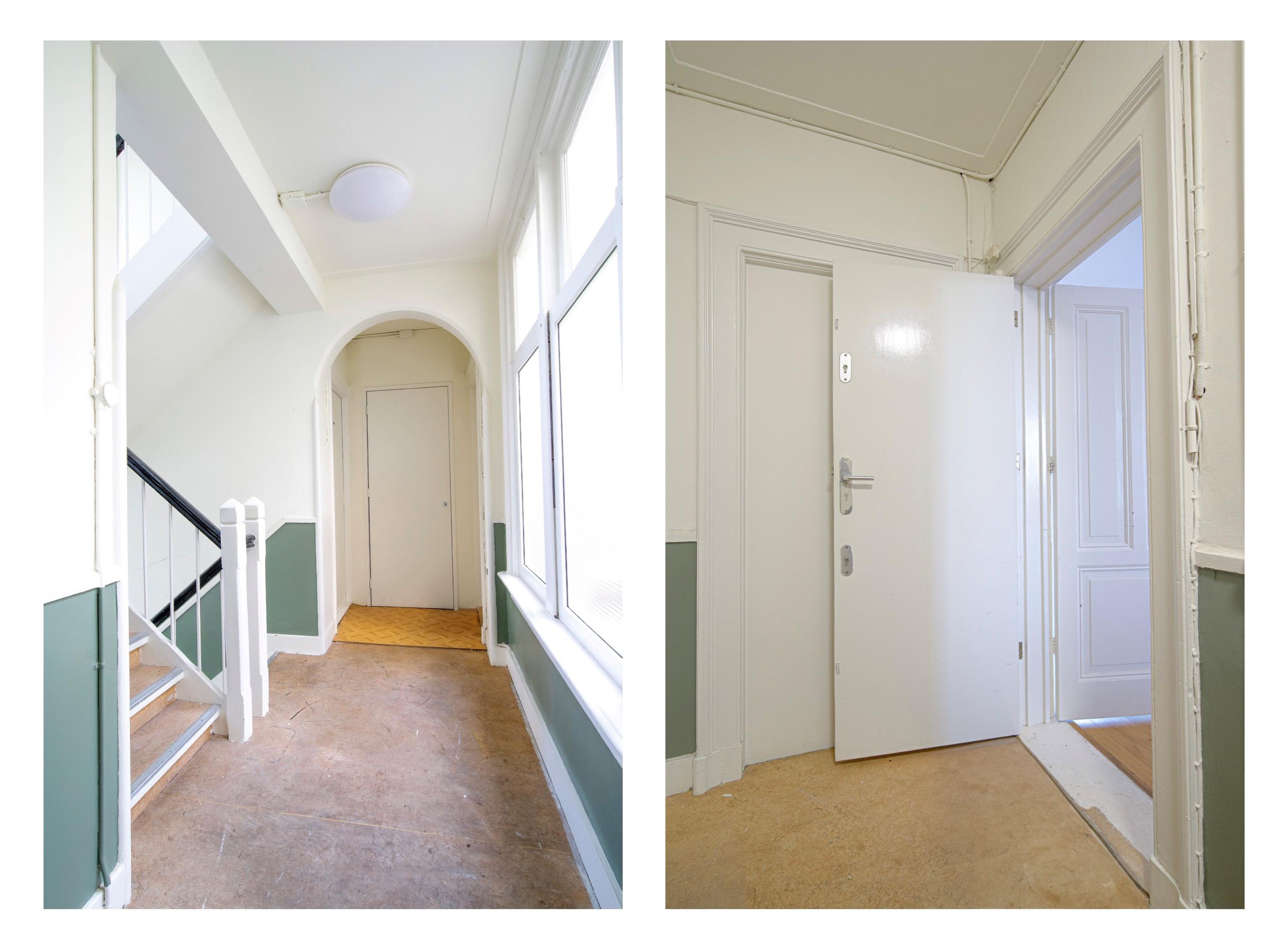 Via de ruime gemeenschappelijke entree toegang tot het appartement op de derde verdieping. Dit appartement heeft een dubbele voordeur met extra zware sloten (historisch was dit naar verwachting een belangrijke ruimte in het pand), extra veilig dus! De woonkamer heeft veel lichtinval door de hoge ramen, is erg sfeervol door de eikenhouten vloer en nieuwe open keuken met kookeiland. Daarnaast is er in de living een aparte thuiswerk plek gecreëerd, een ruime zithoek met grote bank, eettafel met 4 stoelen en een toilet.