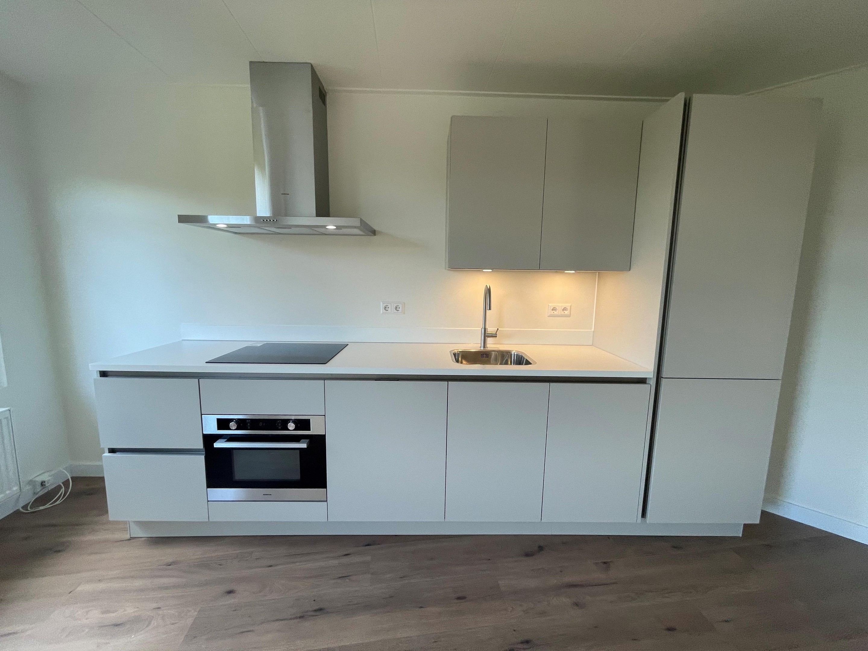 - Moderne keuken met inductiekookplaat, koelvriescombinatie, vaatwasser en afzuigkap