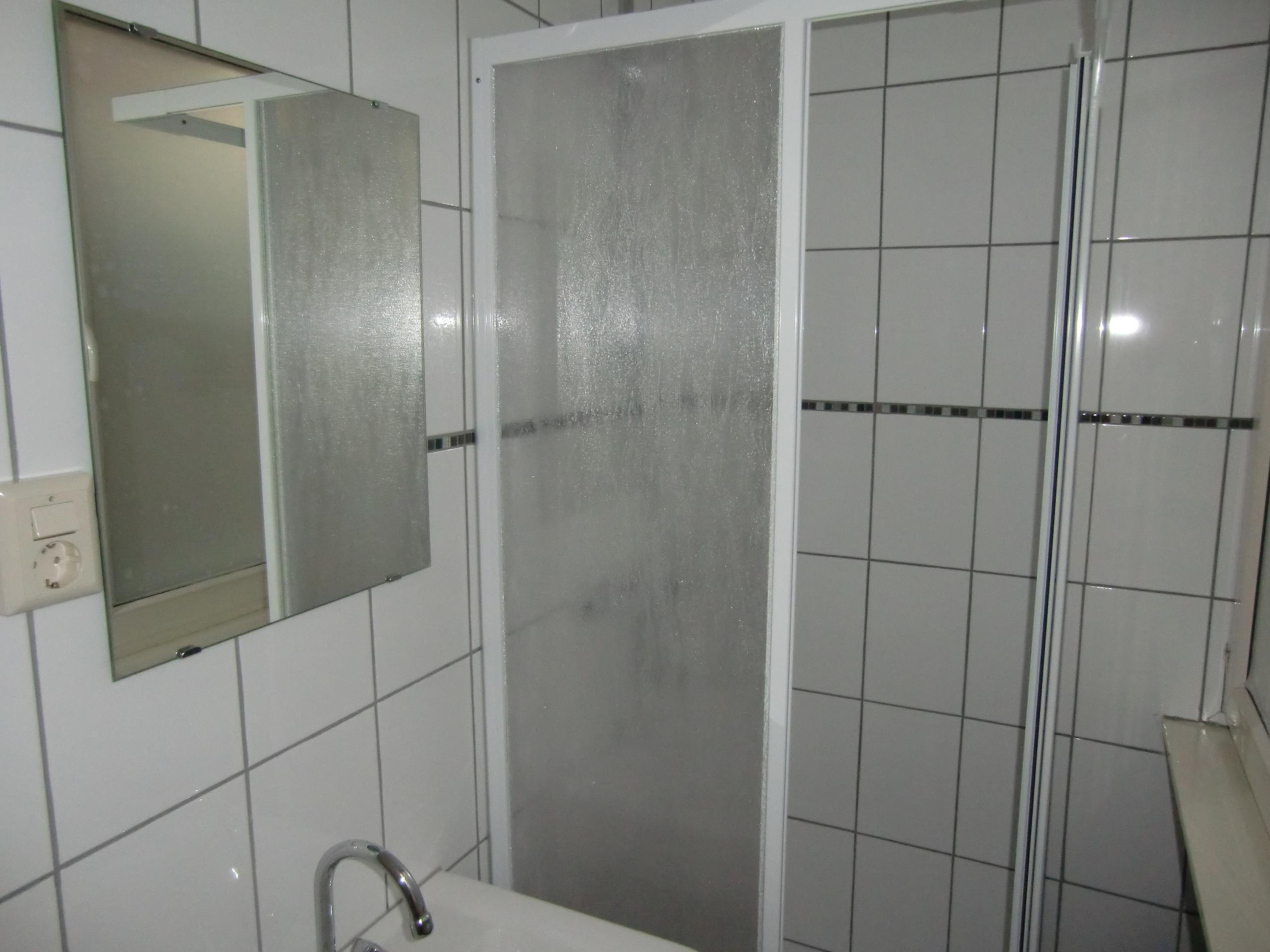 Overloop, gezamenlijk toilet en badkamer voorzien van douche en wastafel.