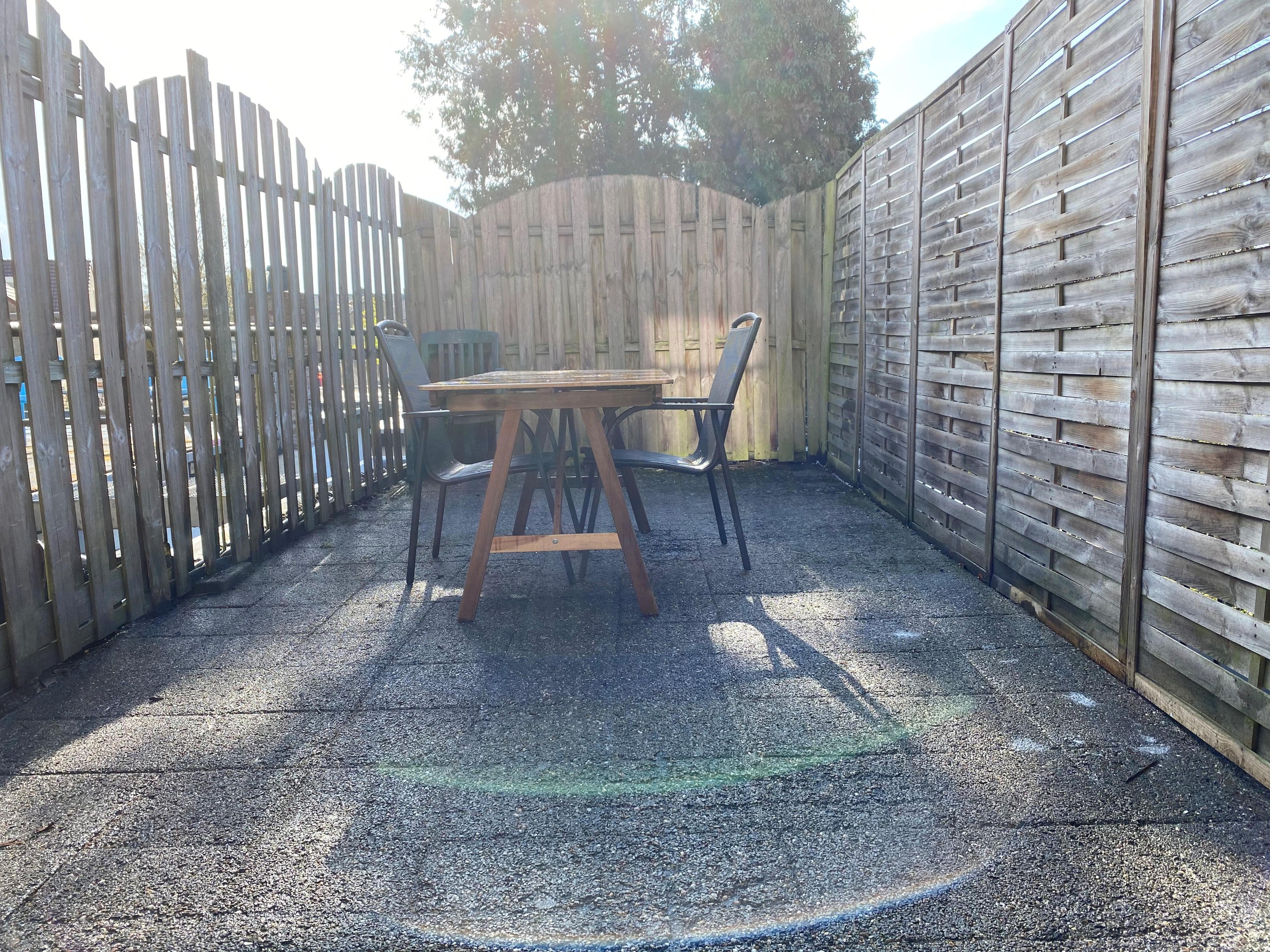 Ruim balkon aan de achterzijde van de woning, grenzend aan de keuken, gelegen op het zuidoosten.