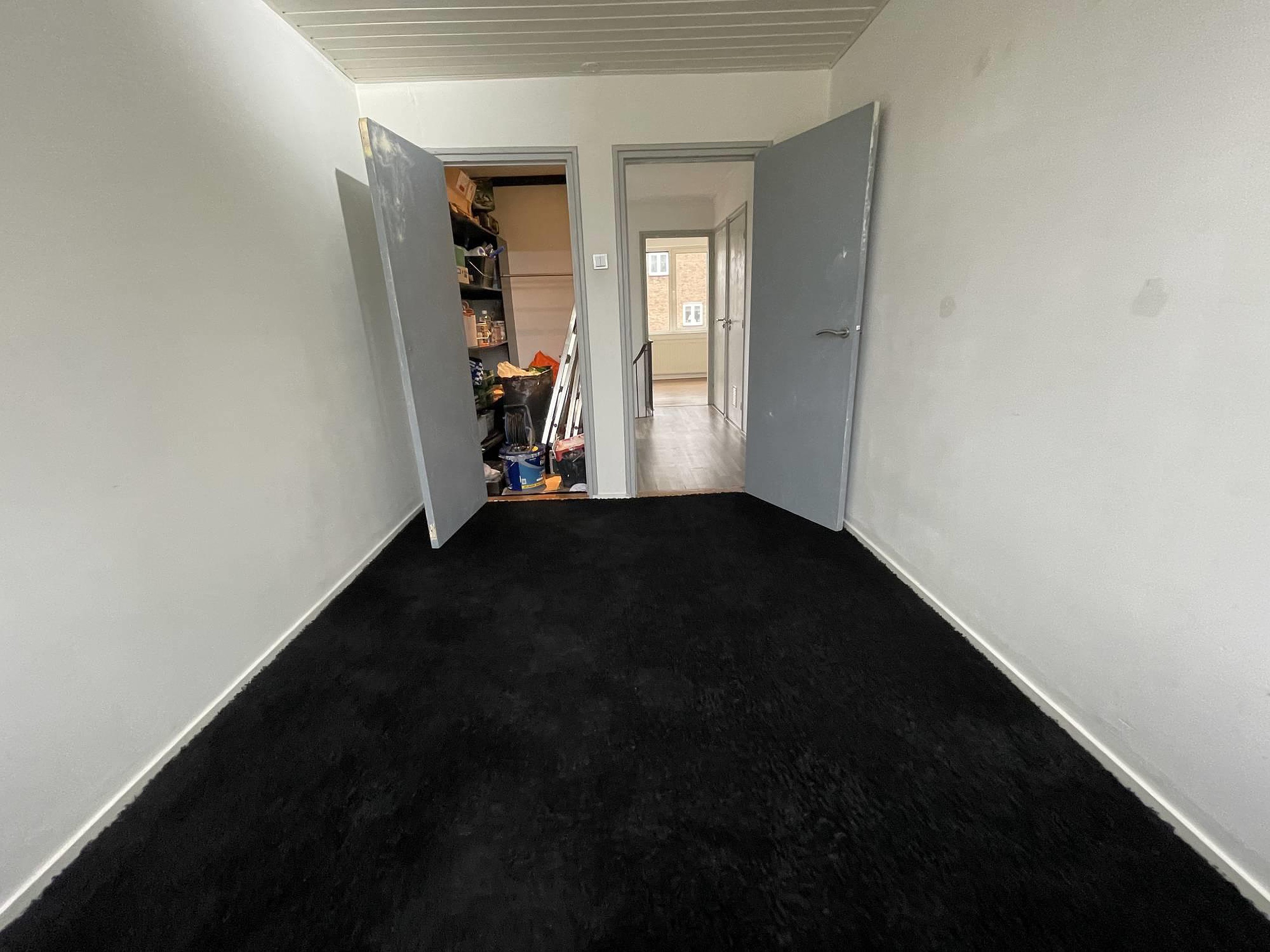 Slaapkamer 1 + berging; 2,55 x 3,82 = 9,77 m2 en 1,56 x 1,17 = 1,83 m2