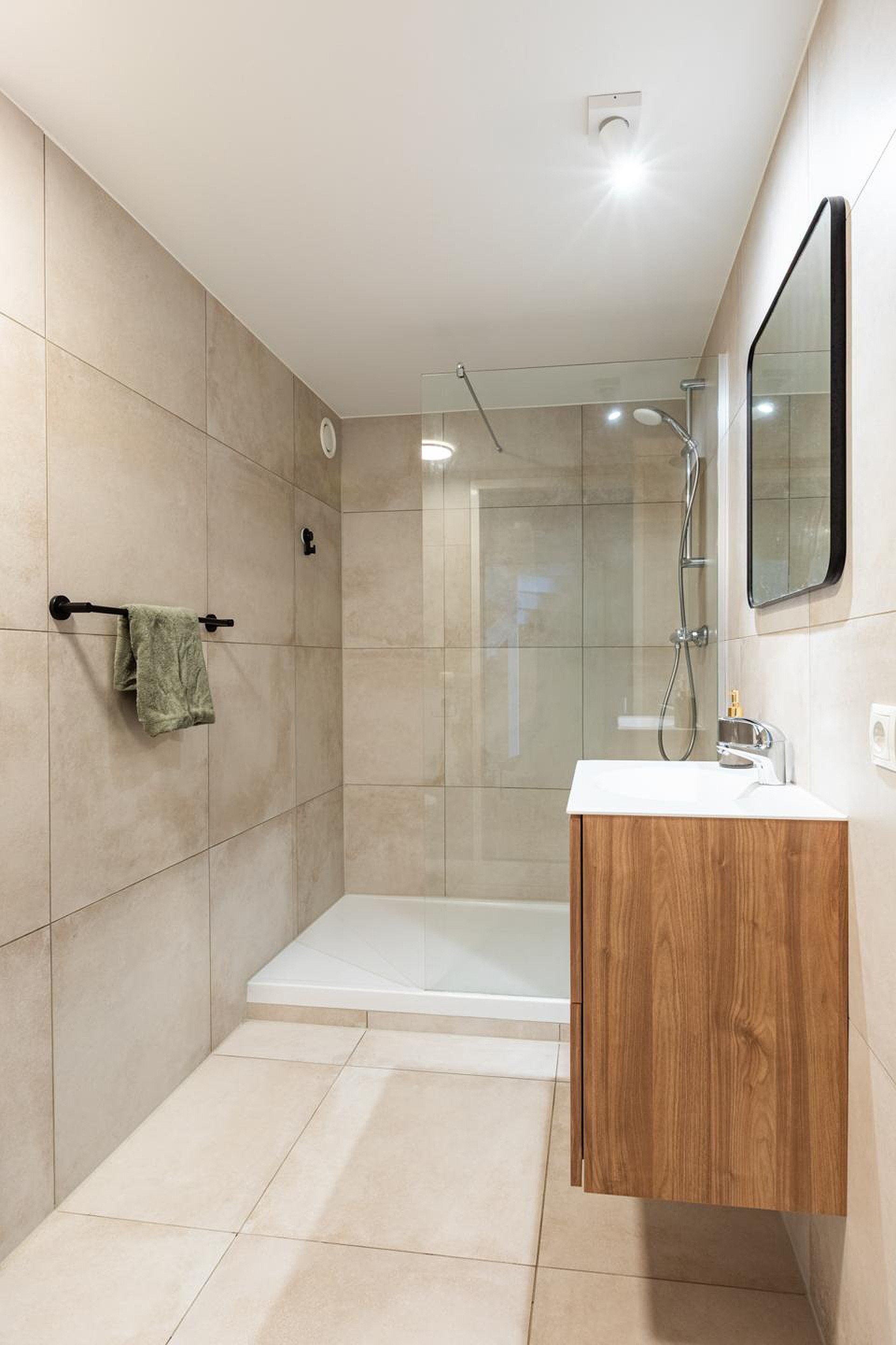 Luxury bathroom. There is a shared washing room with washers and dryers.
