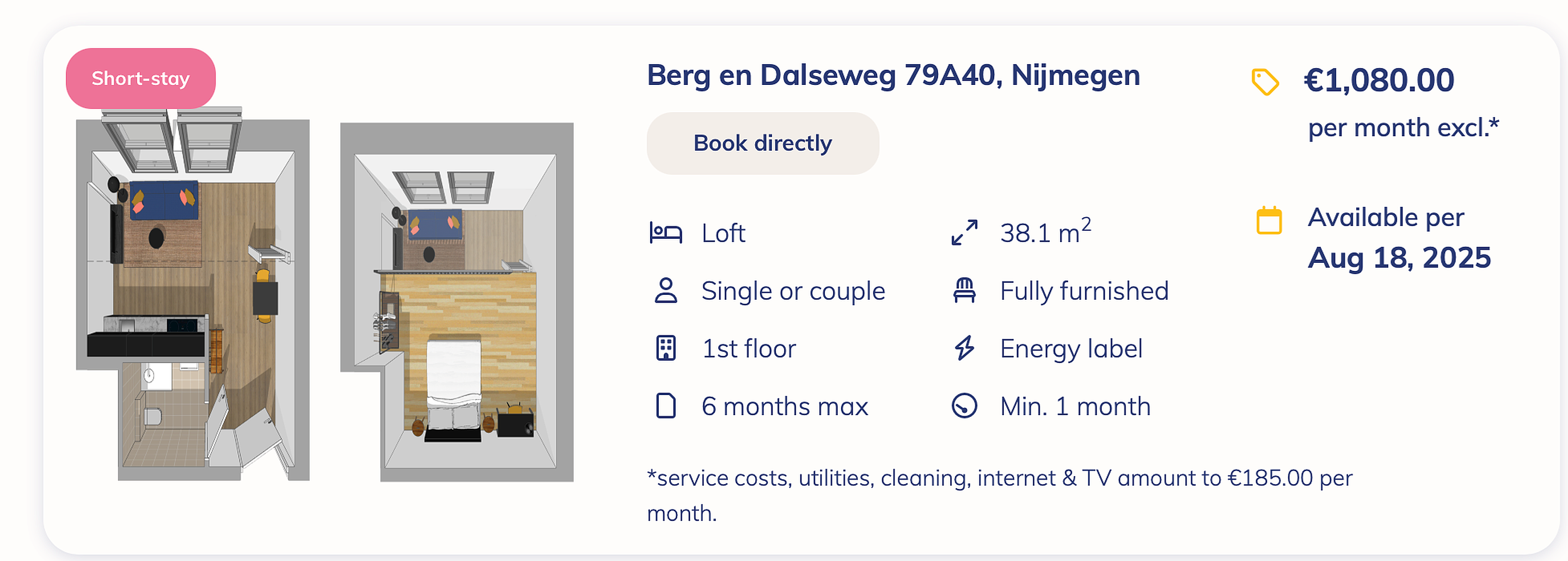 Berg en Dalseweg 79A39 from 03-12-25 / basic rent: € 1232