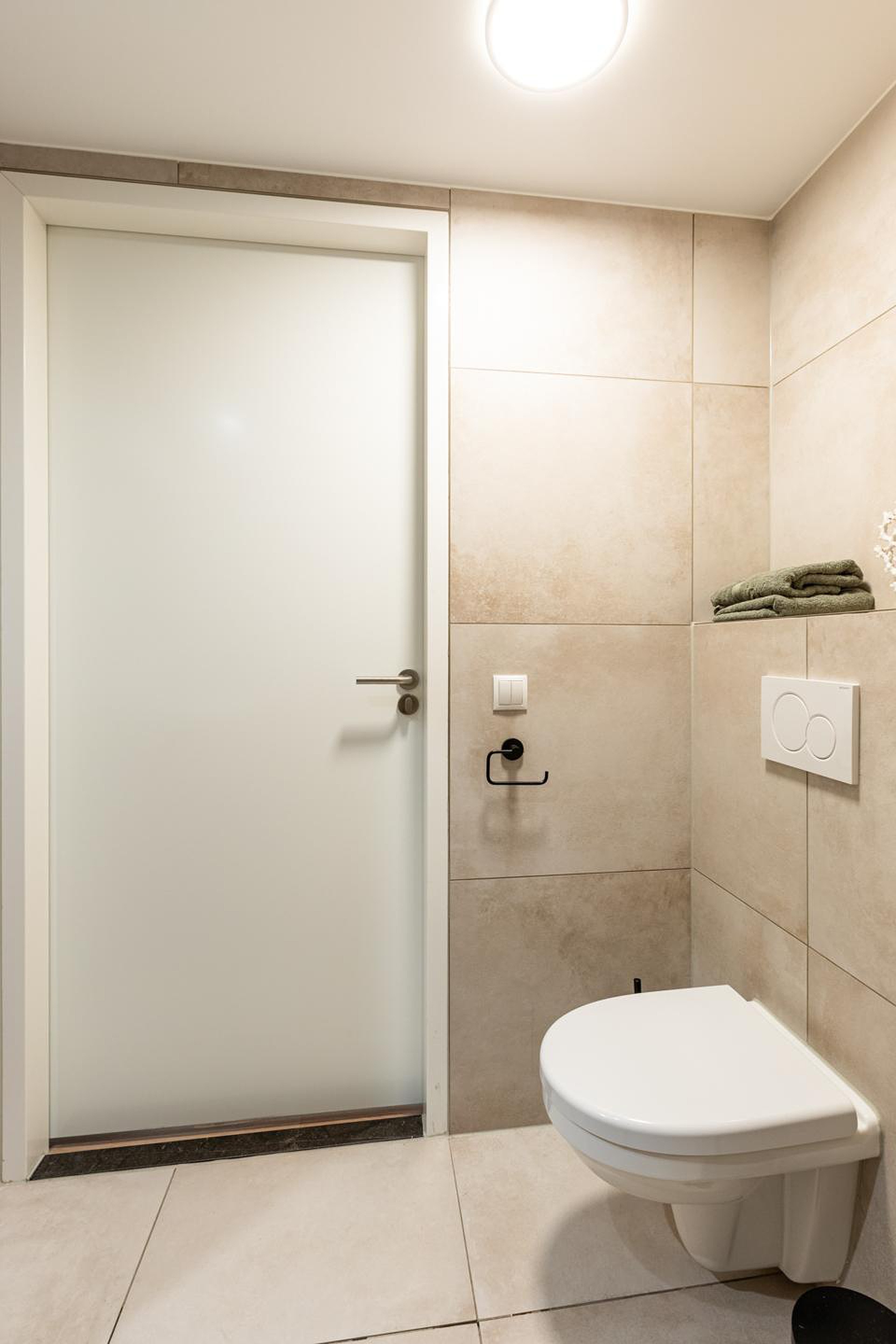 Luxury bathroom. There is a shared washing room with washers and dryers.