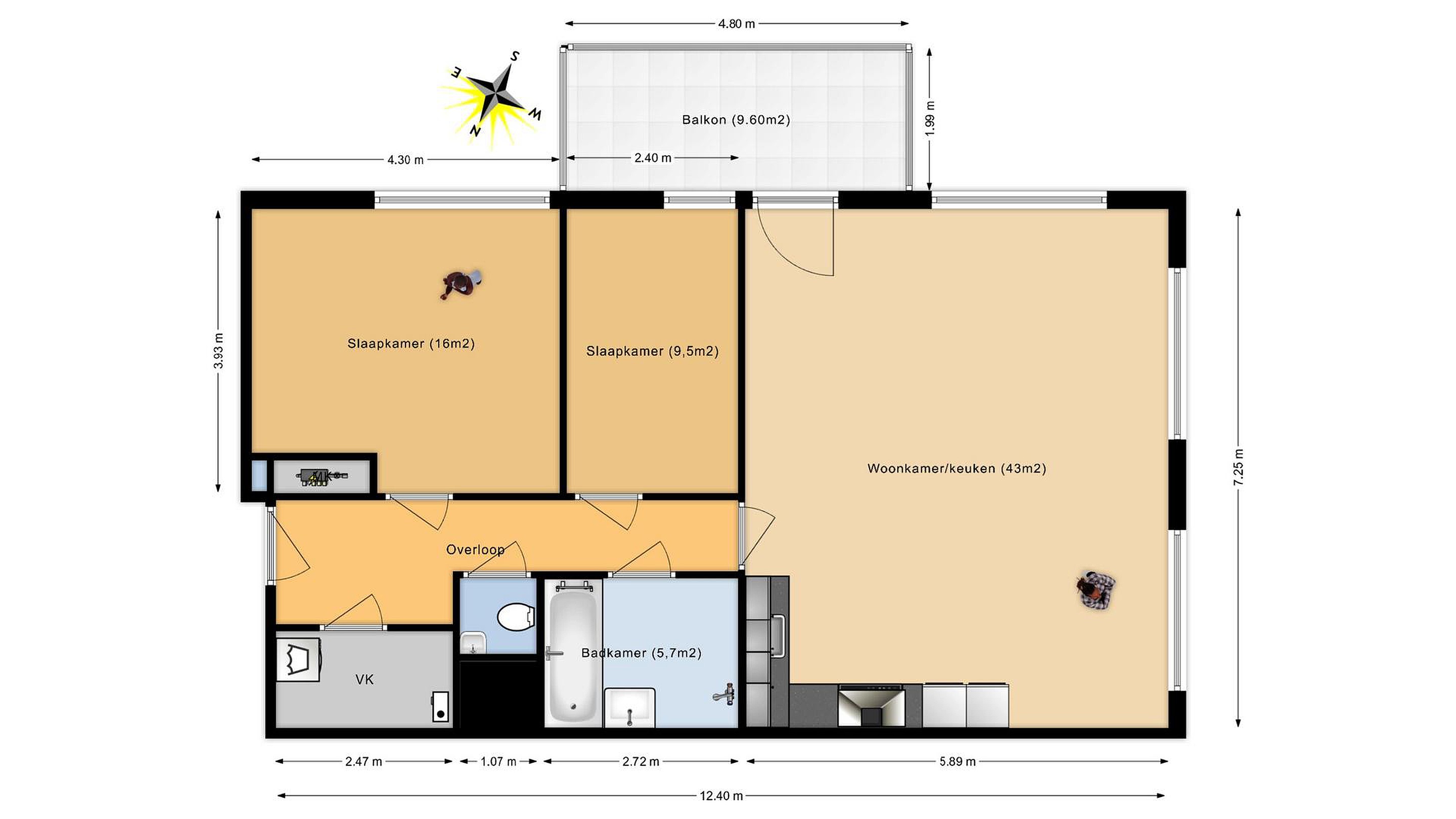 Voor een goede indruk van de maatvoering en de situering van deze ruimtes ten opzichte van elkaar, verwijzen we u graag naar de in deze presentatie getoonde 3d-plattegrond.
