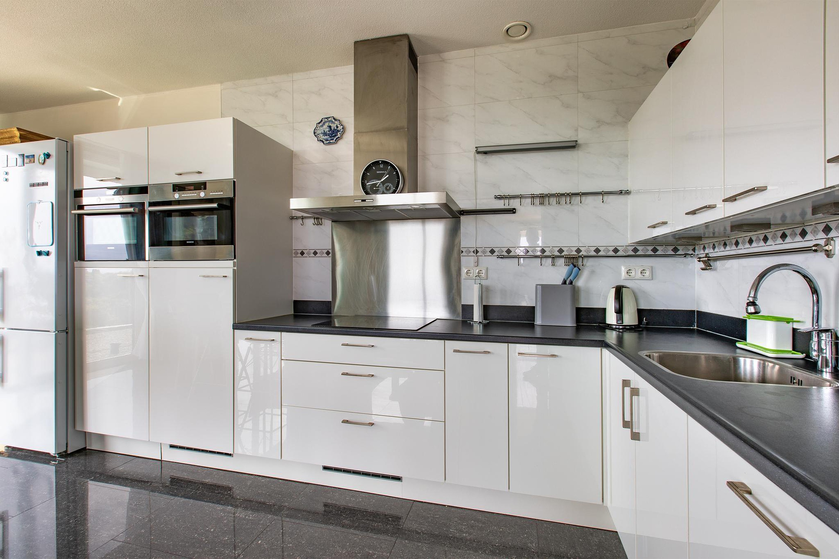 3.) Voorzien van luxe materialen, zoals vloerverwarming en natuurstenen vloer. Voorzien van luxe inbouwapparatuur, waaronder een combi-oven, inductiekookplaat, afzuigkap, koelkast en vaatwasser; alles van het kwaliteitsmerk Siemens.