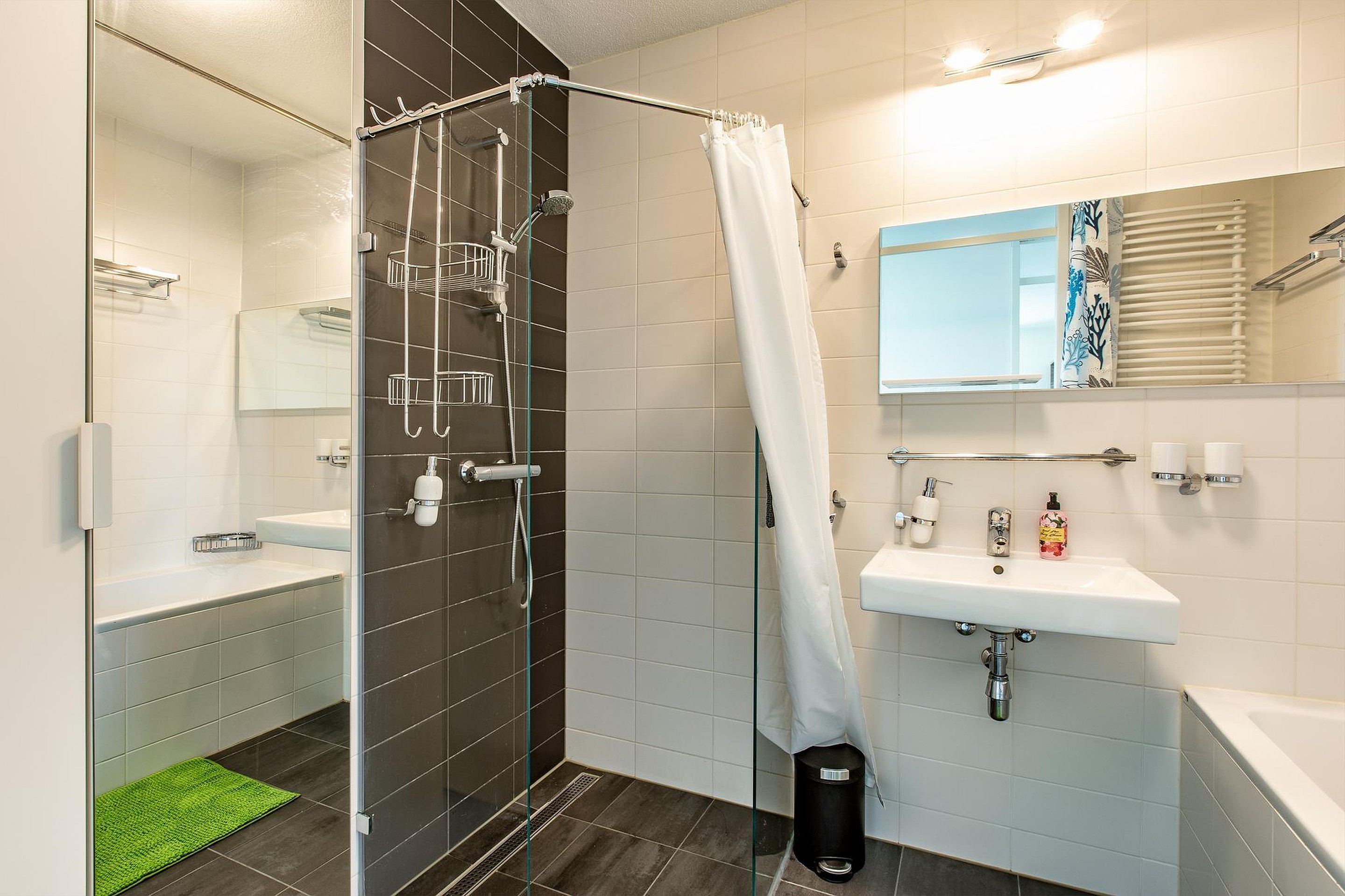 De badkamer is voorzien van ligbad, douche, wastafel en designradiator. De toiletruimte is voorzien van een hangend toilet en wastafel. De keuken is erg luxe uitgevoerd met een composieten werkblad en de volgende inbouwapparatuur van Siemens: oven, combi-oven, inductiekookplaat, afzuigkap, koelkast, en vaatwasser. De woonkamer is voorzien van vloerverwarming onder een schitterende kwaliteit natuurstenen vloer. Vanuit de woonkamer is er toegang naar het balkon van 9m2 op het zuiden van 4,8m x 2m. Vanaf hier kun u genieten van fraaie vergezichten. De gehele woning is voorzien van dubbelglas in kunststof kozijnen.