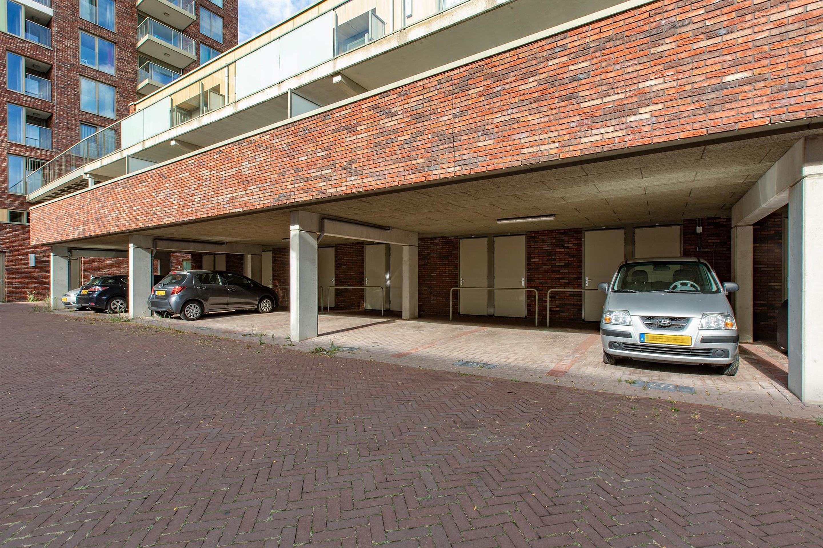 Op de begane grond bevindt zich de overdekte parkeerplaats op het afgesloten gemeenschappelijke parkeerterrein. Ook bevindt zicht hier (vlak achter de parkeerplaats) een berging van ca. 7m2.