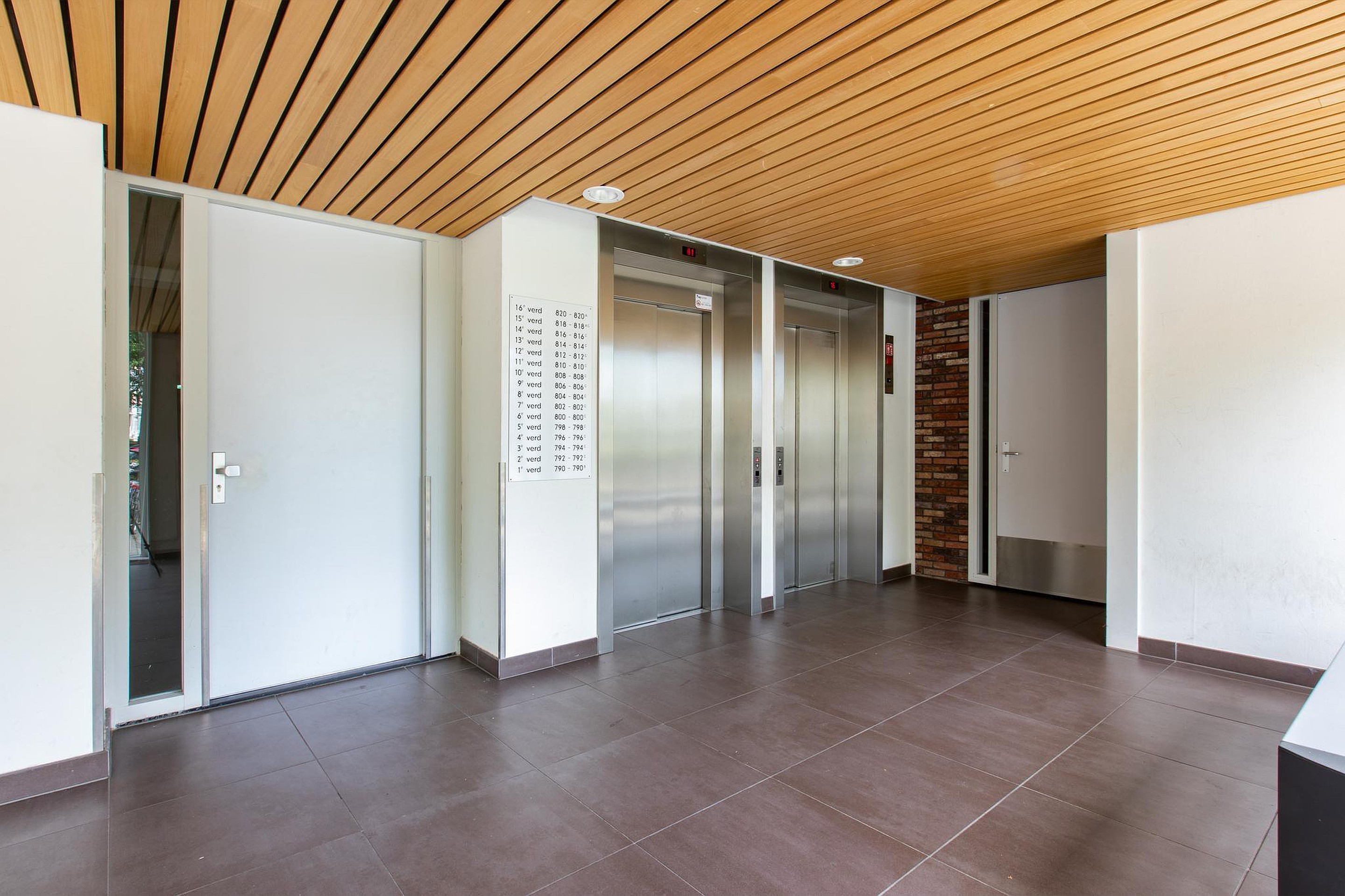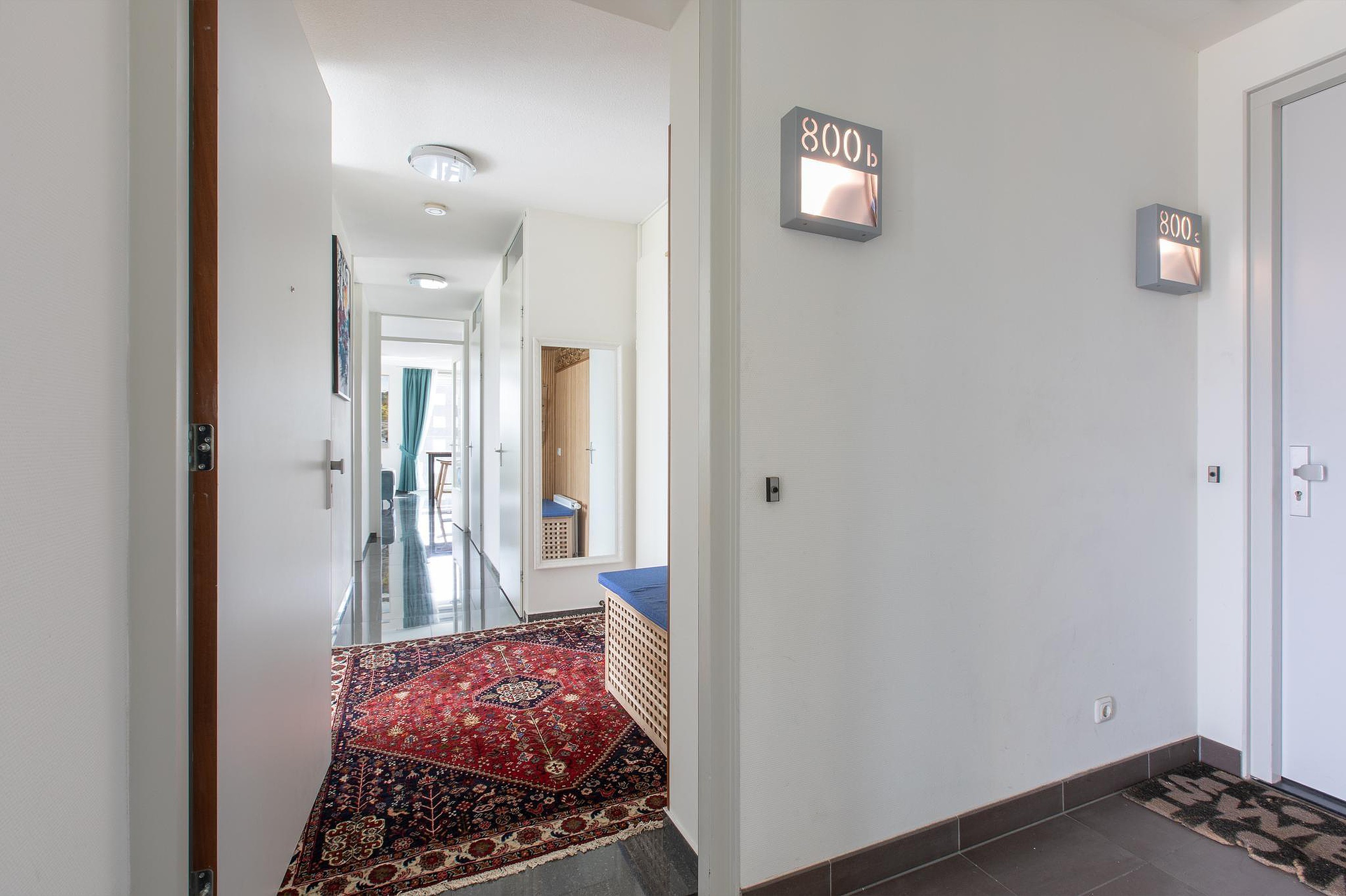 Entree begane grond: Via de afgesloten ruime hal met bellentableau en intercom gaat u naar de liften. Met een lift gaat u naar de zesde etage. Aangekomen op de zesde etage kom u op een overloop met 4 voordeuren en gaat naar deur '800b'.