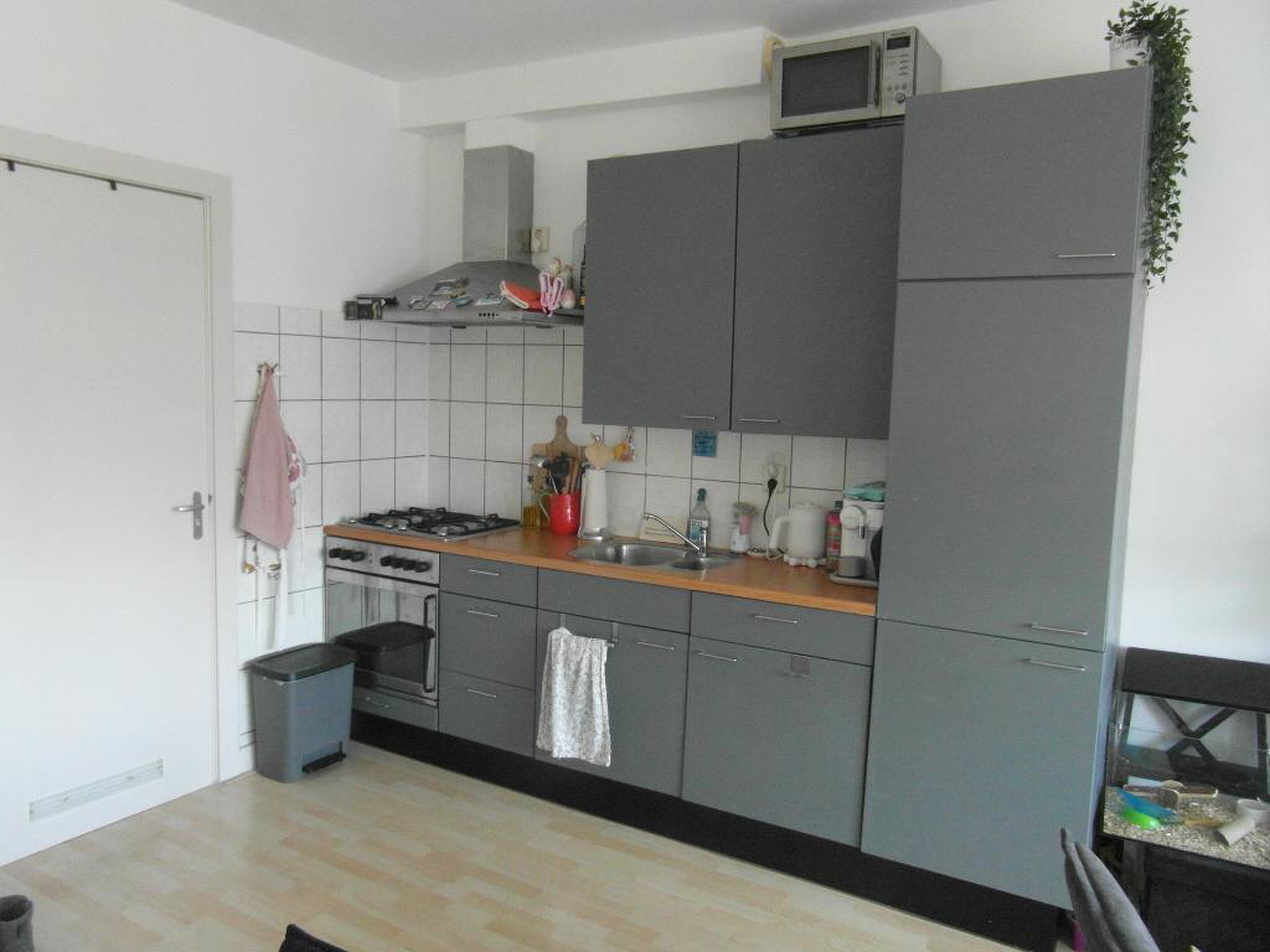 Entree appartement in de woonkeuken met toegang tot de slaapkamer en de douche/ toilet combinatie.