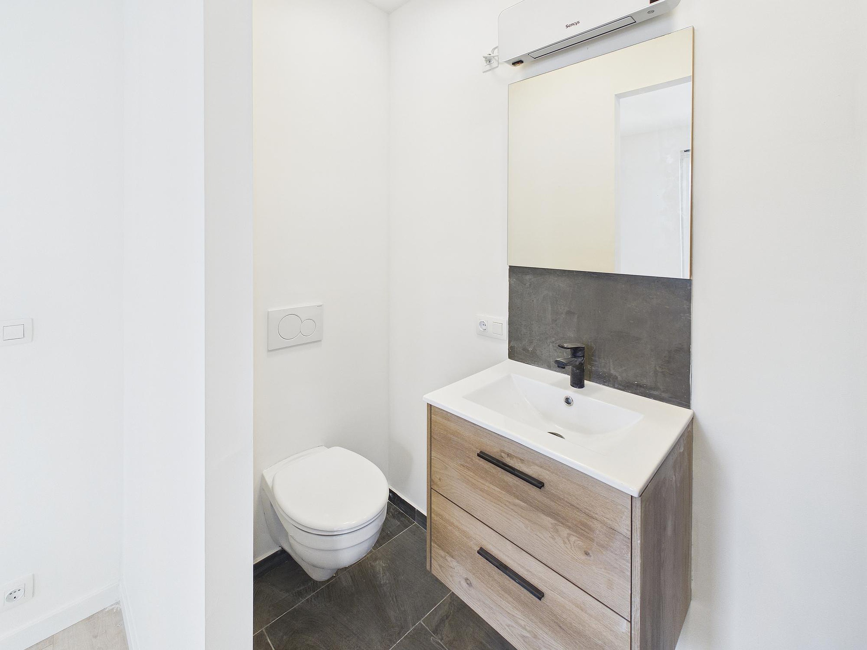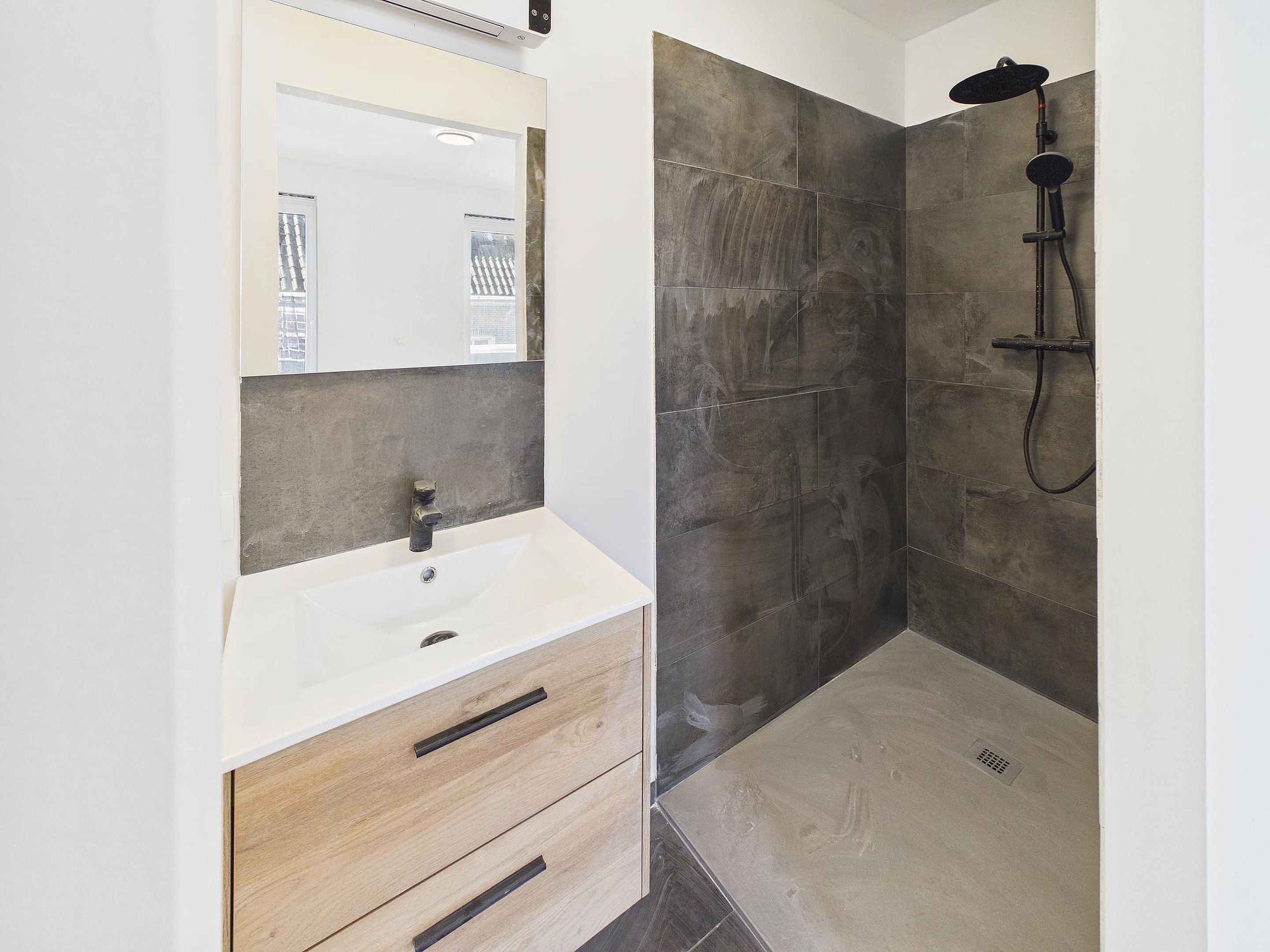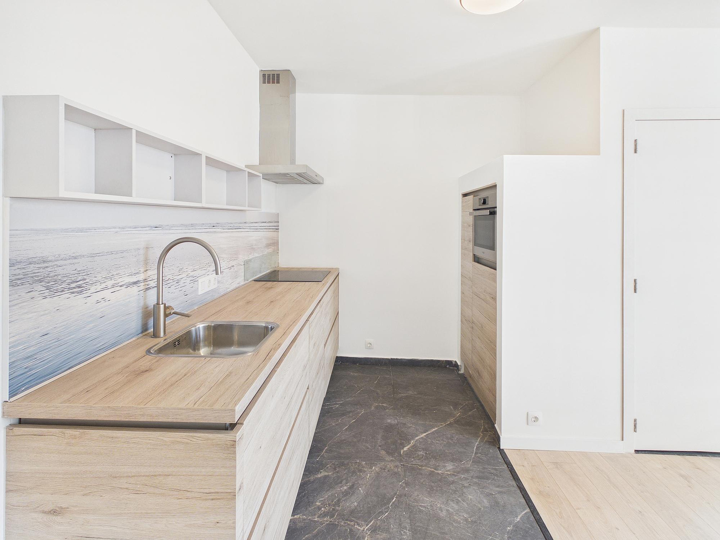 Inkomhal met toegang tot de woonkamer en keuken. De nieuwe keuken beschikt over alle benodigde inbouwapparatuur; een elektrische kookplaat, afzuigkap, oven en vaatwasser. Naast de keuken vind je het cv-hok met hierin de aansluiting voor de wasmachine. Aan de voorzijde van het gebouw bevindt zich de slaapkamer met aansluitend de badkamer. De badkamer is volledig vernieuwd en beschikt over een inloopdouche en wastafel met meubel en toilet. Via de slaapkamer is ook het balkon bereikbaar.