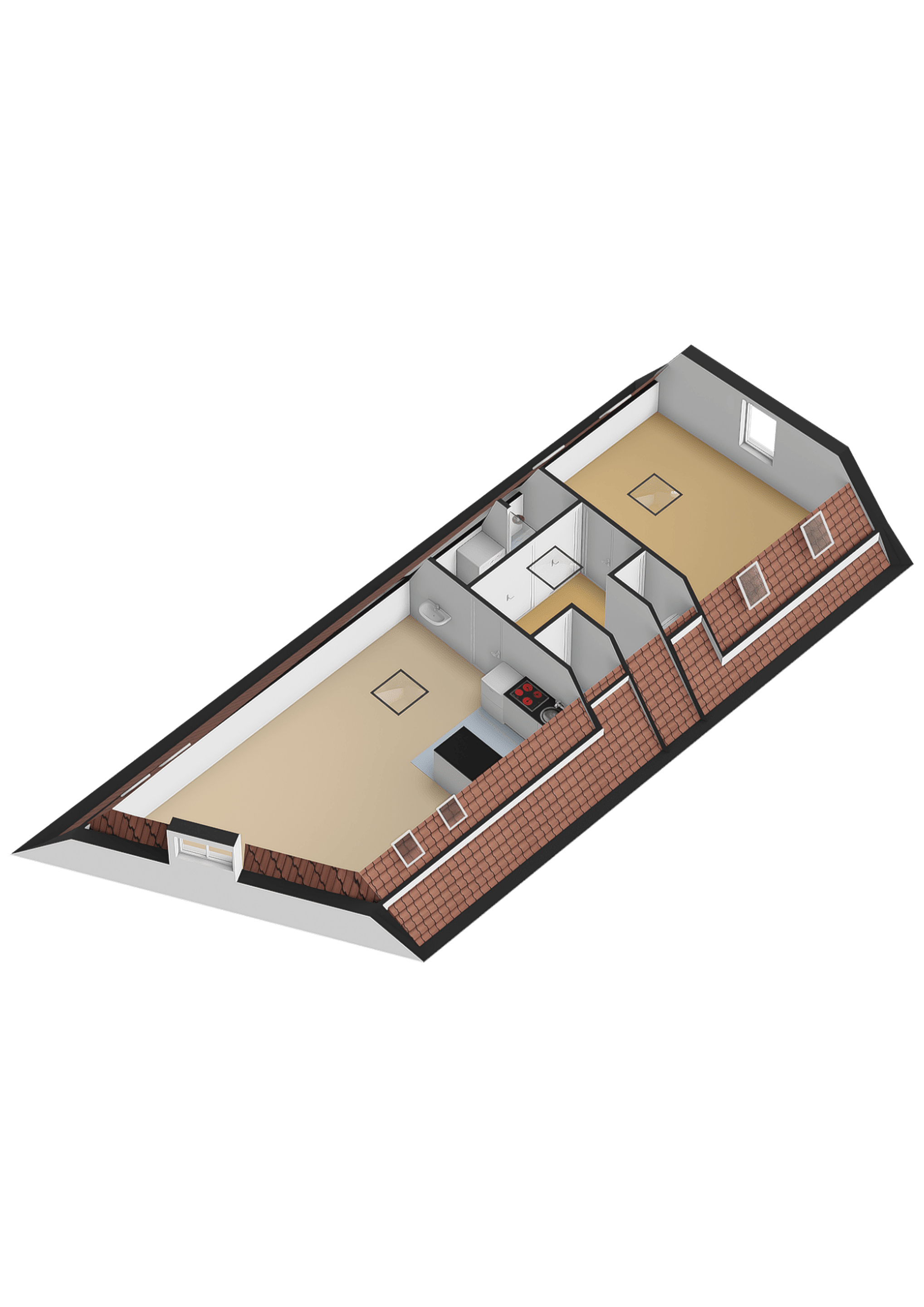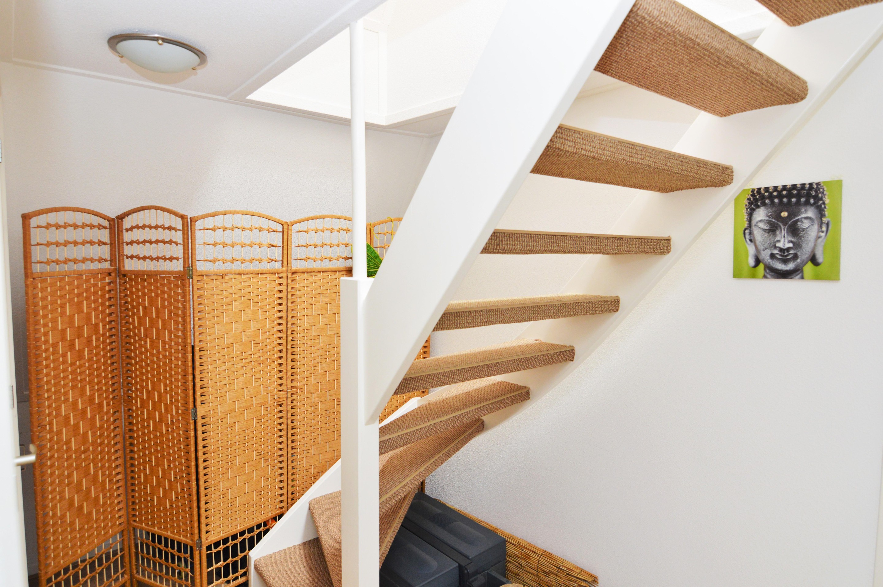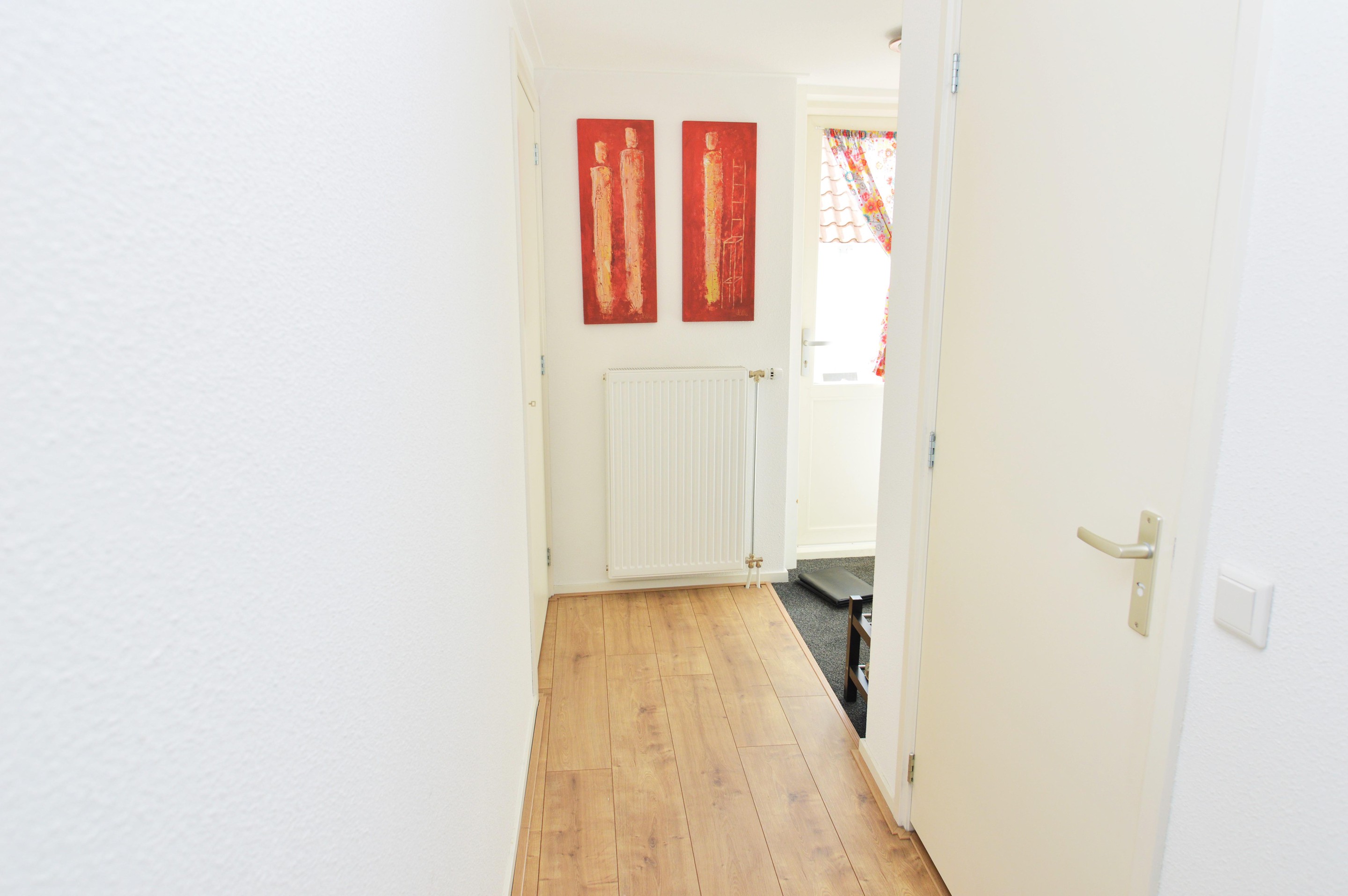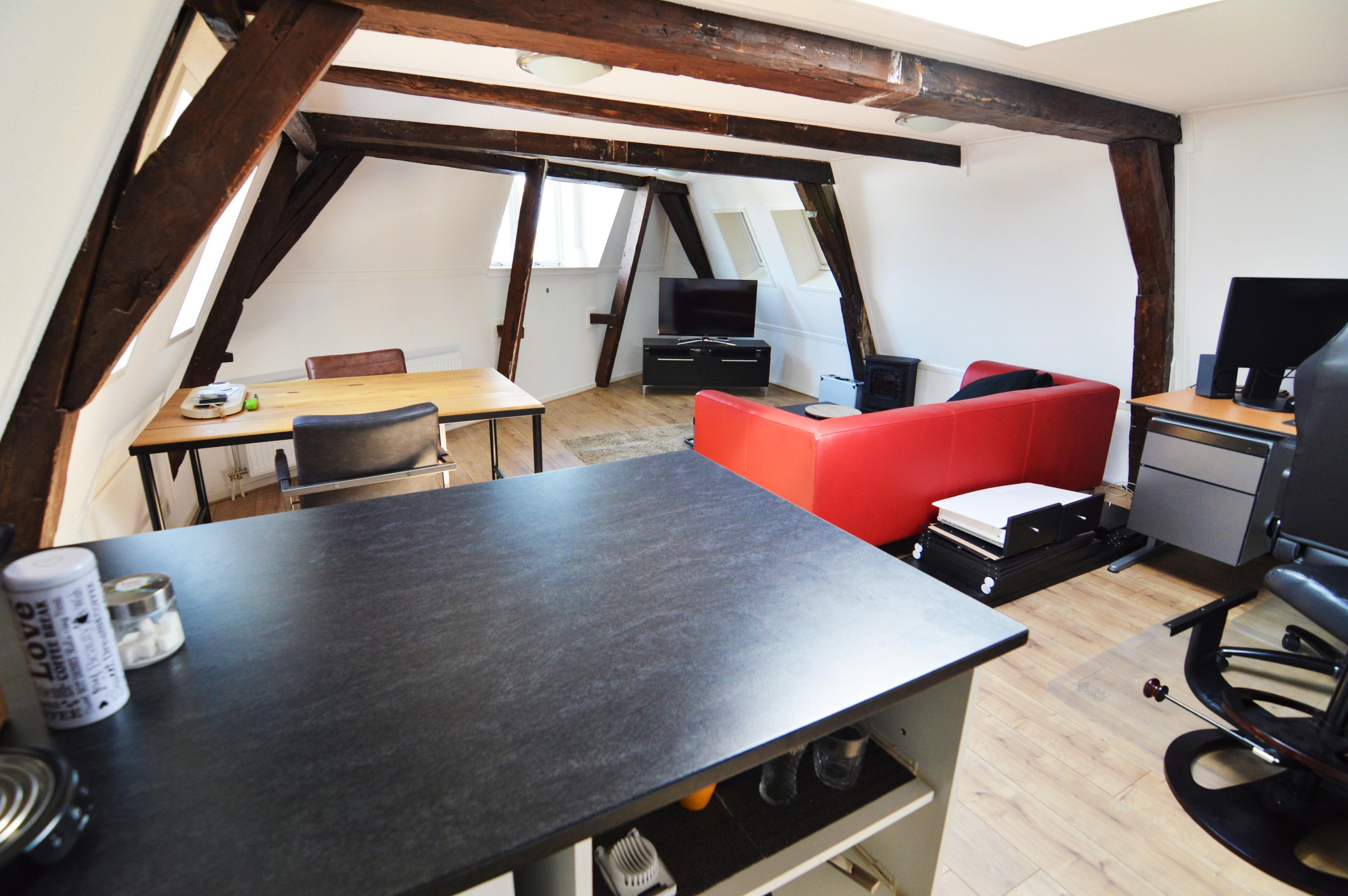 Main entrance with a secure door on a quiet side of Nieuwstad, a shared outdoor area for bicycles, and a sturdy staircase leading to the front door. Entrance hall (entrance is shared) with access via the internal staircase to the private hallway on the second floor. From here, there is access to the living room, bathroom, toilet, wardrobe, and spacious bedroom. The entire apartment features many charming nooks and crannies thanks to the sloping roof, natural light through various windows, and the traditional beams. This makes the living room with a canal view a cozy space with an open-plan kitchen. The kitchen is equipped with a refrigerator, electric stove, and extractor hood. The entire house has beautiful laminate flooring (soundproof, commercial-grade flooring), and all windows are double-glazed and have sun-blocking sliding curtains. The bathroom and toilet were completely renovated two years ago.