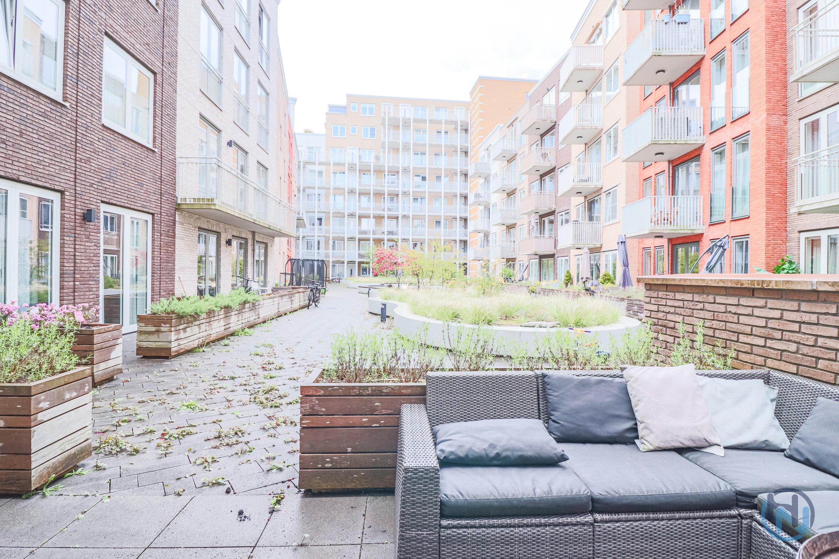 Nice furnished apartment with 2 balconies in modern building with elevator and parking garage, situated on the 1st floor for rent at a great location in Holland Park, Diemen. The apartment has a canal view and is close to the public transport with tram and the bus. Supermarket and restaurants at walking distance.