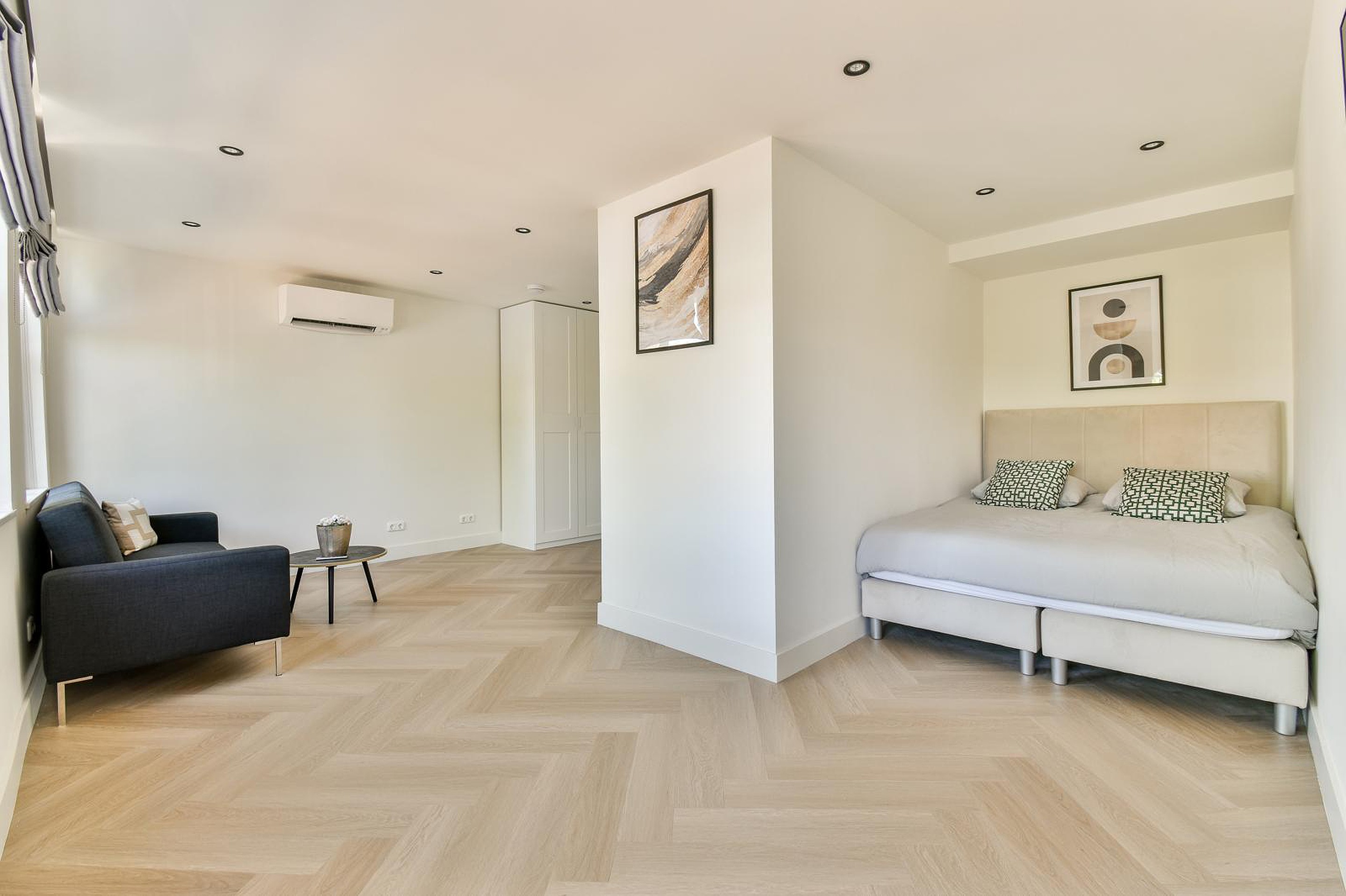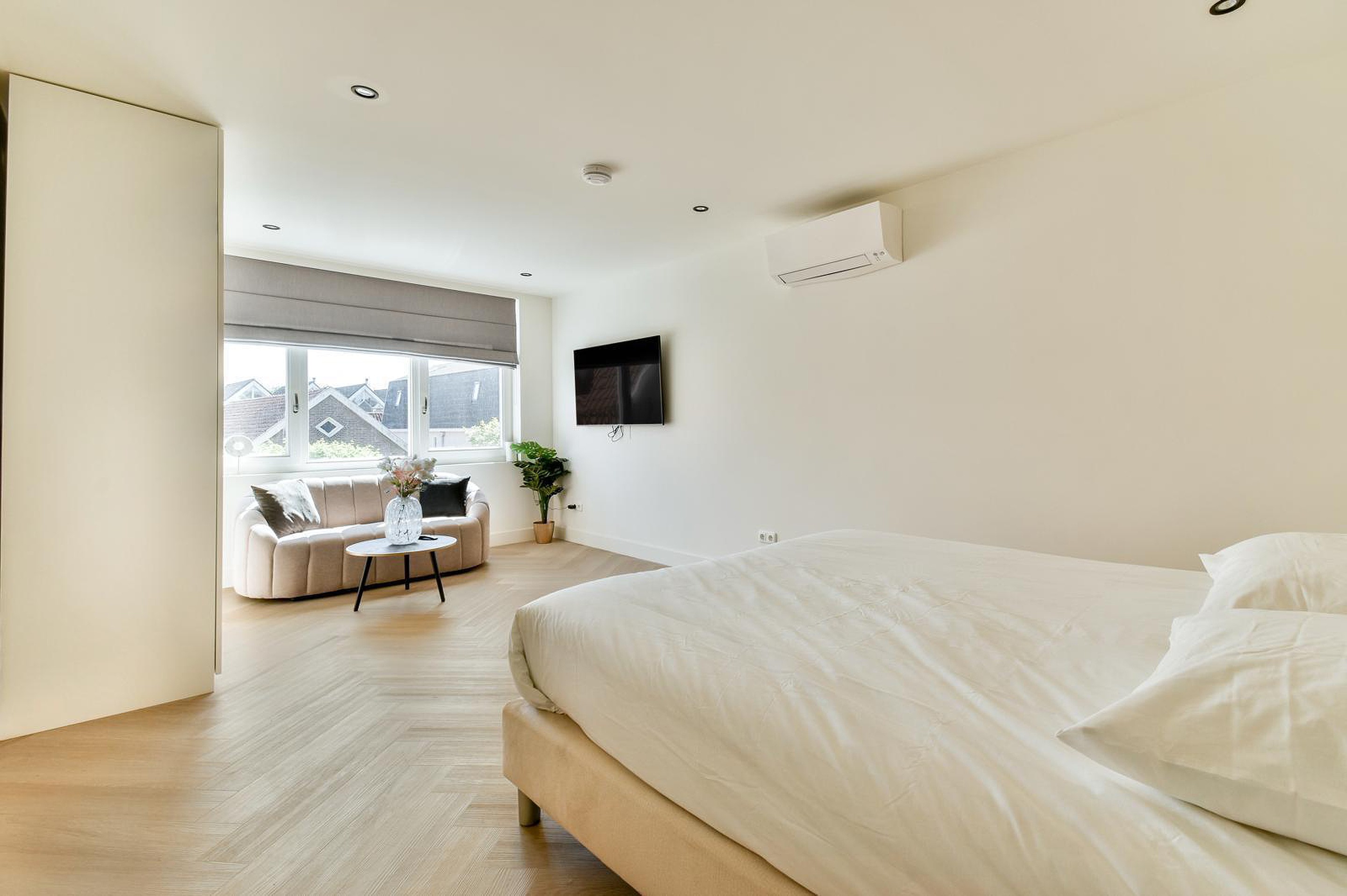 Het appartement beschikt over drie royale slaapkamers, elk met een eigen uitstraling en afgewerkt met hoogwaardige materialen. Dankzij de aanwezigheid van vier moderne badkamers is comfort hier vanzelfsprekend. De badkamers zijn uitgevoerd in tijdloze tinten, met inloopdouches, design wastafels en luxe sanitair.