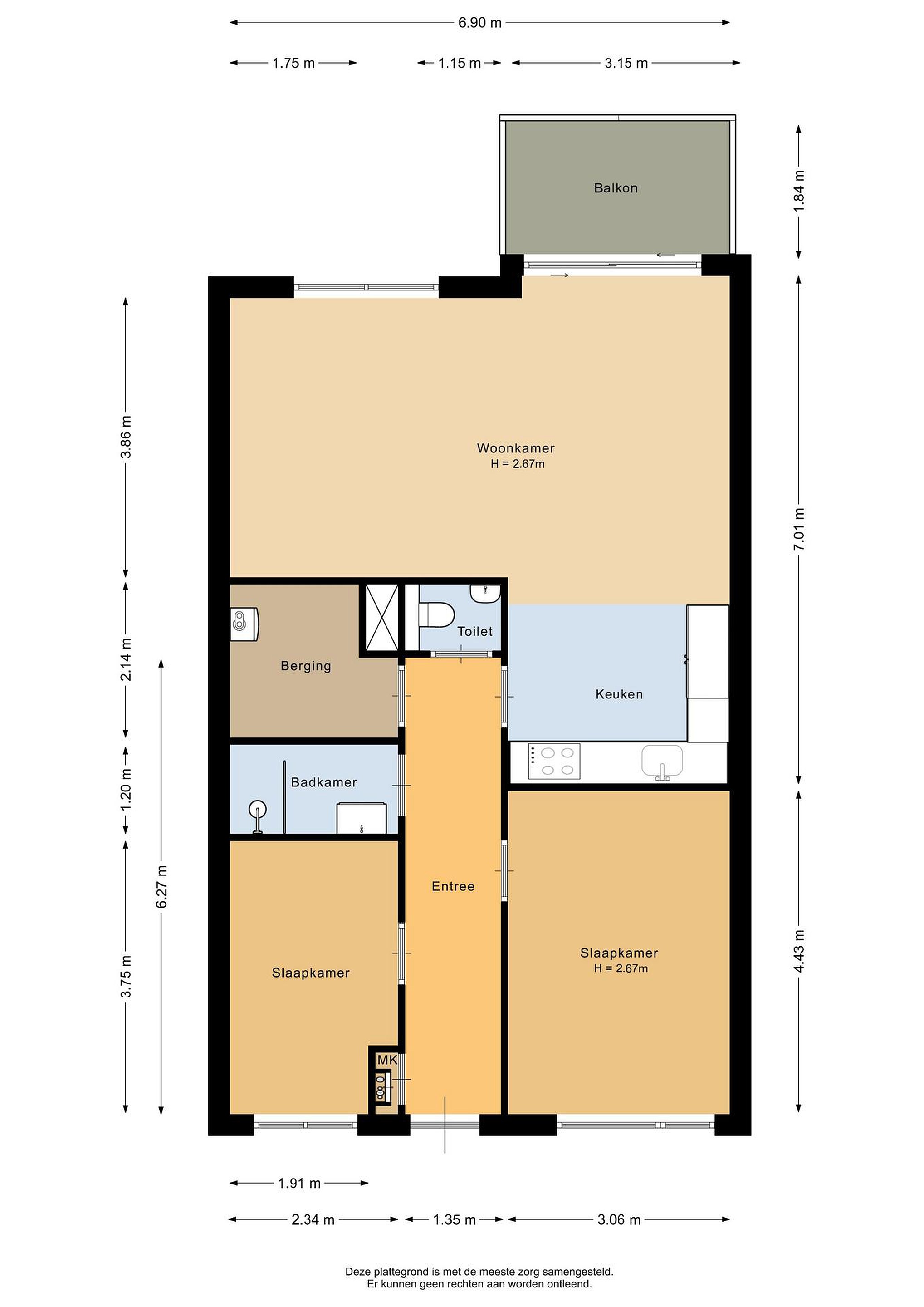 € 1.690,- per maand, exclusief servicekosten (€ 86,96 per maand).