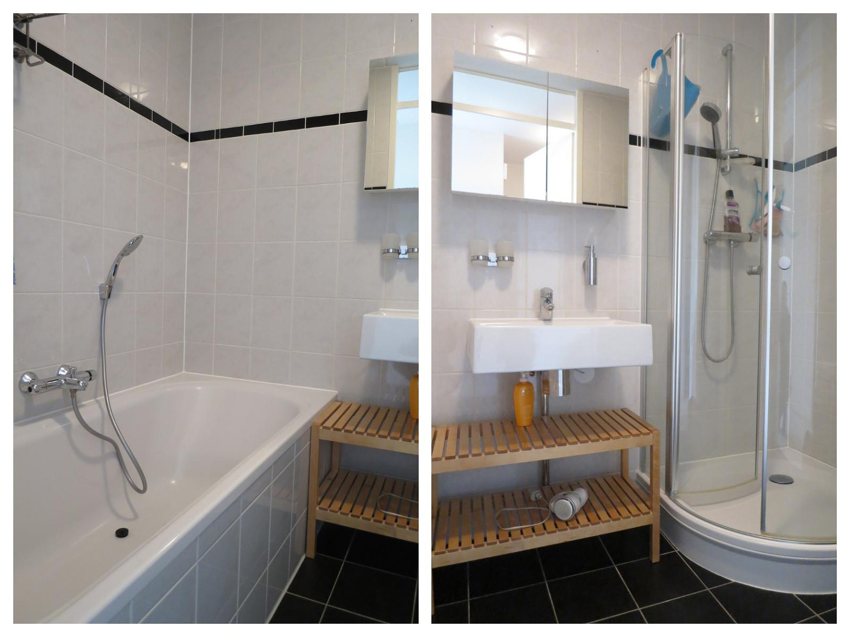 Direct bij binnenkomst, in de hal die toegang geeft tot alle vertrekken, treft u aan uw linkerzijde het separaat toilet aan. Beide slaapkamers liggen aan de achterzijde van het appartement, aan de rustige binnentuin. De main-bedroom is van royaal formaat en ook de tweede slaapkamer heeft een goed formaat. Beide slaapkamers zijn net als de rest van het appartement voorzien van een keurige laminaat vloer. Tussen de slaapkamers en de keuken bevinden zich de interne berging voorzien van wasmachine en droger. De separate badkamer is voorzien van bad en douche.