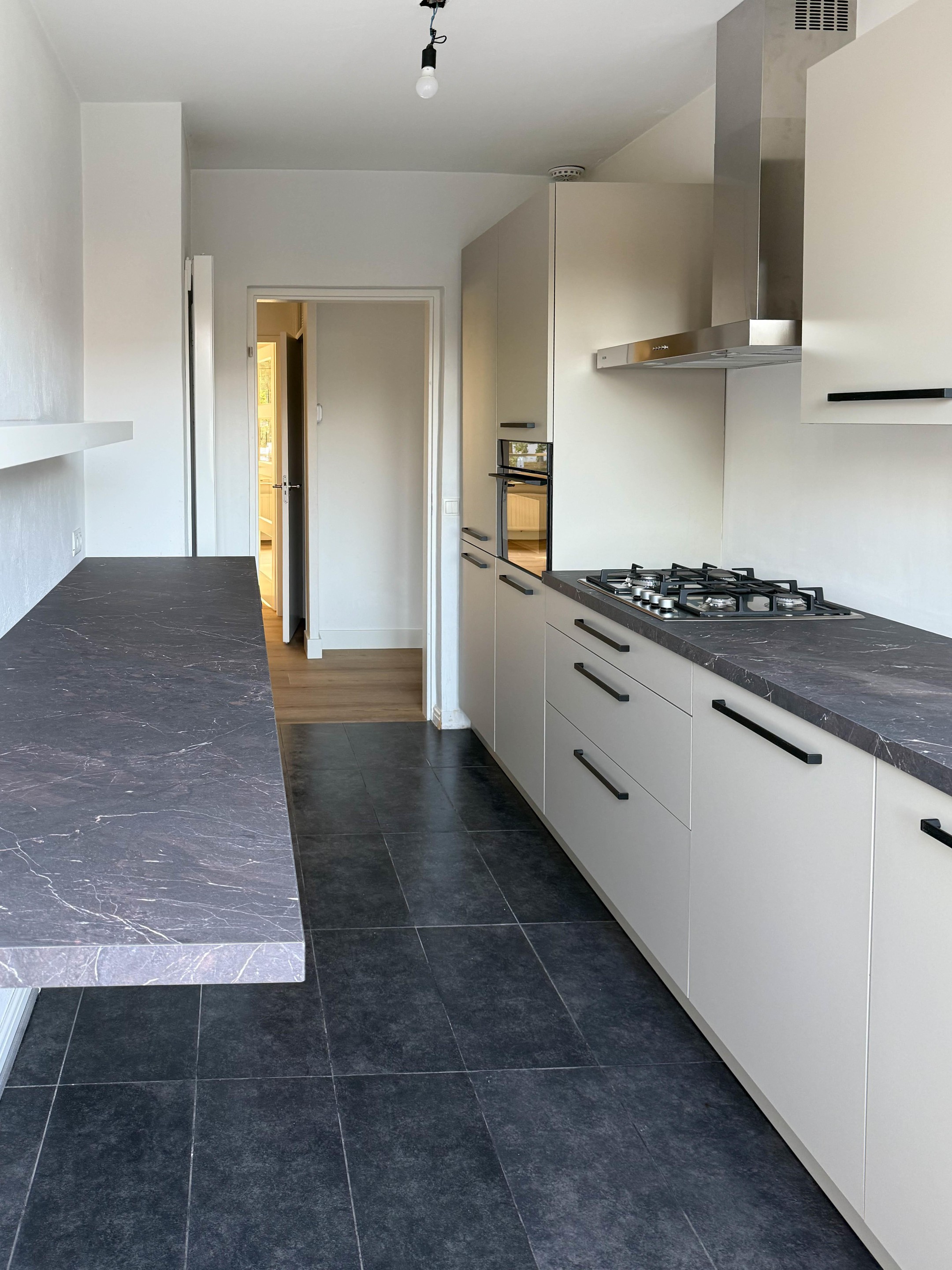 De gehele verdieping m.u.v. de keuken, badkamer en toilet is voorzien van nieuwe PVC vloer in houtmotief met hoge plint. Tevens is de gehele verdieping voorzien van stucwerk wanden en plafond.