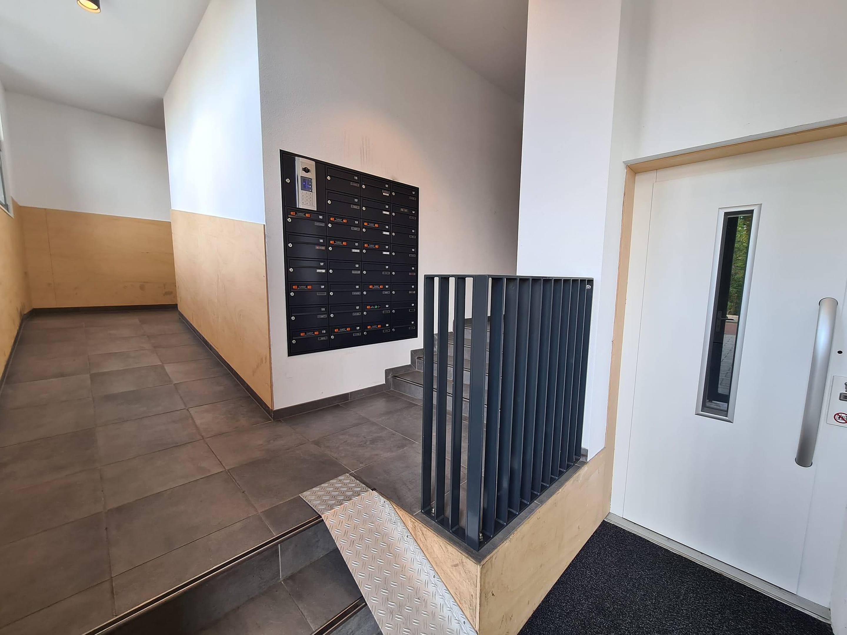 Entree op de begane grond, hier bevindt zich een lift, een vaste trap, de brievenbussen en het intercomsysteem. Via de algemene hal op de eerste verdieping is de woning aan de achterzijde van het pand te betreden.