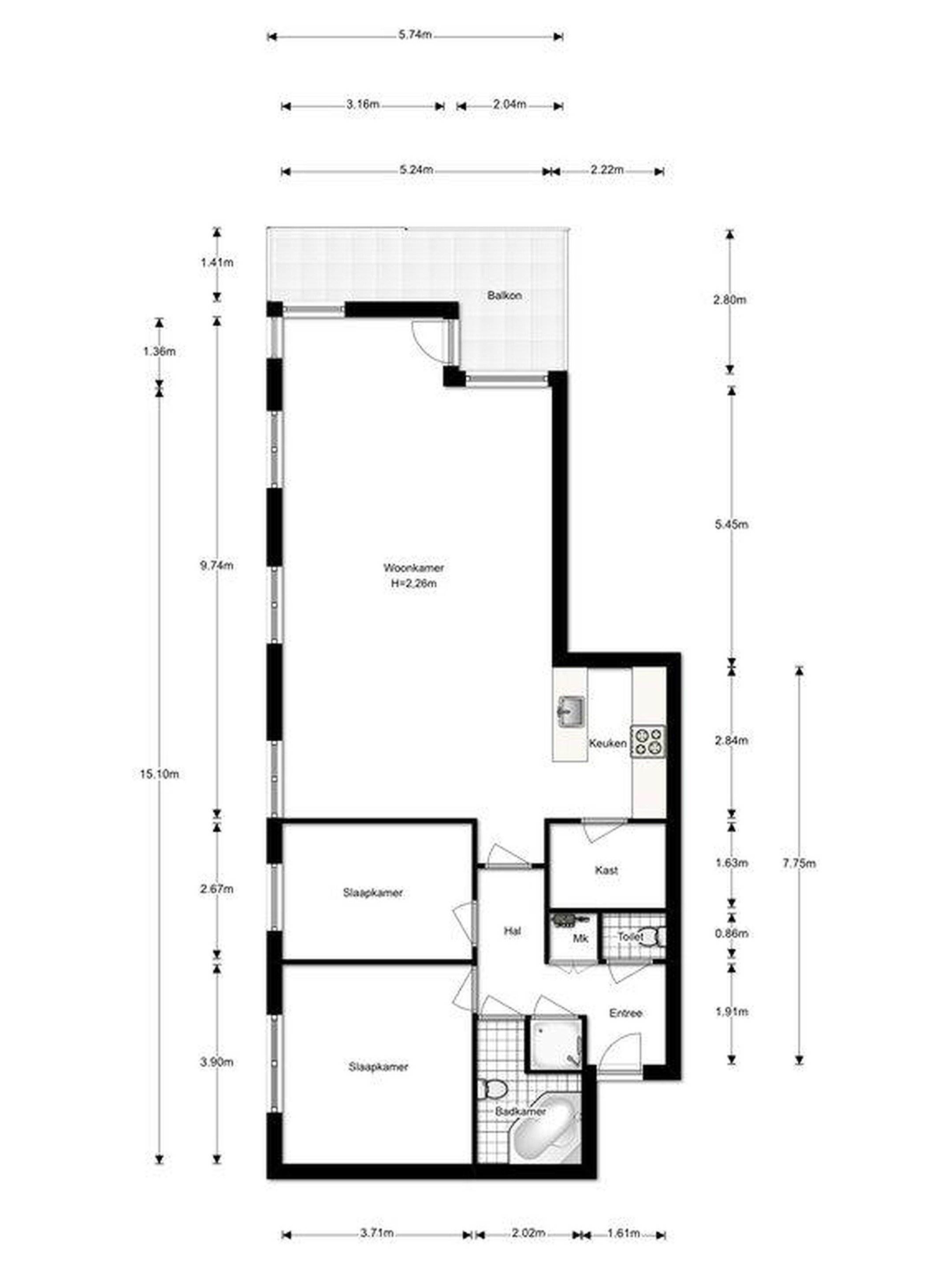 The lay-out of the apartment is very good. The Living area is big with a half open kitchen island and a seating bar. There is an indoor storage next to the kitchen, with washing machine, drier and a large freezer. All brand new built in kitchen appliances are installed. Plenty storage space is available.