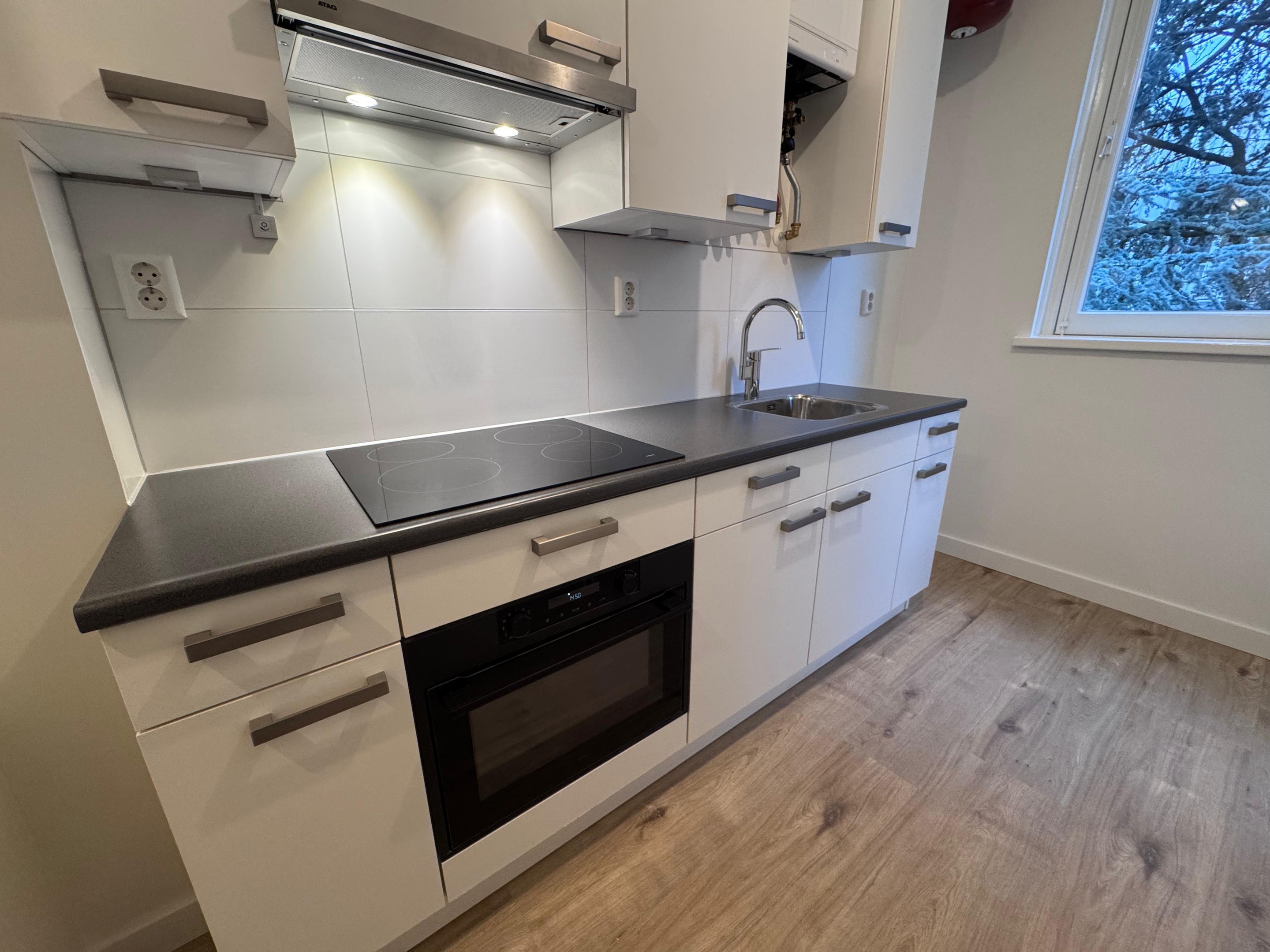 De keuken aan de achterzijde is zeer compleet met o.a. een inductie kookplaat, elektrische oven, afzuigkap en eenhandsmengkraan. Er zijn 1 a 2 slaapkamers, één aan de voorzijde (divers te gebruiken ruimte, afsluitbaar) en één aan de achterzijde. De badkamer is luxe uitgevoerd met een inloop regendouche, dubbele wastafel, meubel, handdoeken radiator, spiegel incl. ledverlichting; het zwevend toilet is separaat.