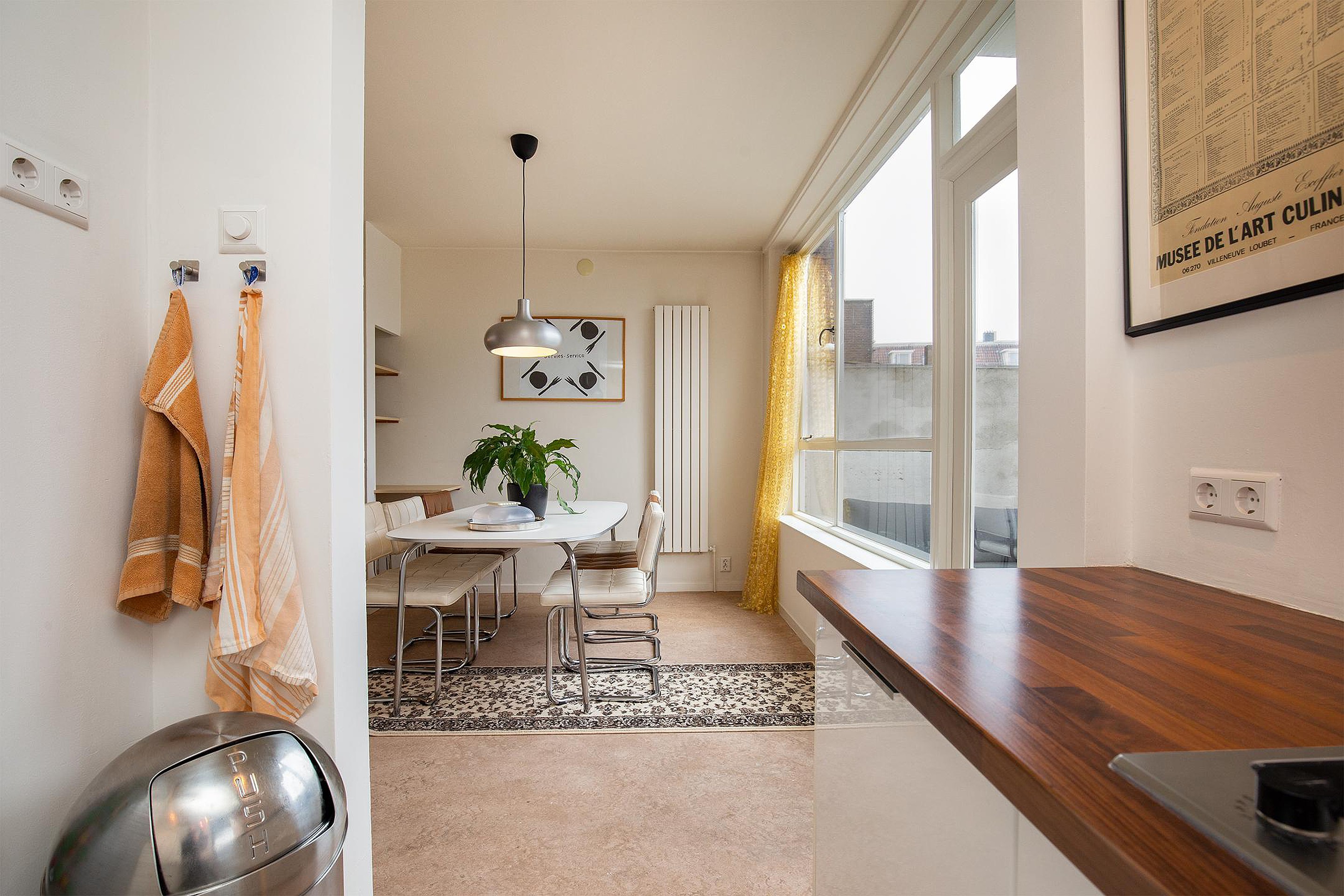 Vanuit de woonkamer stap je zo het ruime dakterras op – een heerlijke plek om te genieten van de zon of een gezellige avond met vrienden.