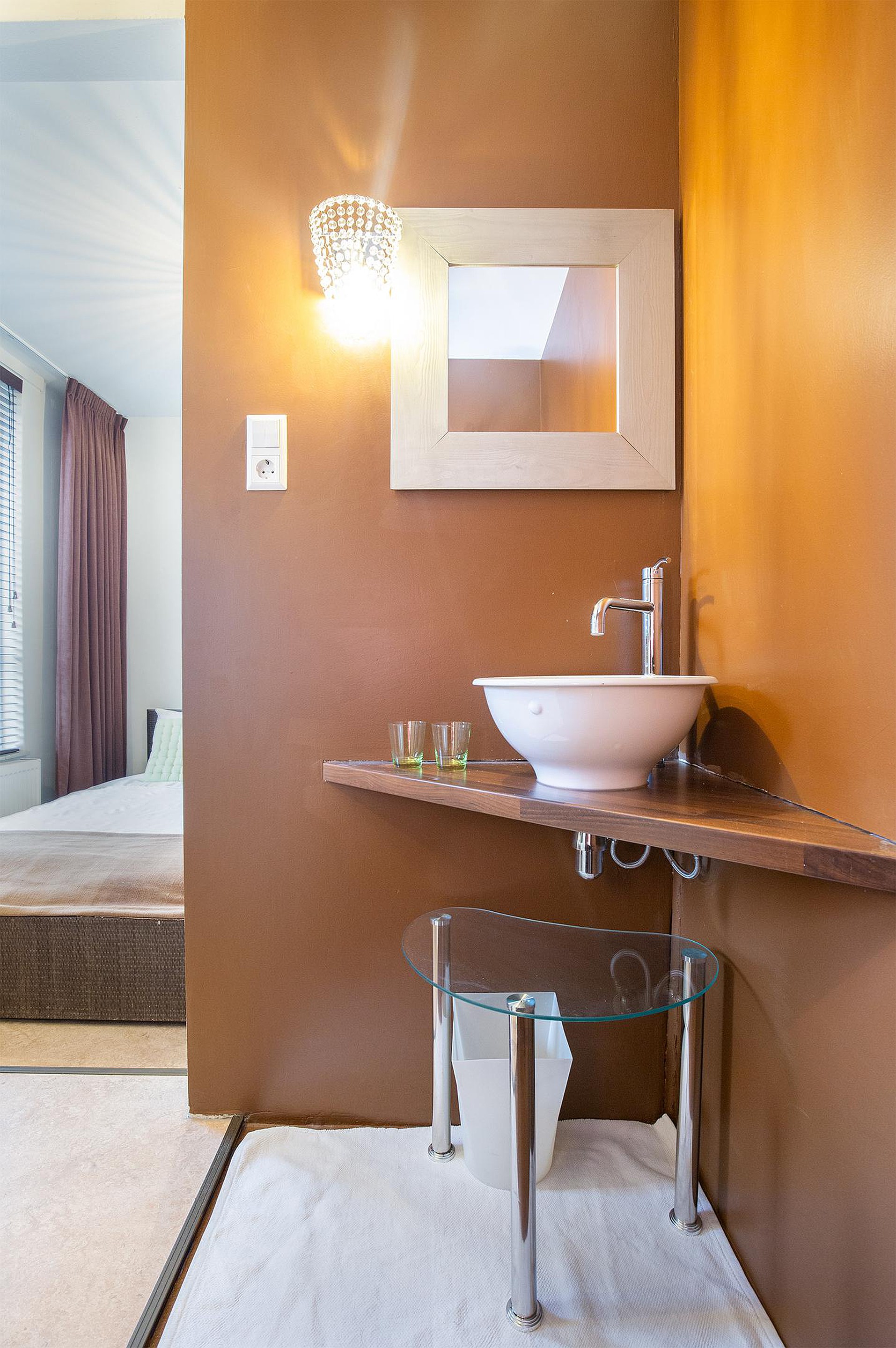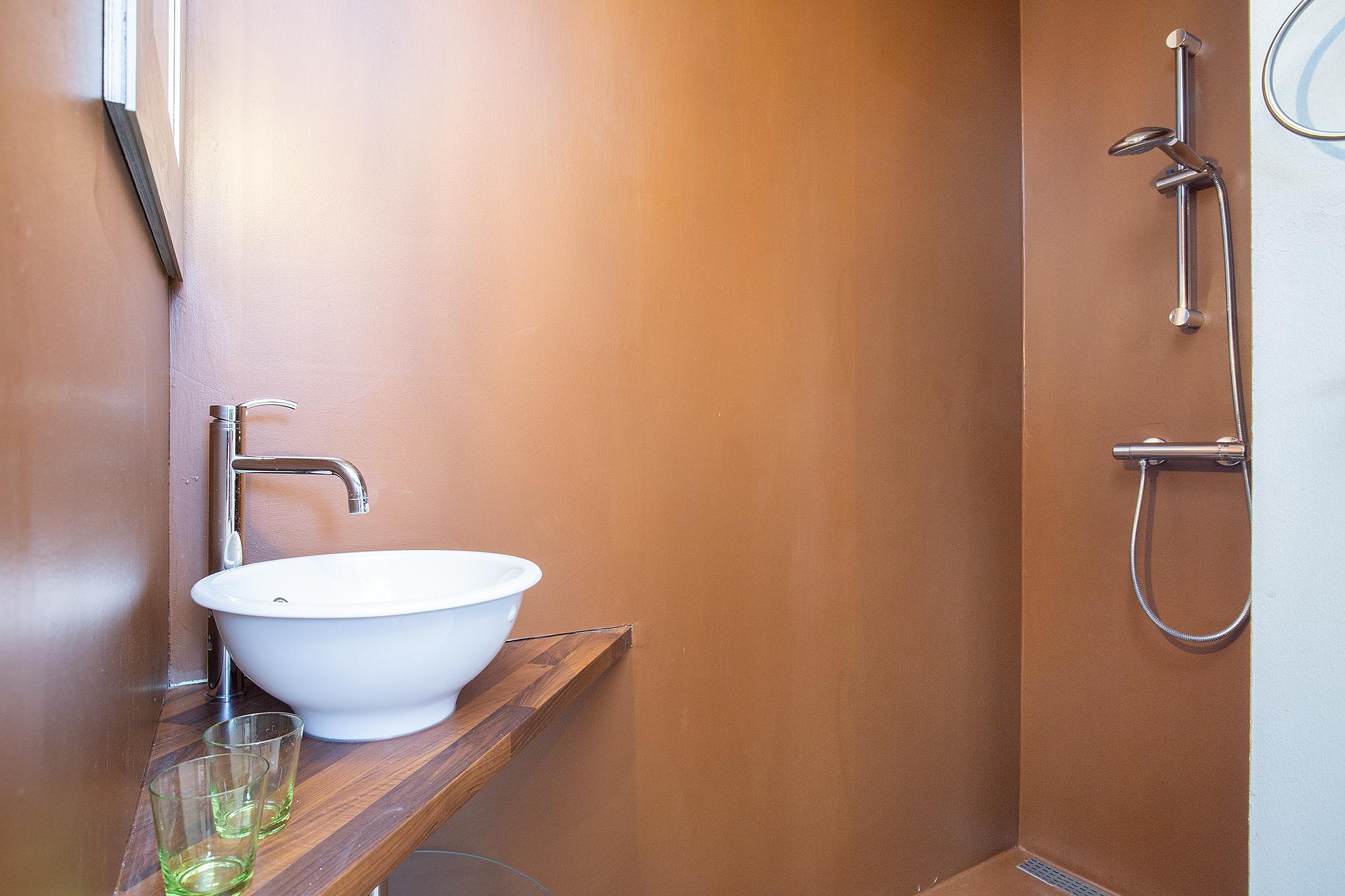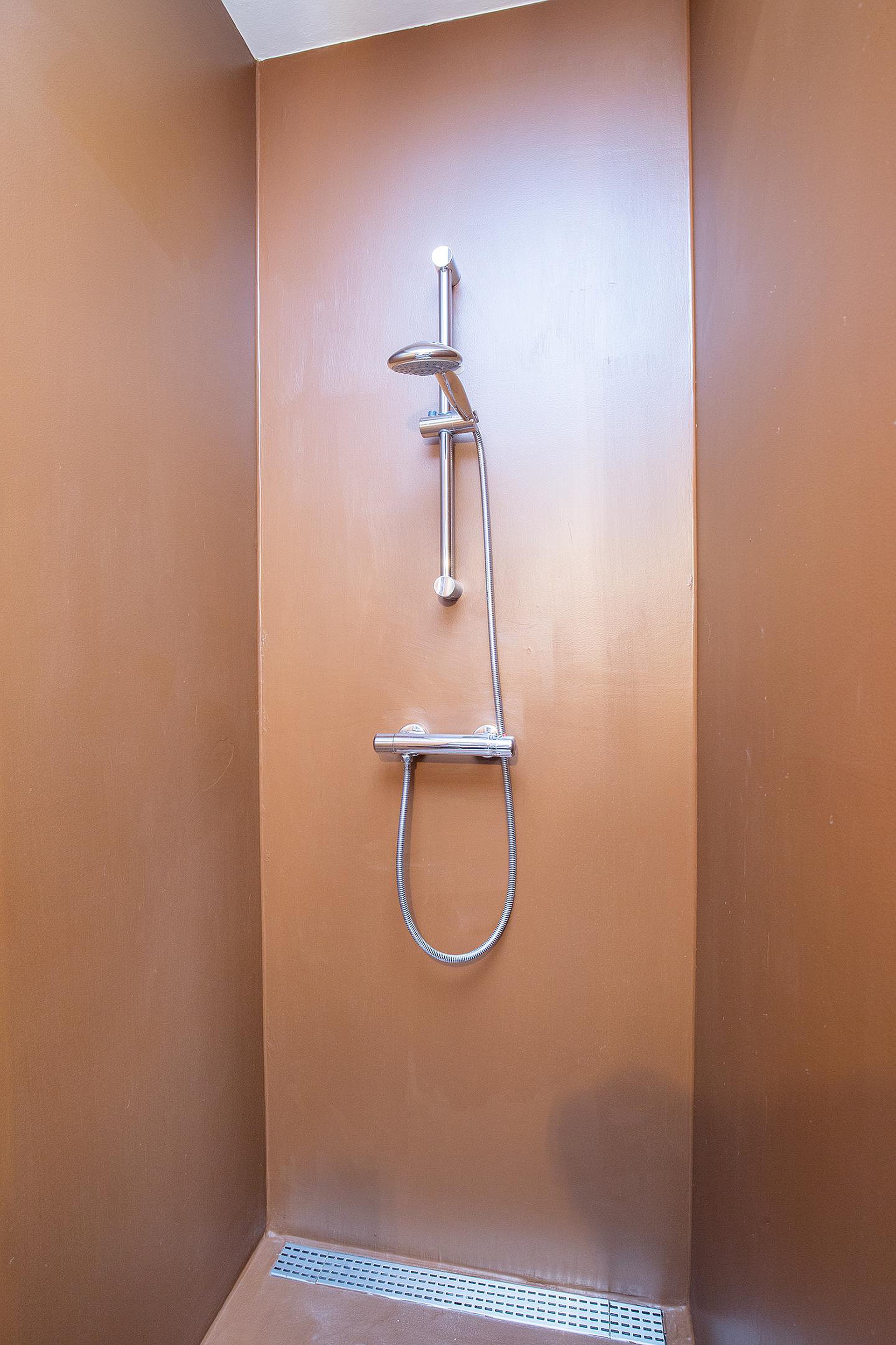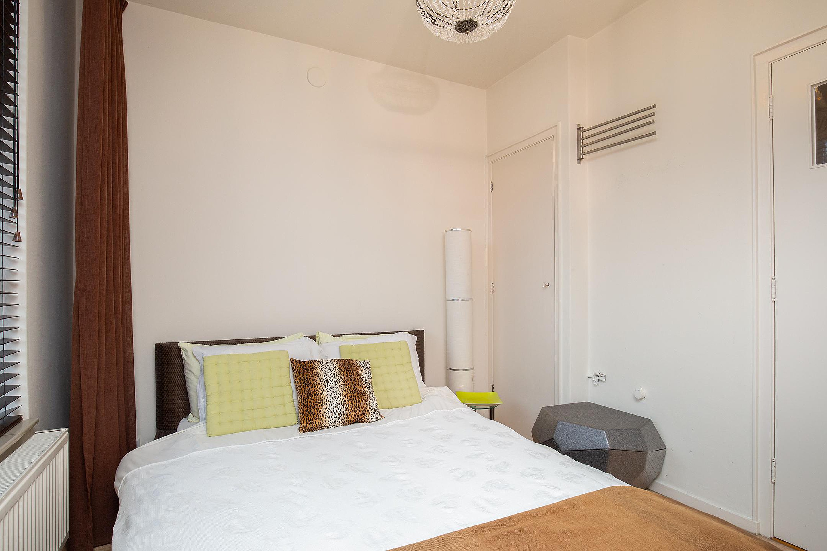 De slaapkamer ligt aan de rustige zijde van het appartement en beschikt over een handige inbouwkast en een ensuite badkamer met ruime inloopdouche en wastafel. Het gehele appartement is afgewerkt met een stijlvolle marmoleum vloer.