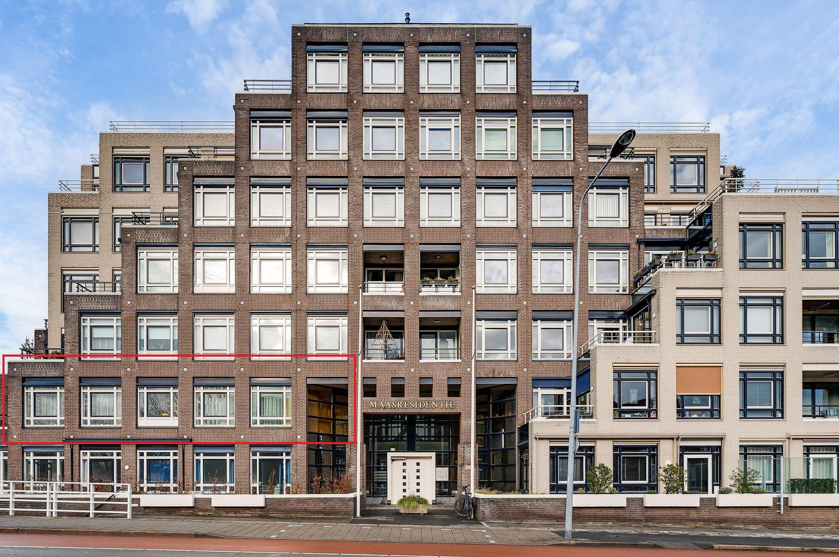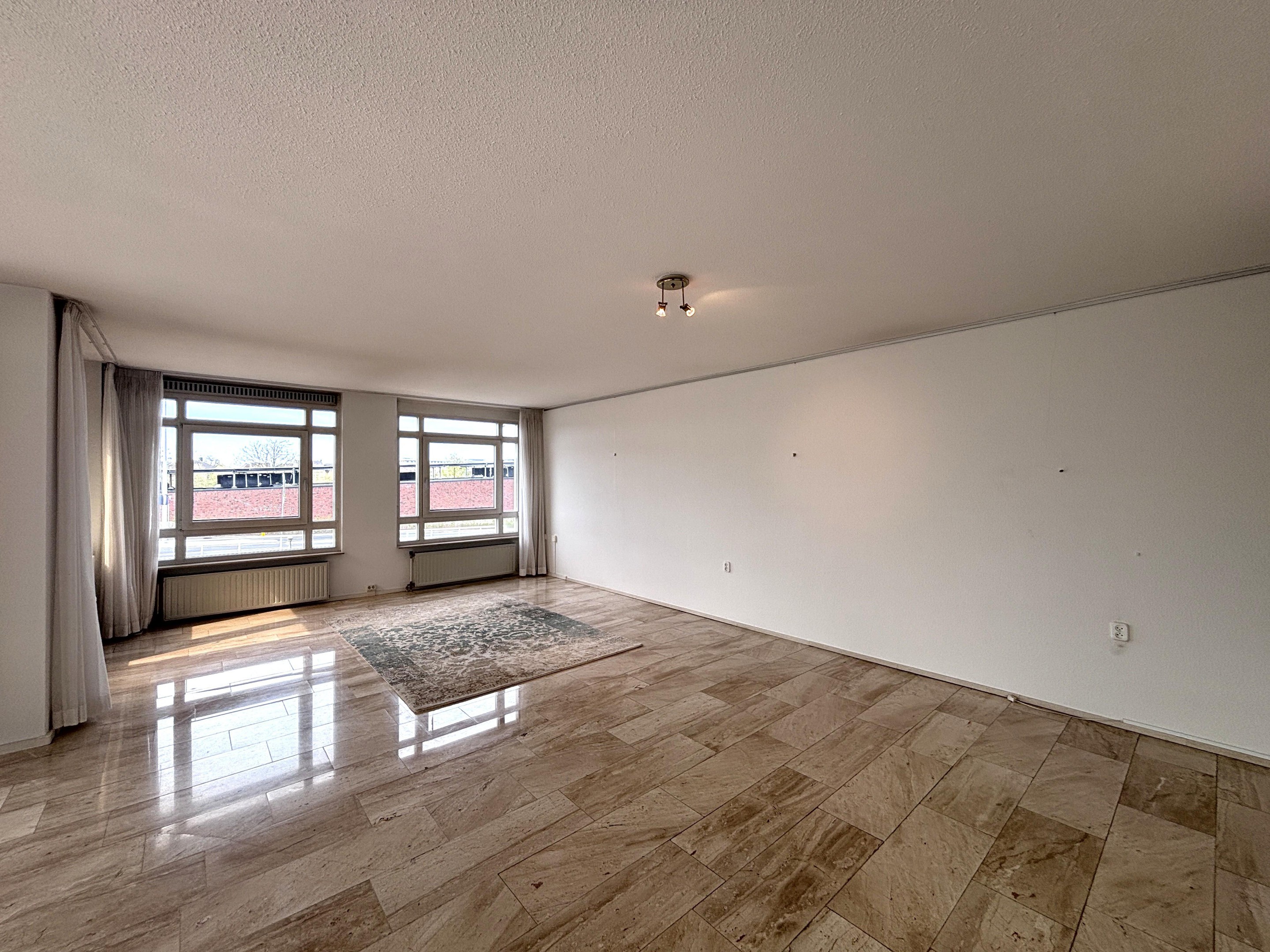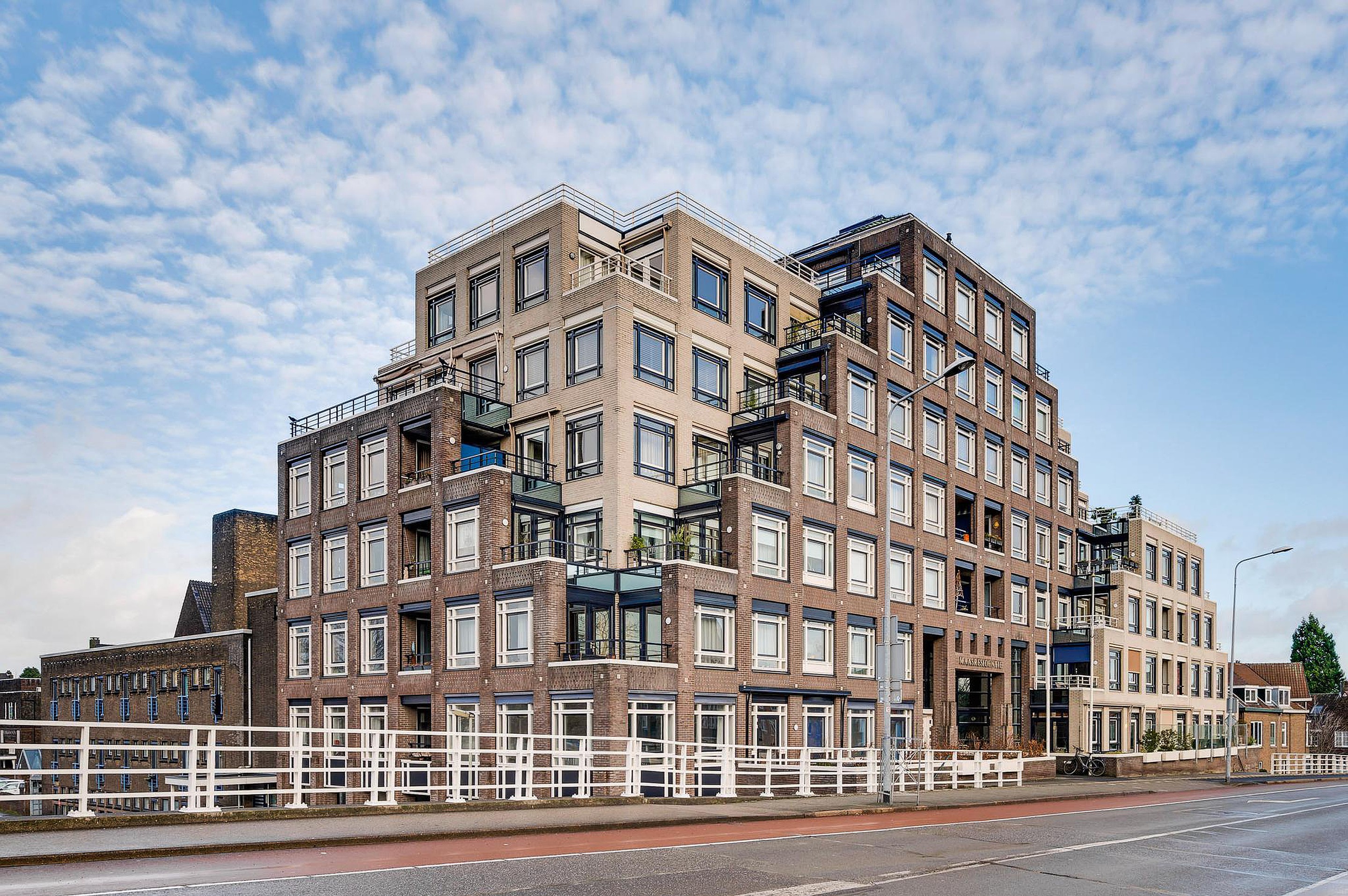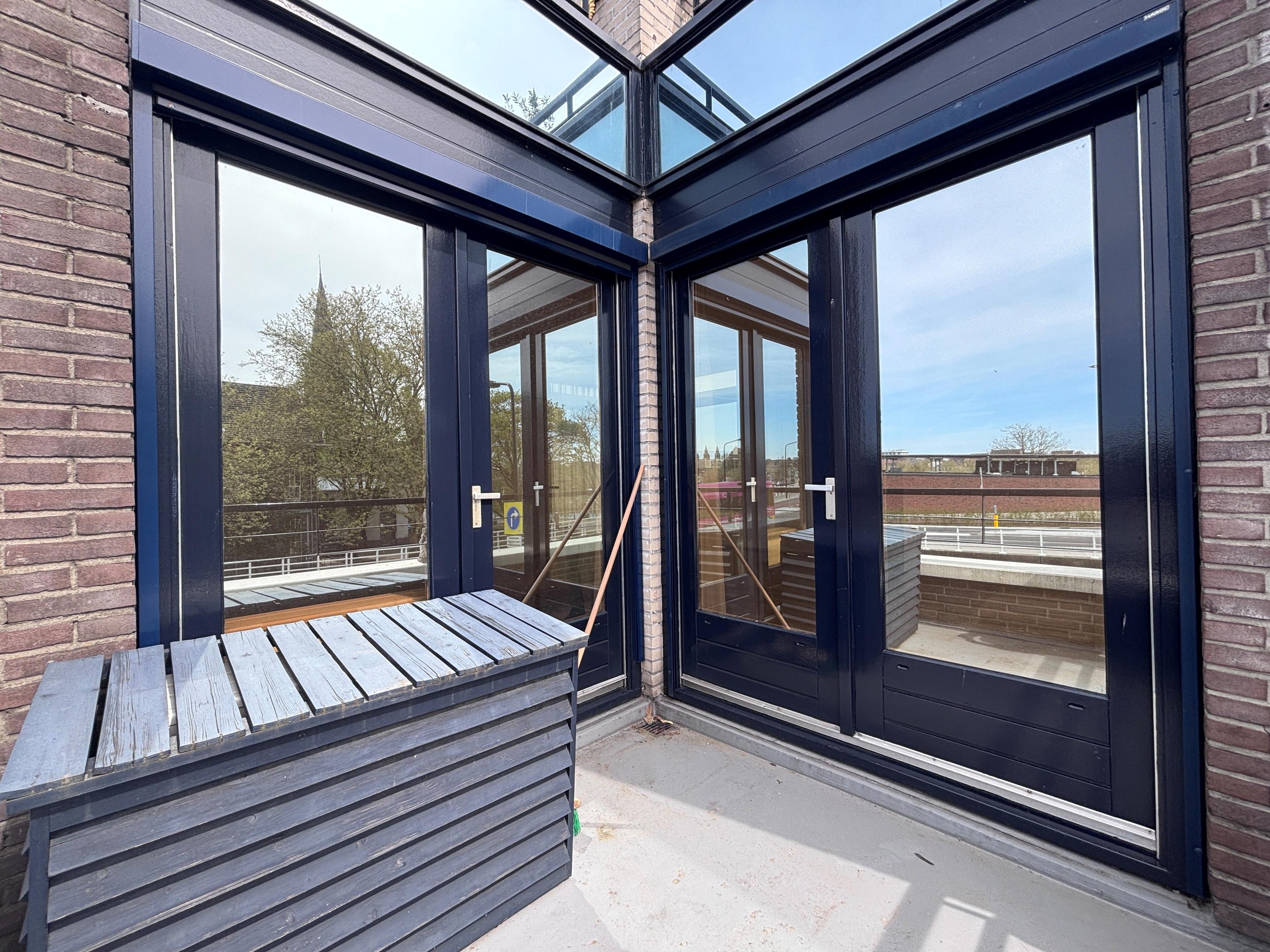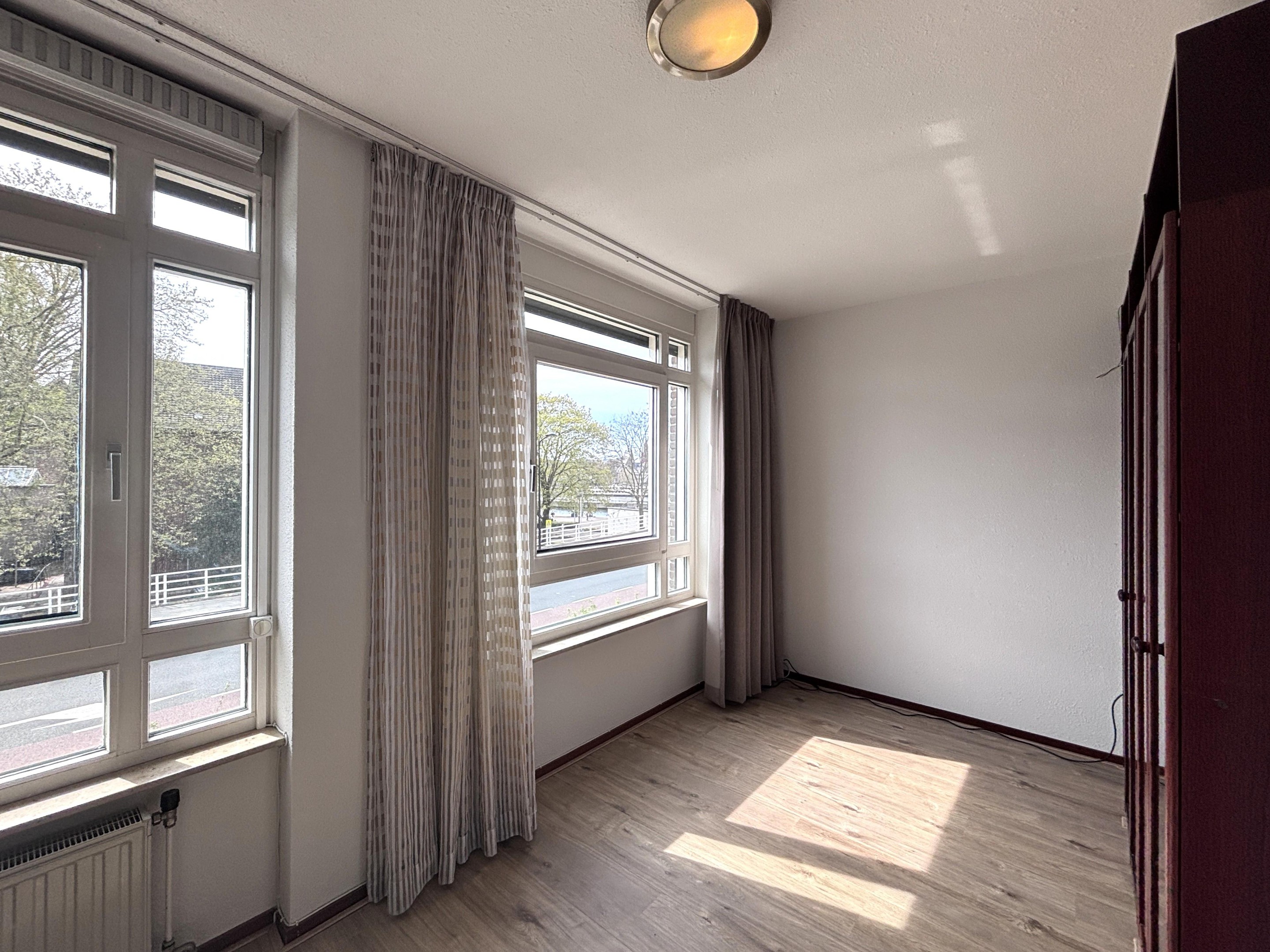 De woonkamer is royaal opgezet en valt direct op door de grote raampartijen. Deze zorgen niet alleen voor een prettige, open sfeer, maar ook voor een overvloed aan natuurlijk licht. Vanuit de woonkamer is er bovendien een fraai uitzicht over de Wilhelminabrug, wat bijdraagt aan de beleving van de ruimte. Daarnaast biedt de woonkamer directe toegang tot het balkon, waar men heerlijk buiten kan zitten en kan genieten van de omgeving. De open keuken sluit naadloos aan op de woonkamer en is modern ingericht. De keuken is voorzien van diverse inbouwapparatuur, waaronder een 4-pits inductiekookplaat, afzuigkap, spoelbak, vaatwasser, oven en koelkast. Aansluitend aan de keuken bevindt zich een aparte wasruimte. Hier is een aansluiting voor de wasmachine aanwezig en is er voldoende ruimte voor extra opslag.