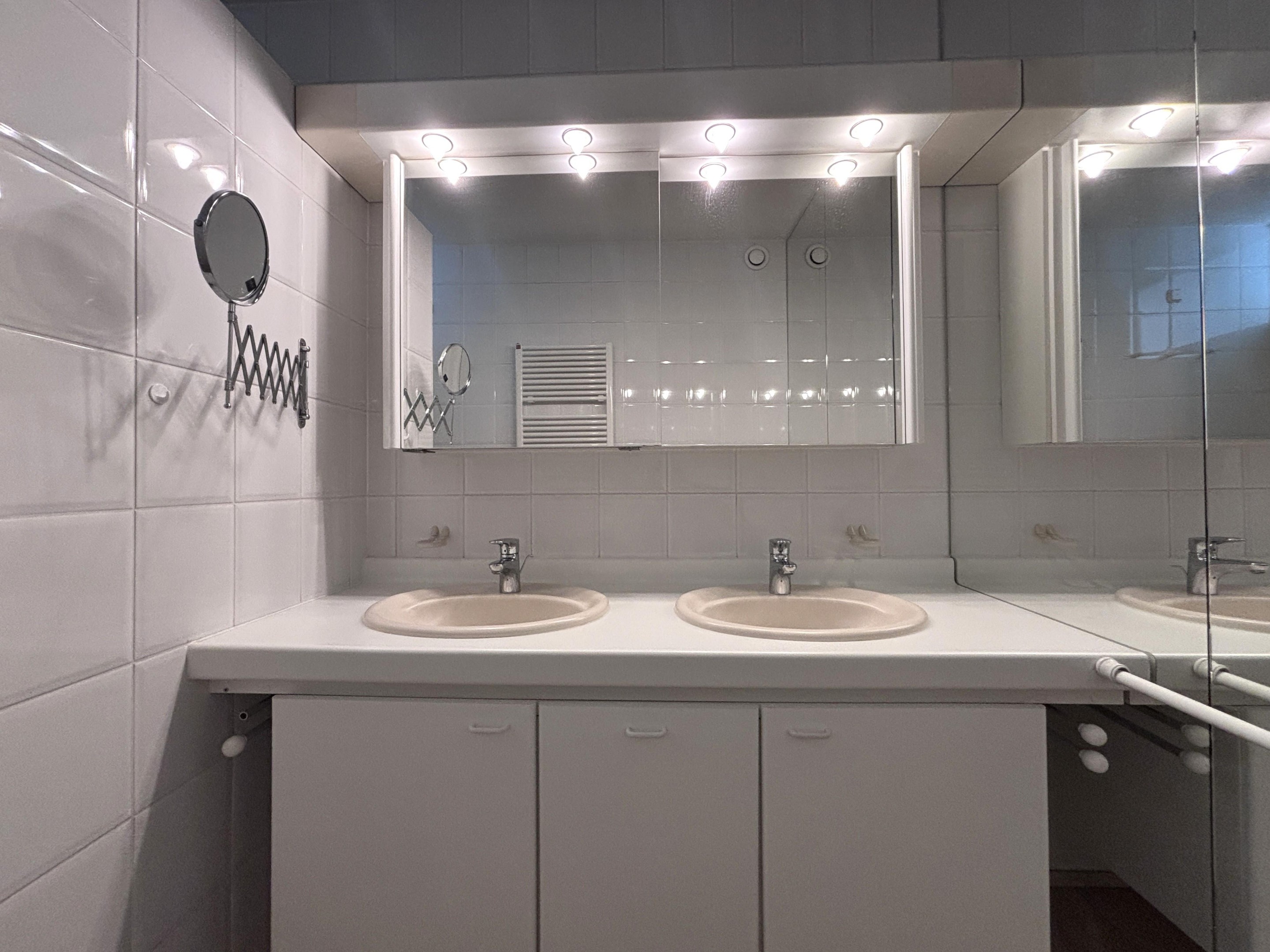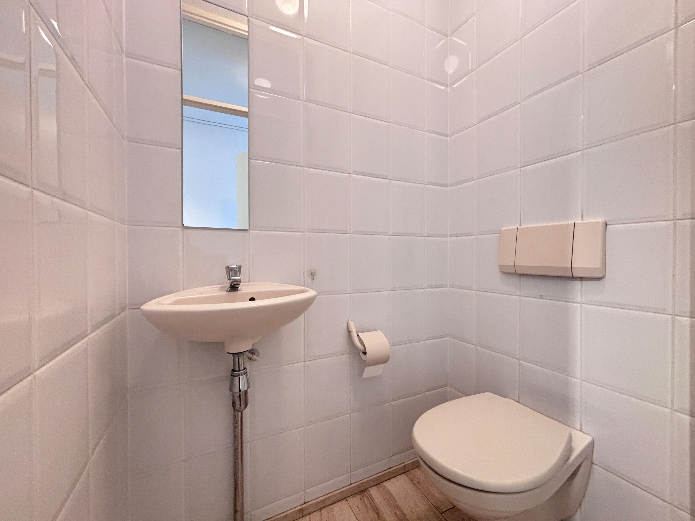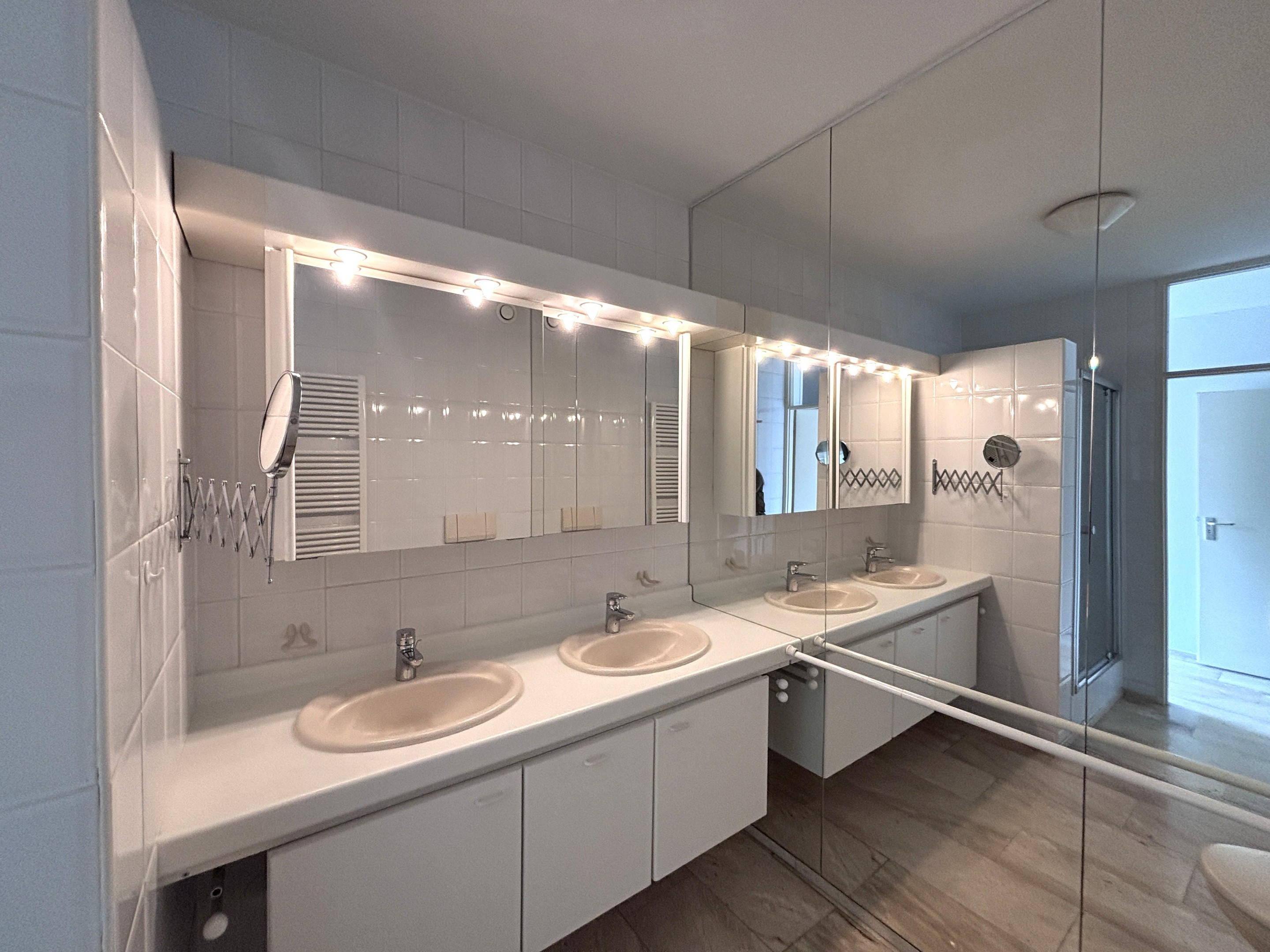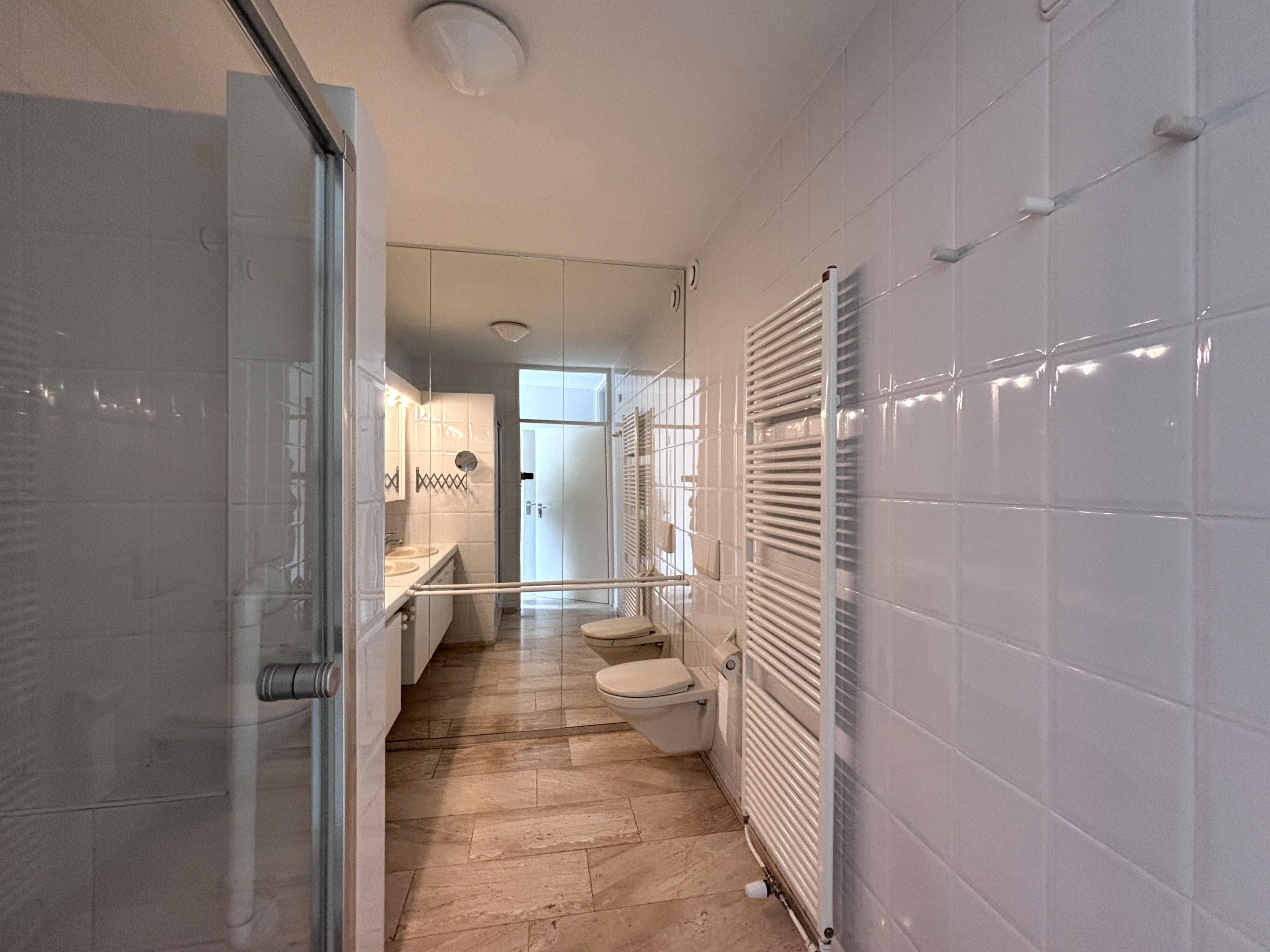 De badkamer is compleet uitgevoerd en beschikt over een douche, een dubbele wastafel en een toilet. De ruimte is functioneel ingericht en biedt voldoende comfort voor dagelijks gebruik. De slaapkamer is ruim en biedt voldoende opbergruimte door middel van grote kasten. Dankzij de grote raampartijen komt ook hier veel natuurlijk licht naar binnen, wat zorgt voor een aangename en rustige sfeer.