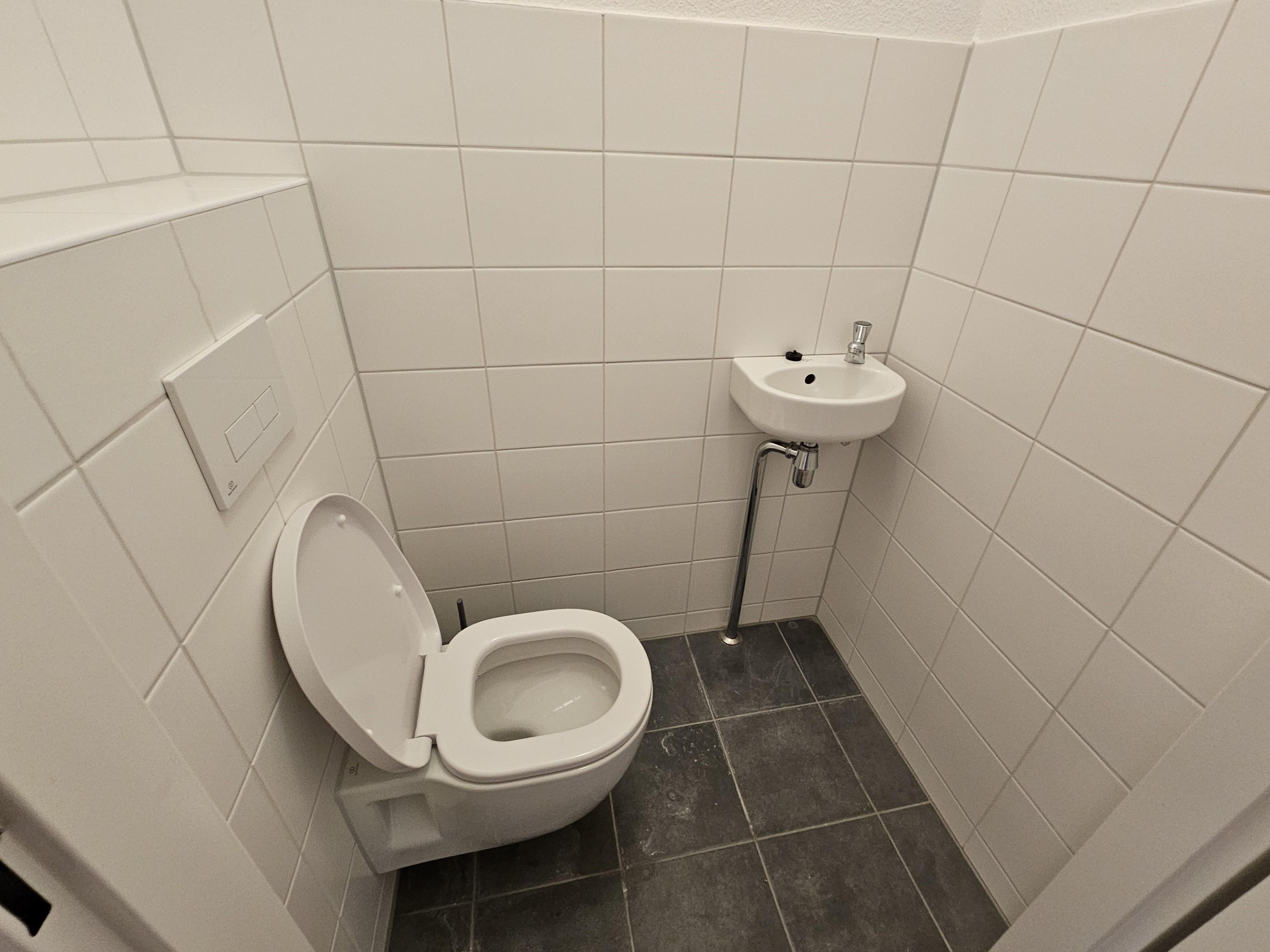 From the entrance you enter the hall which provides access to all rooms. The first is the separate toilet and technical room with washing machine and dryer connections.
