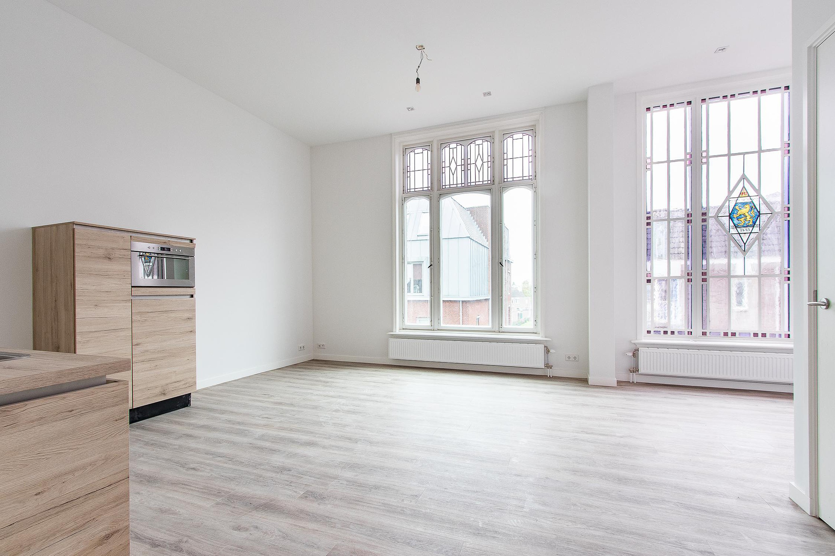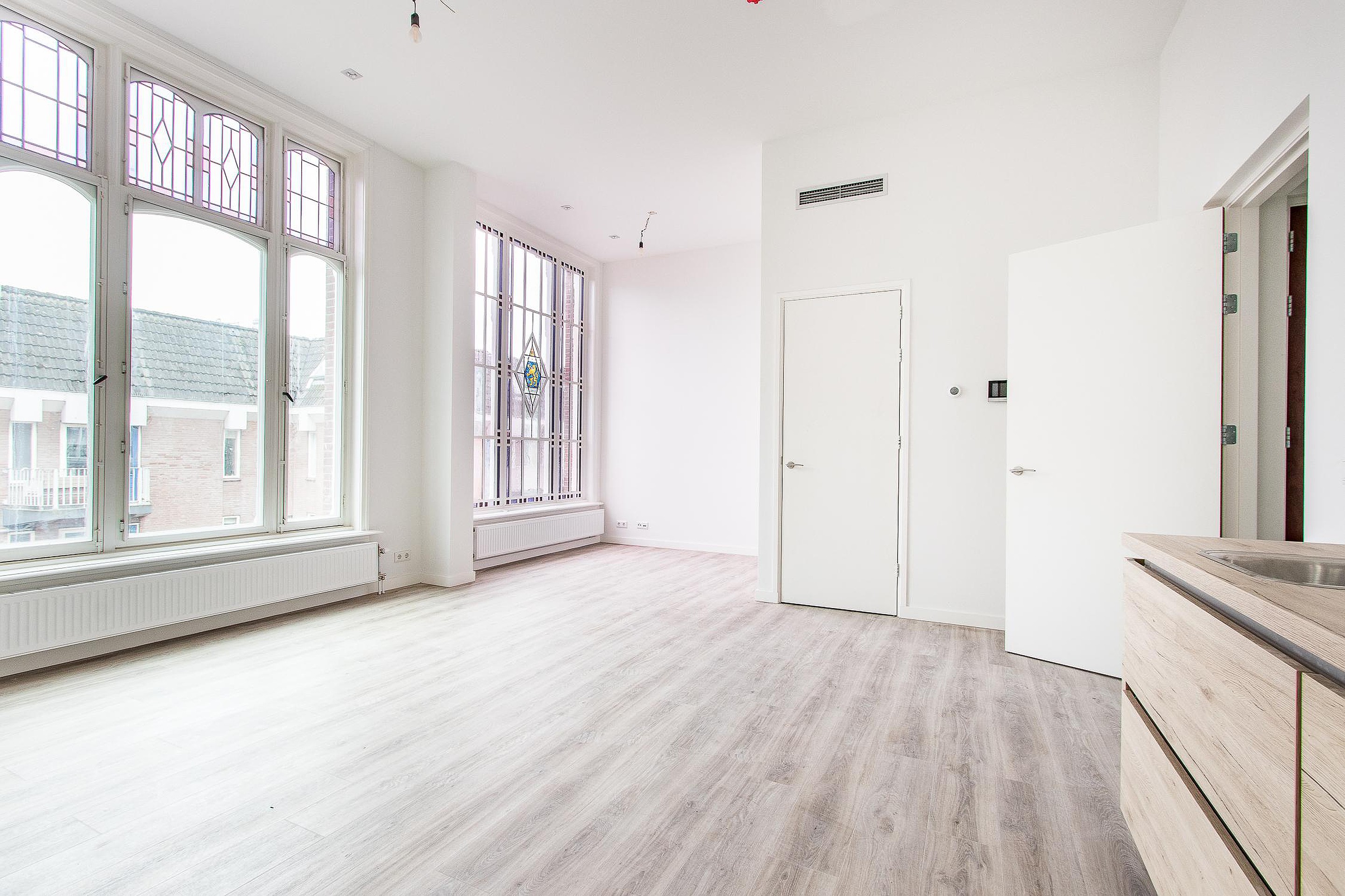 Appartement nummer 4 is gelegen op de eerste verdieping en heeft een woonkamer van 32,5m2 een open keuken voorzien van apparatuur.