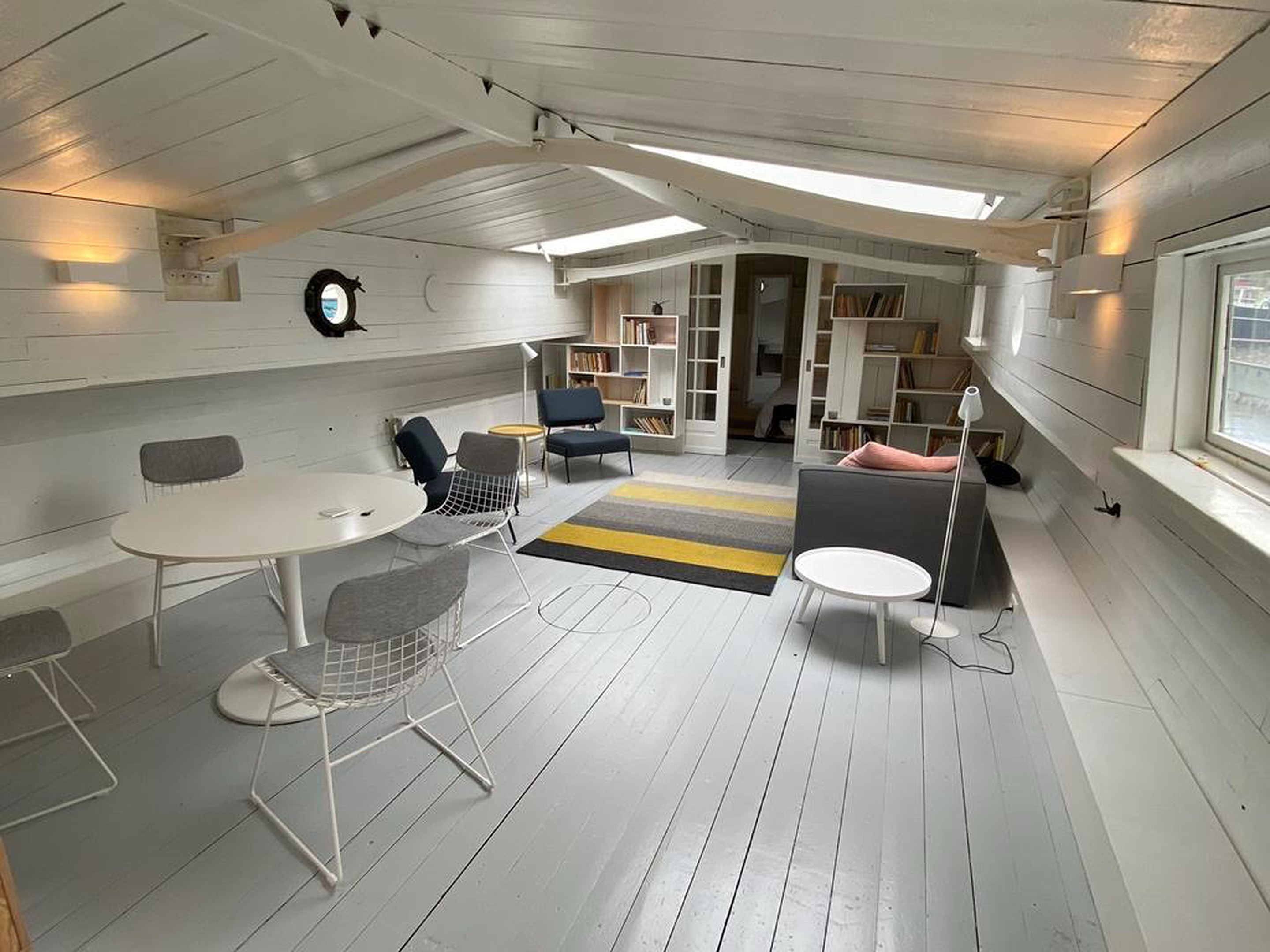 The houseboat is located in a prime waterside district in Amsterdam, built on former docklands just west of Central Station. It successfully blends its industrial past with modern living, featuring contemporary, architecturally striking apartment buildings and a harbor area dotted with houseboats. This central yet tranquil location offers residents and visitors panoramic views over the IJ-river. It's an area prized for its excellent accessibility and its proximity to both the historic charm of the Jordaan and the cultural vibrancy of the Westerpark district, making it a highly desirable and dynamic place to live.