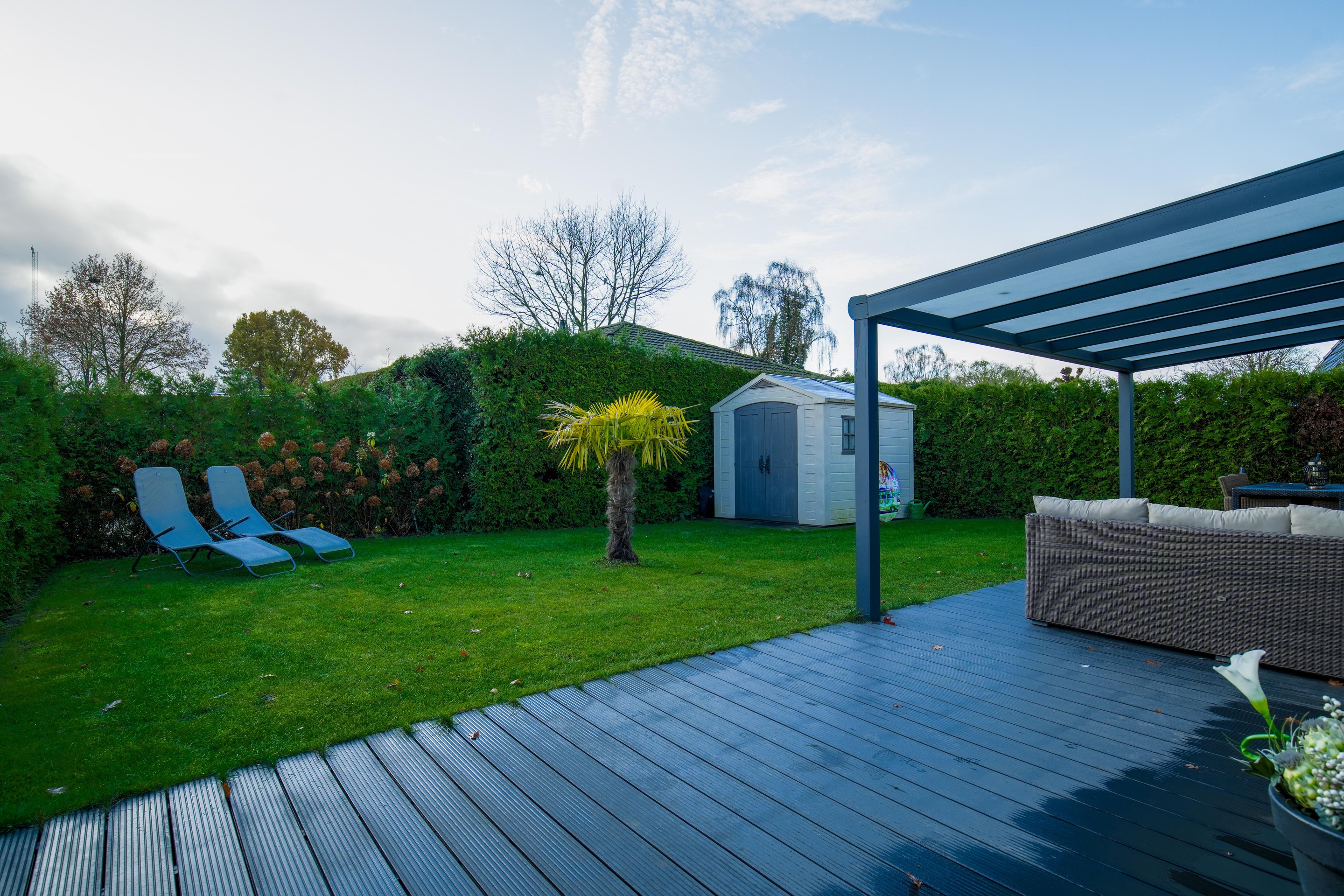 De tuin is ruim en zonnig en makkelijk te onderhouden. Voor de woning bevindt zich een ruim overkapt terras met zithoek.