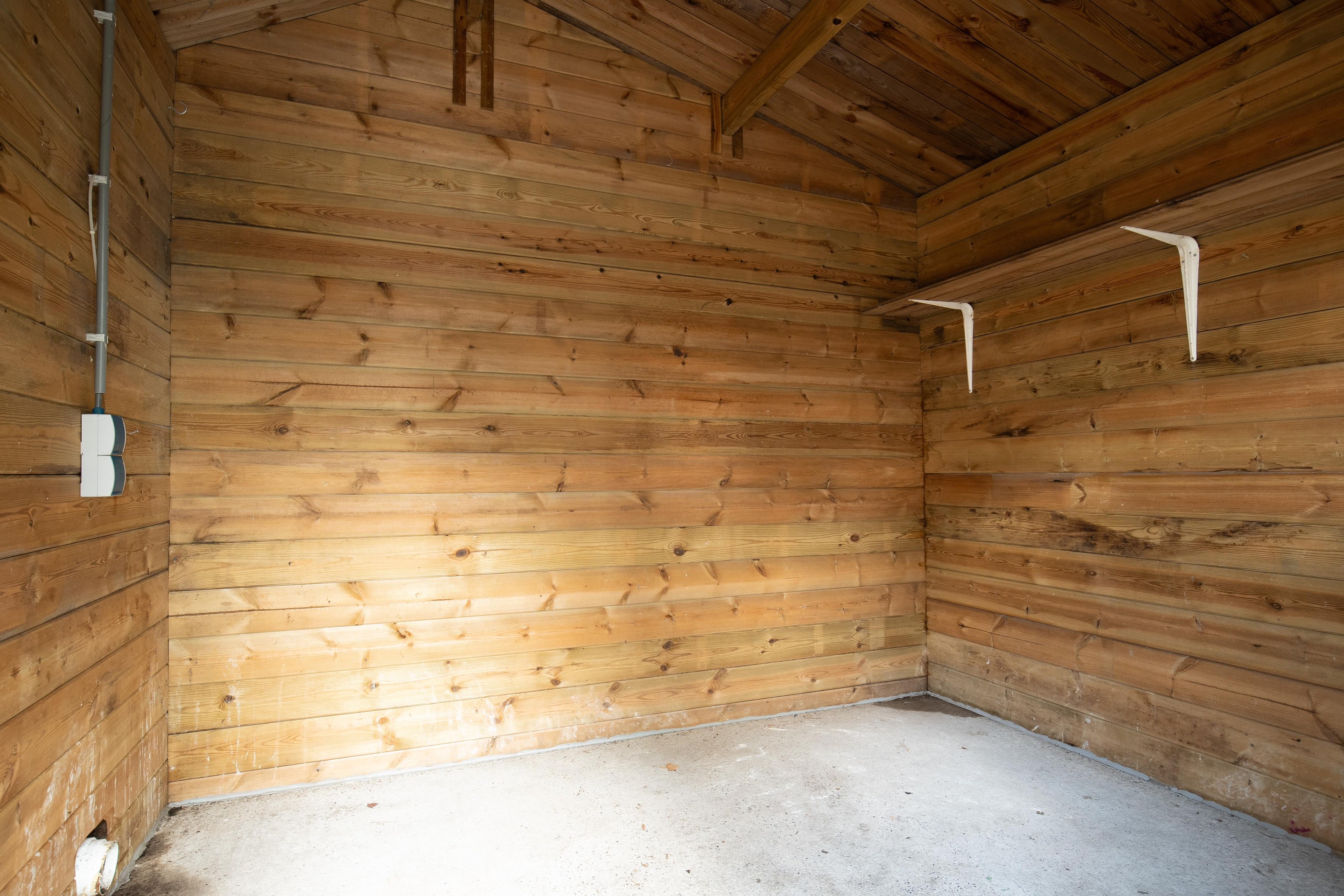 In de naastgelegen schuur bevindt zich de aansluiting voor wasmachine en kunt u ook nog fietsen stallen.