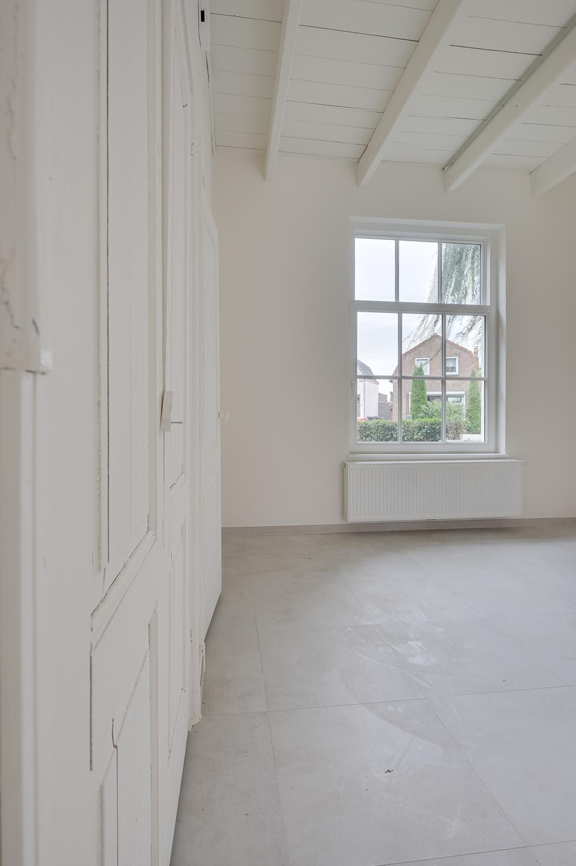 De eerste verdieping is ingericht als een ruime slaapkamer met dakramen. Dankzij de slimme renovatie is dit een comfortabele en lichte ruimte, waar voldoende plek is voor een tweepersoonsbed en kastruimte.