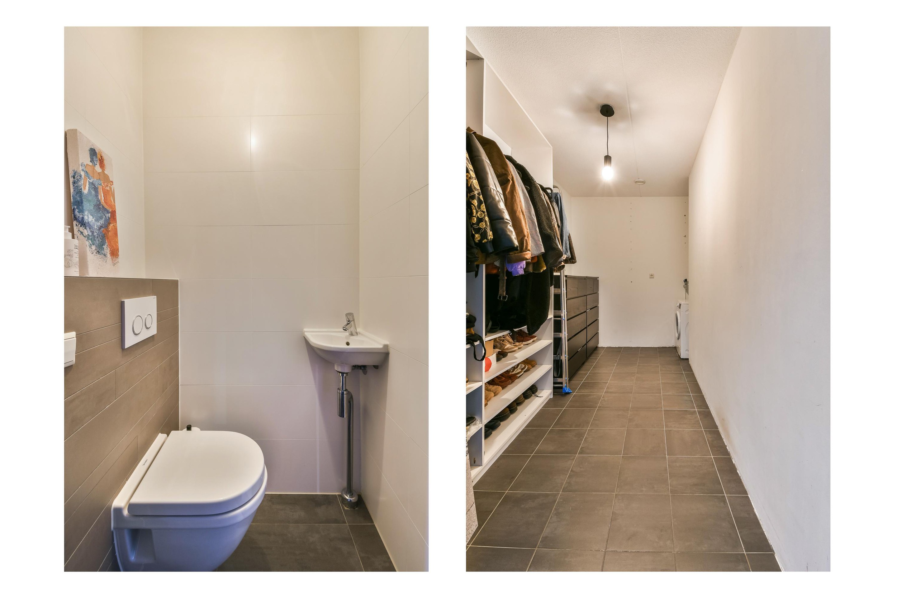 The bright and spacious living room is located on this level and features large windows on both the front and rear sides. From here, you have direct access to the generous roof terrace, which spans the full width of the house and serves as an extension of the living space.