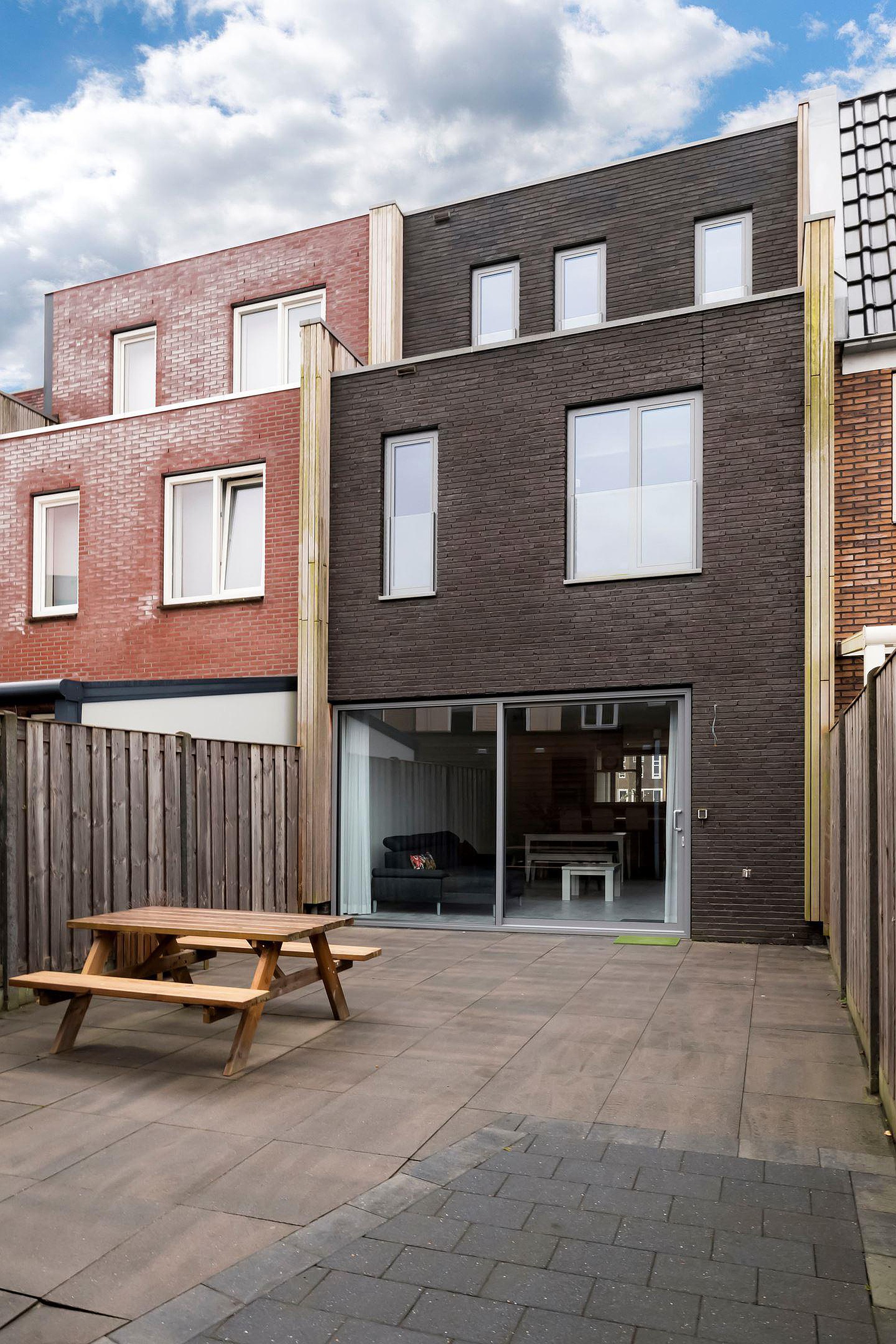 Ruime achtertuin gelegen op westen (ca. 45 m2, met schuur en achterom)